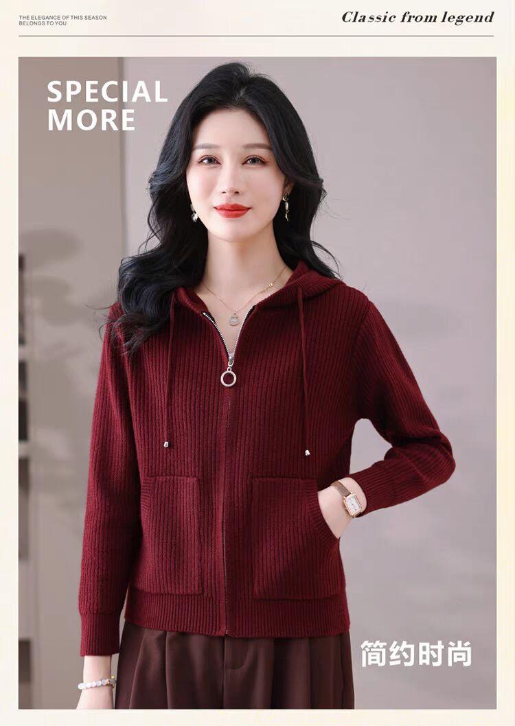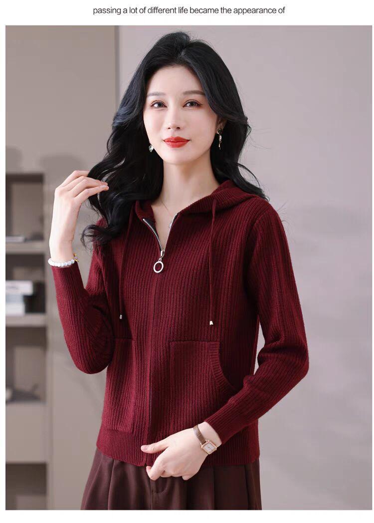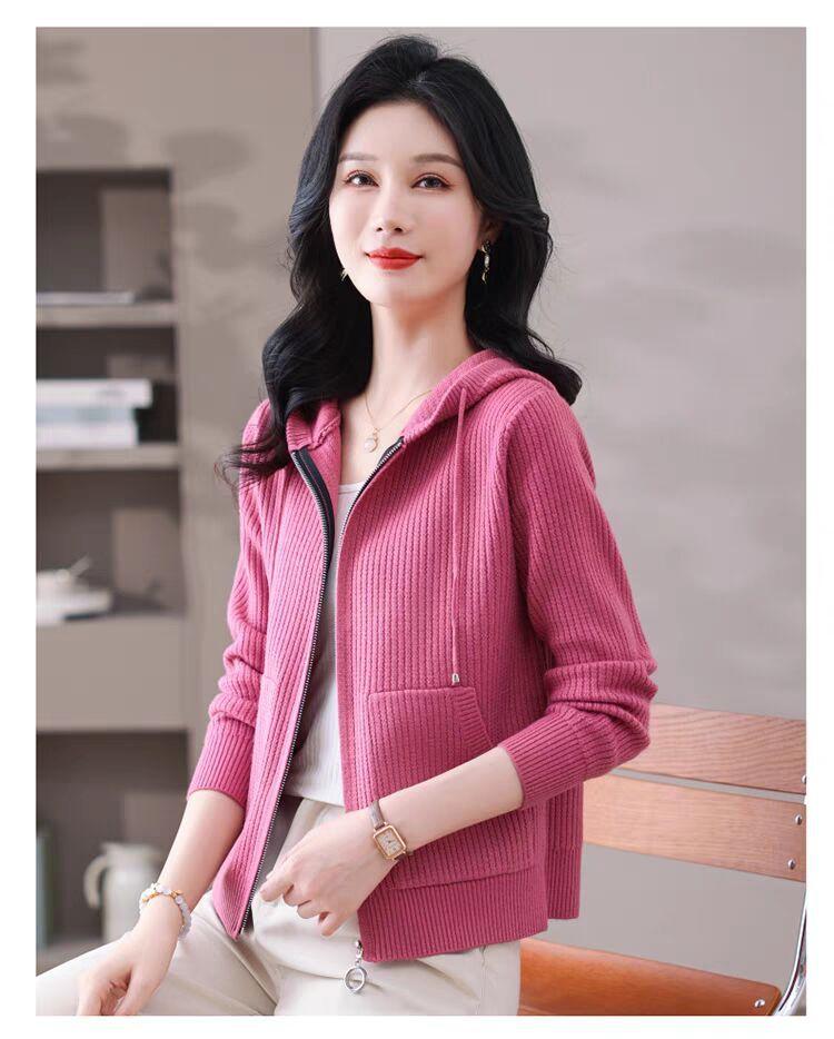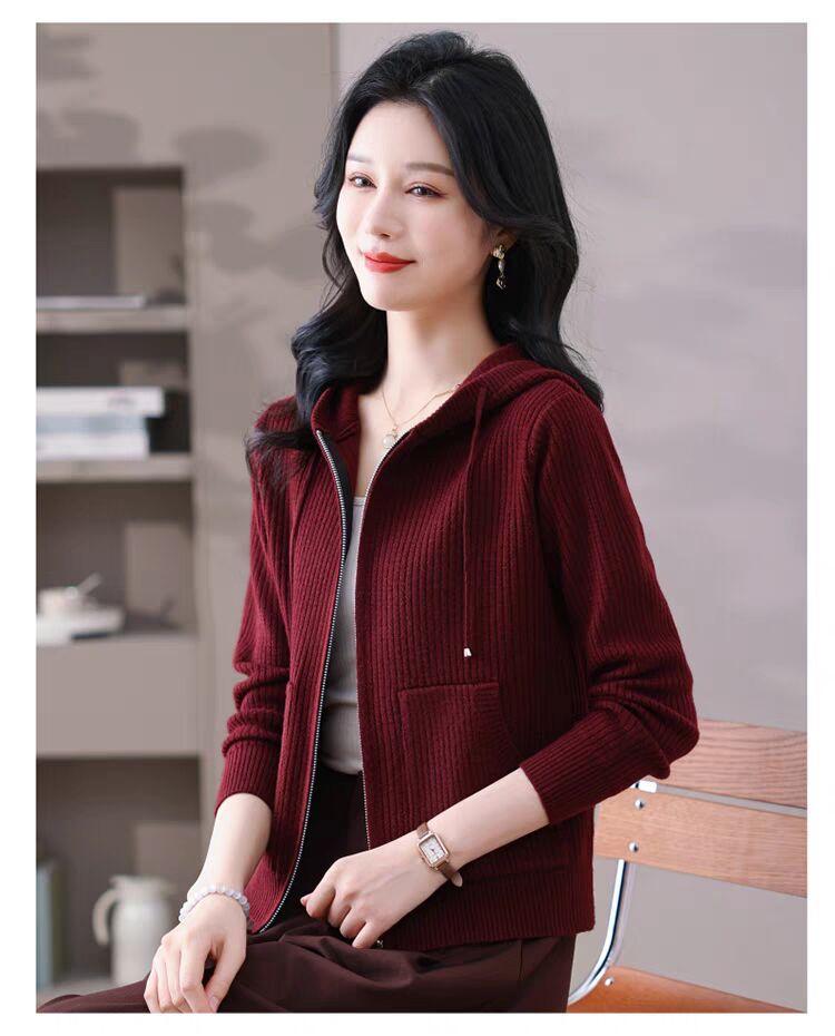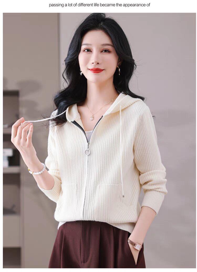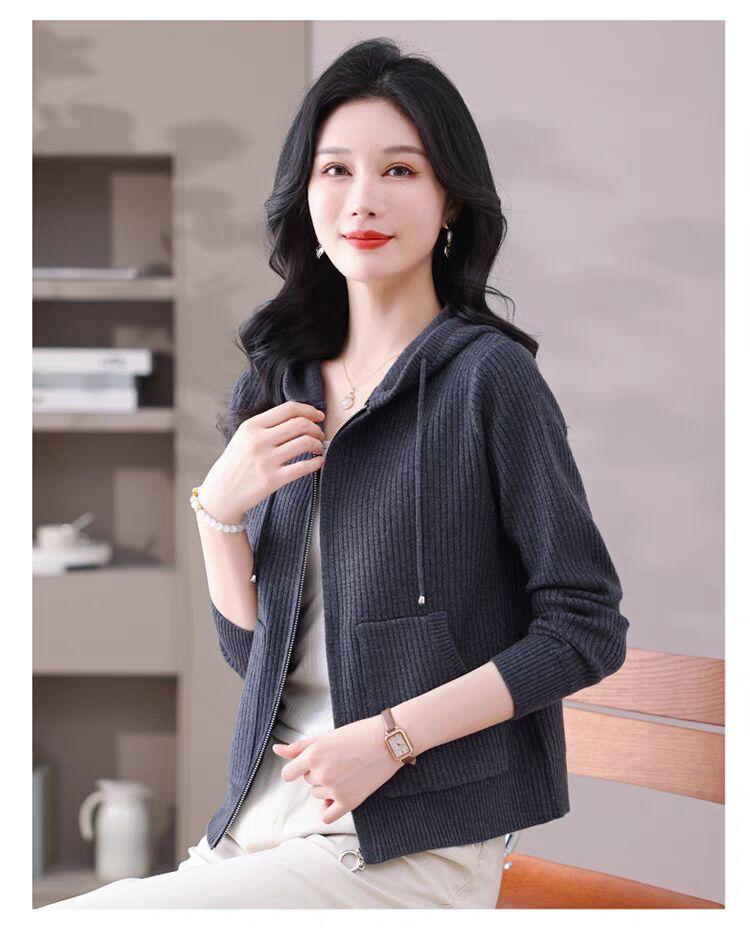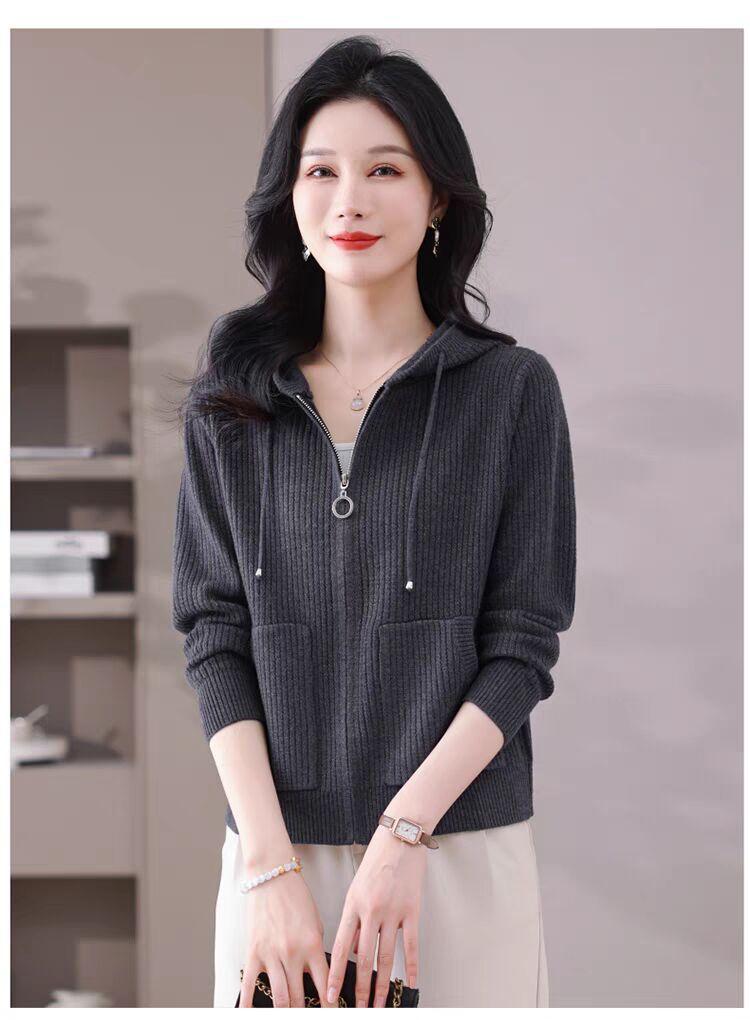 Abrigo Suéter con Capucha para Mujer Primavera Nuevo Top Holgado Cárdigan Tejido Exterior Primavera y Otoño