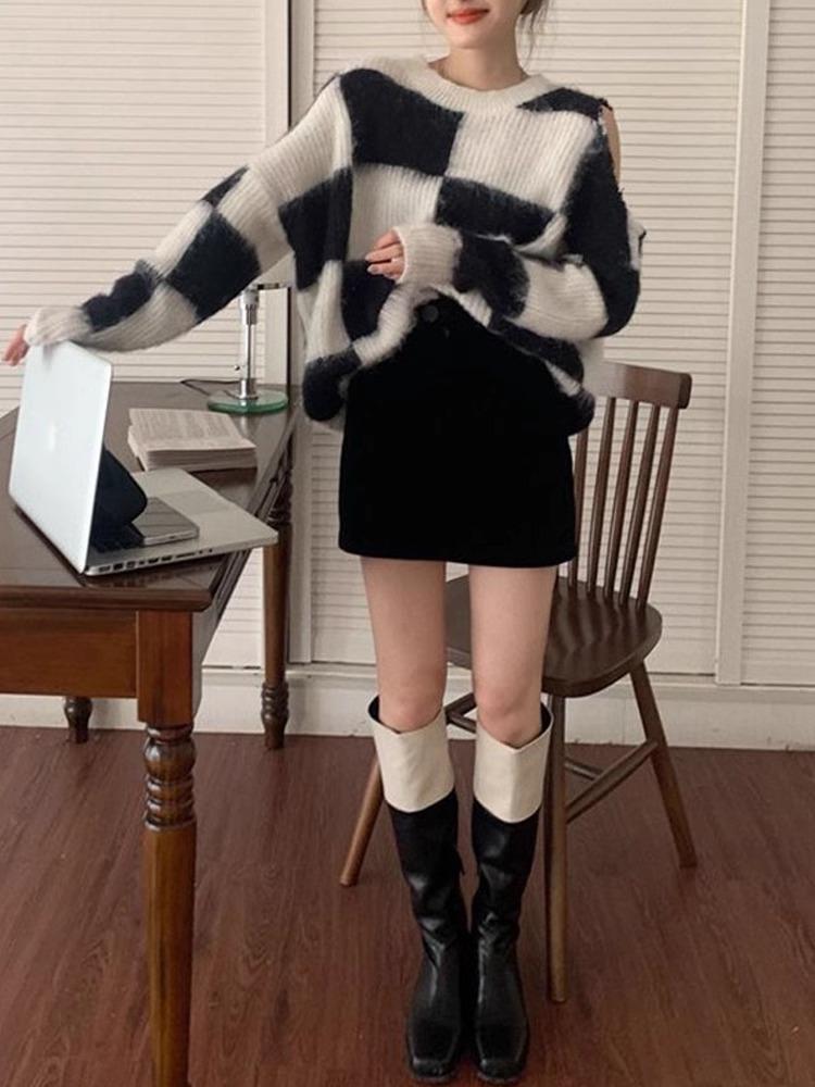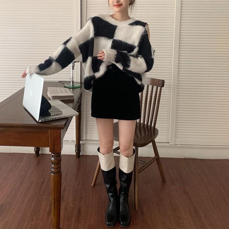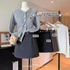 Falda de Lana Retro Estilo Universitario de Cintura Alta para Mujer Otoño Gris Falda A-Line Anti-Exposición de Cintura Alta Falda Cubre Caderas Falda Corta
