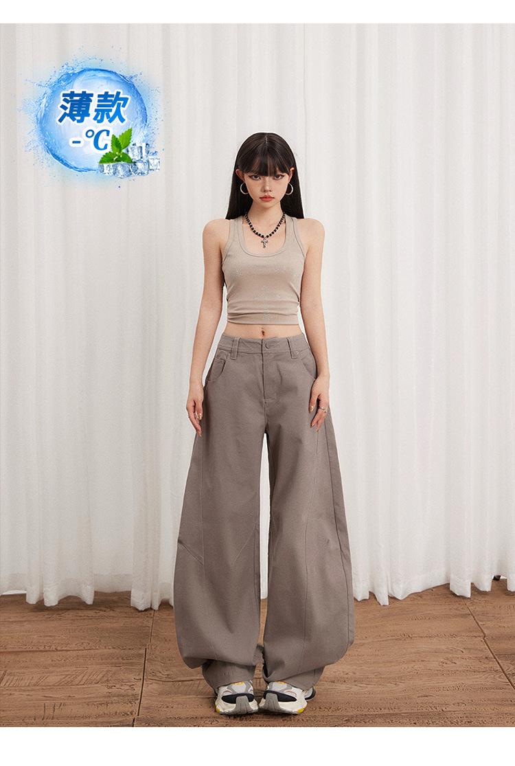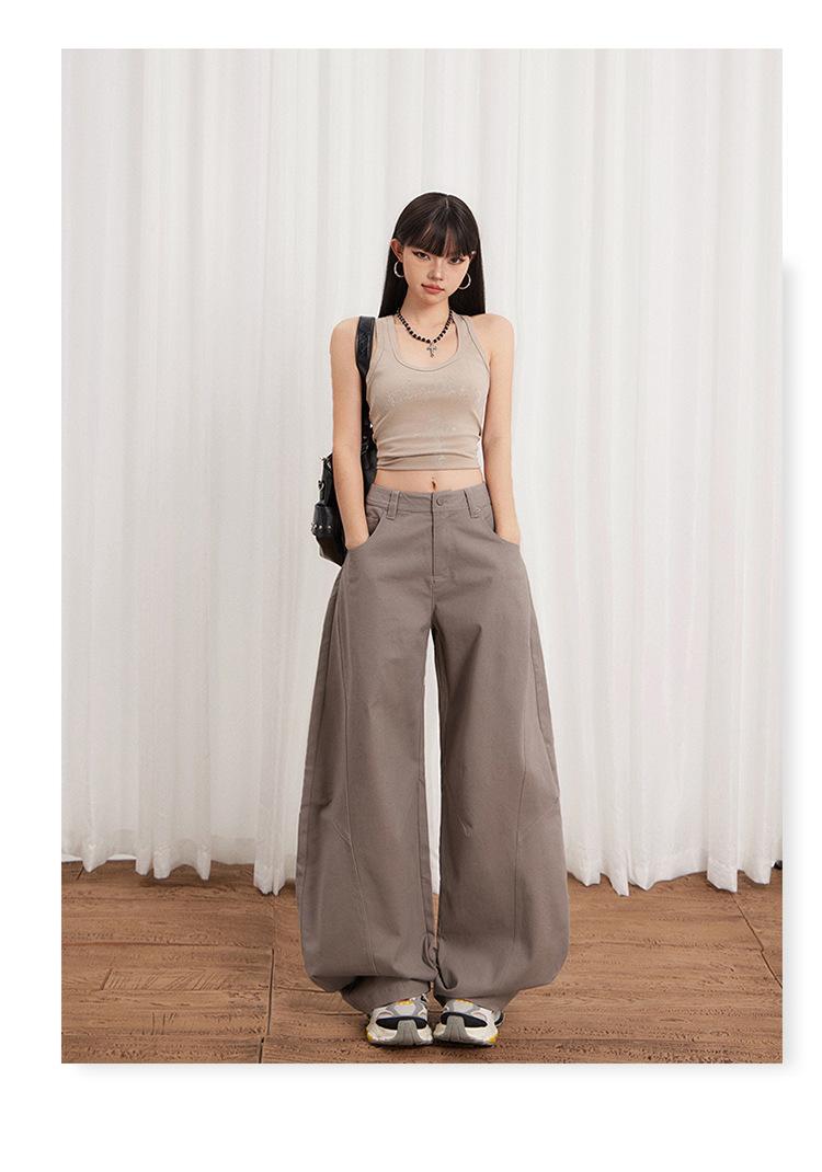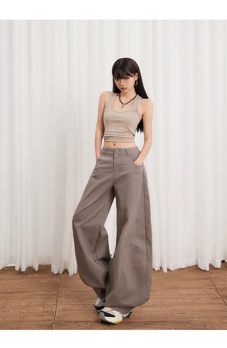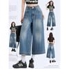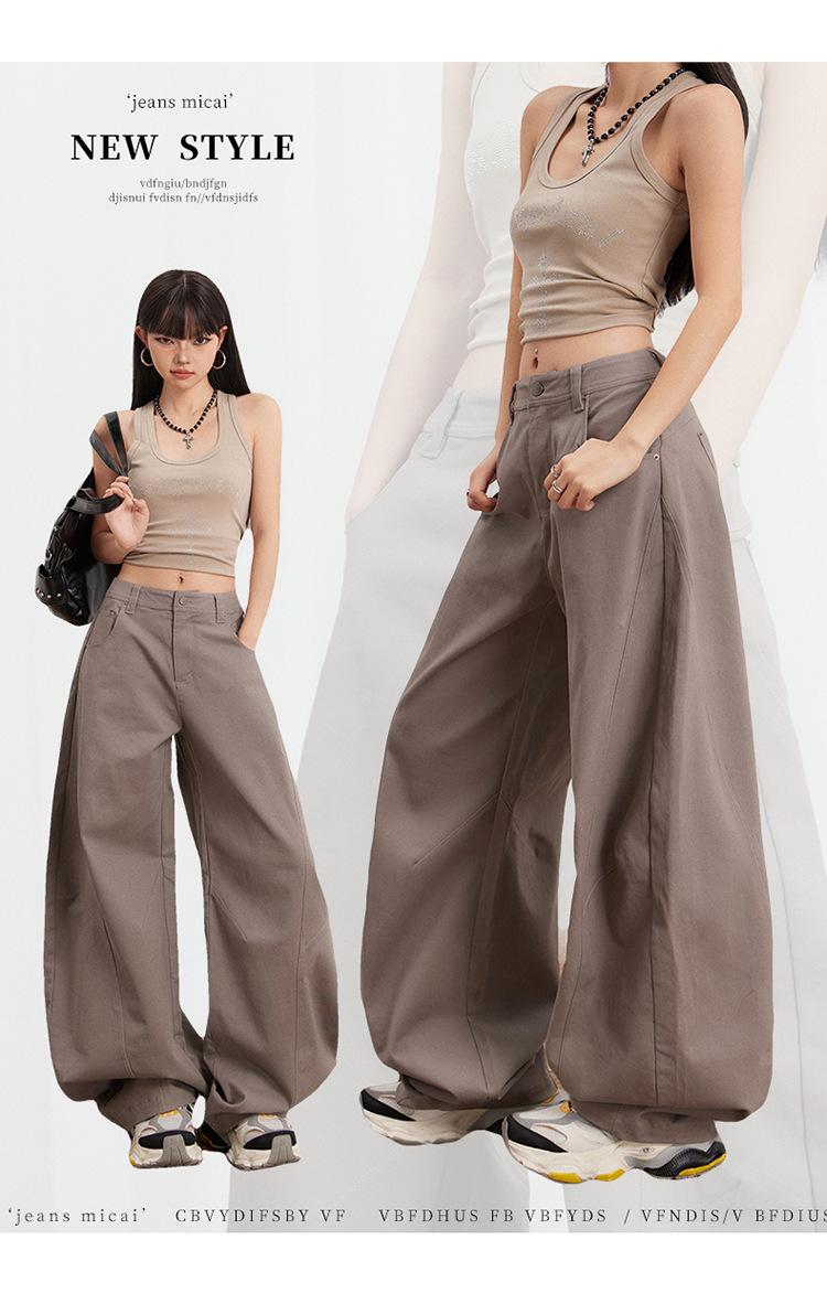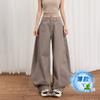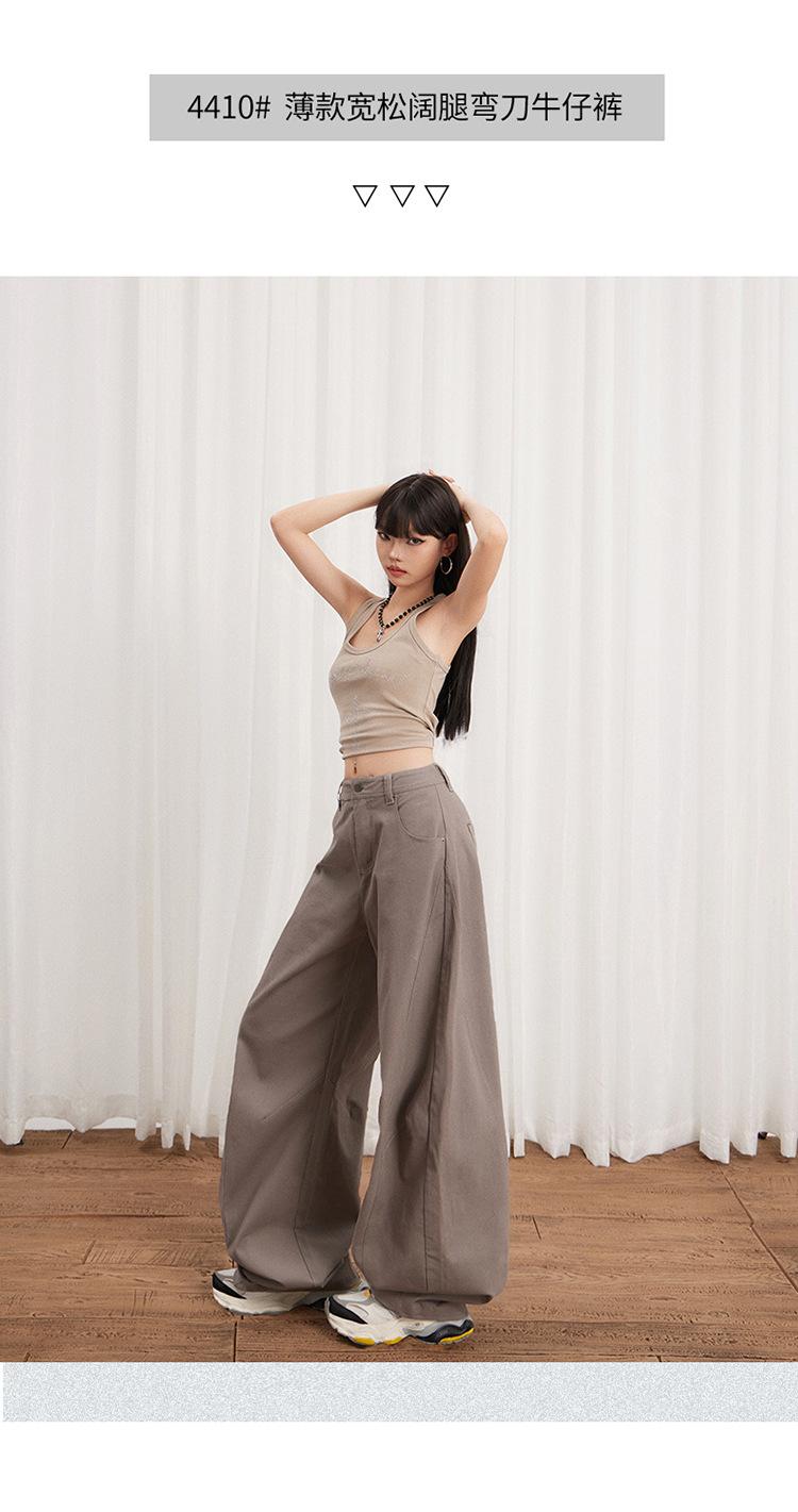 Yc & Pantalones Holgados de Pierna Ancha de Cintura Alta Retro Americano Pantalones Banana Delgados Grises Versátiles Jeans para Mujer y Pantalones Largos