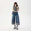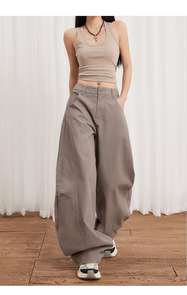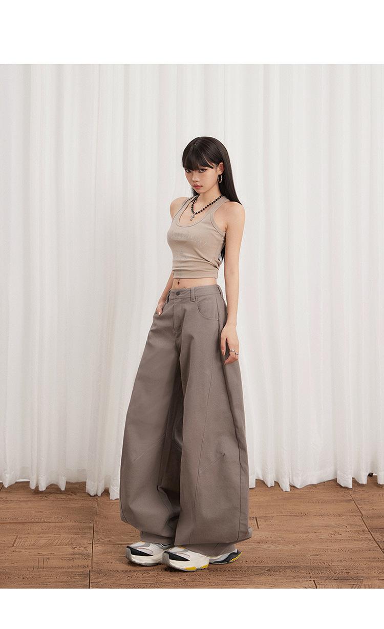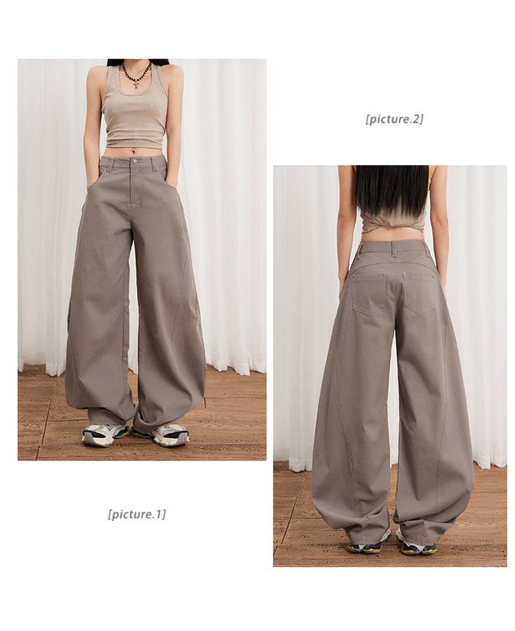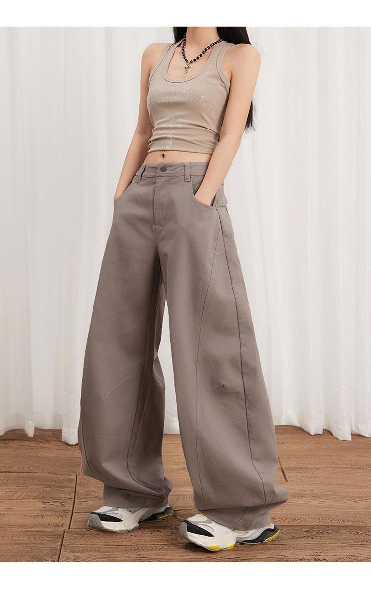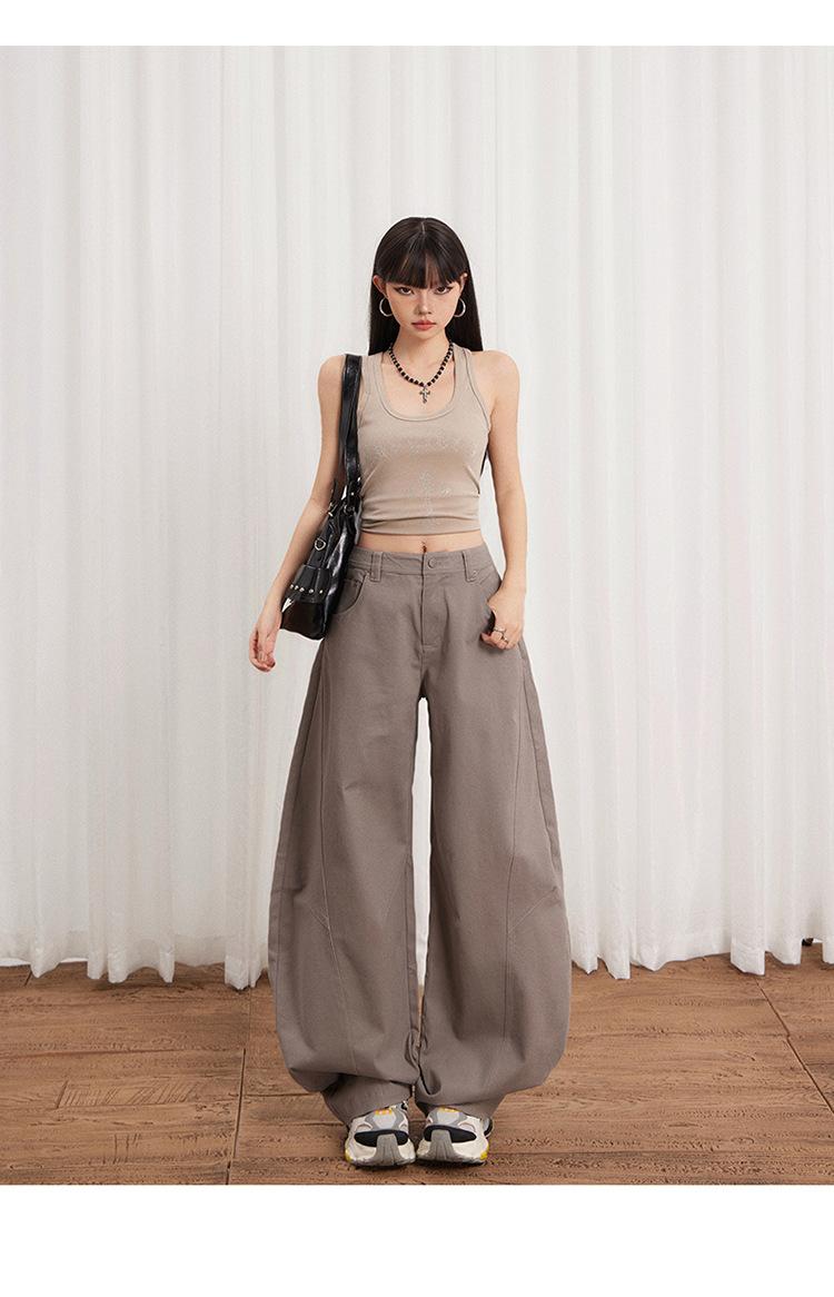 Yc & Pantalones Holgados de Pierna Ancha de Cintura Alta Retro Americano Pantalones Banana Delgados Grises Versátiles Jeans para Mujer y Pantalones Largos