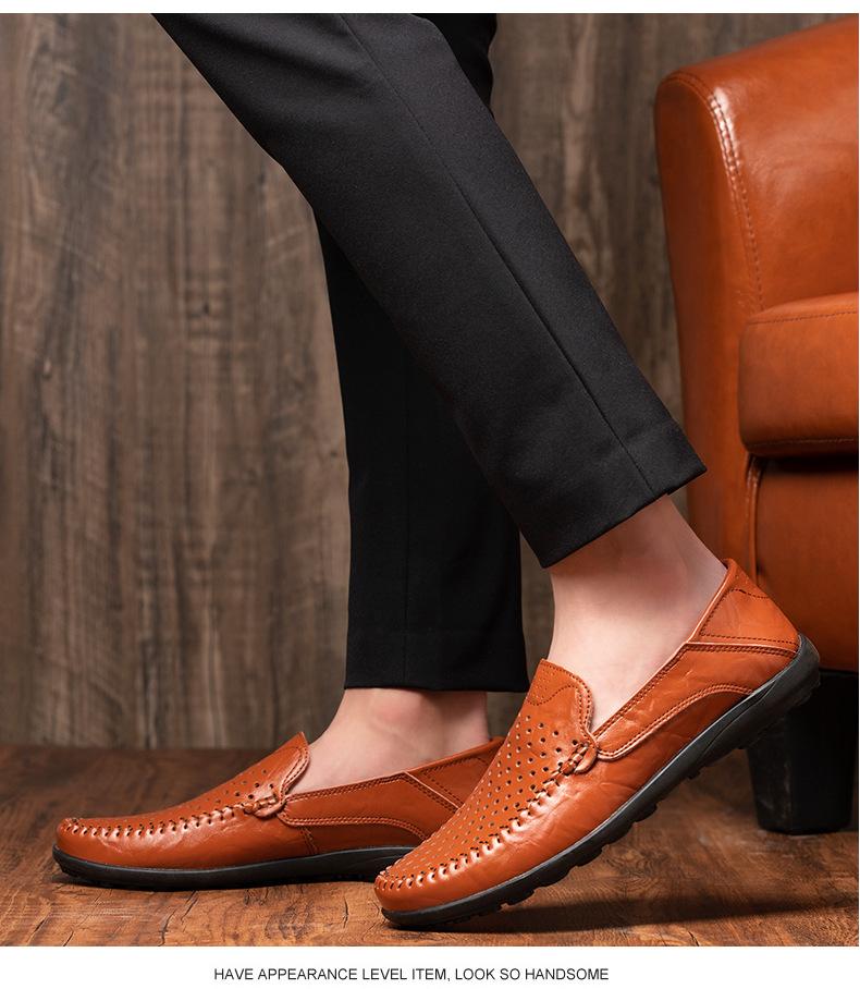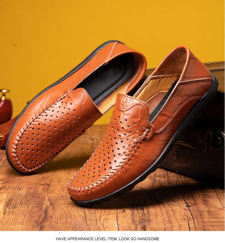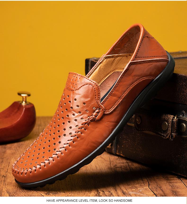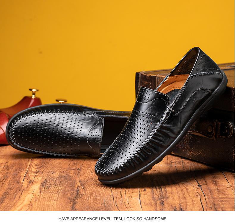 Zapatos casuales de cuero para hombre de primavera y otoño transfronterizos de comercio exterior de talla extra grande, zapatos blancos transpirables de estilo británico con huecos y cómodos zapatos para hombre