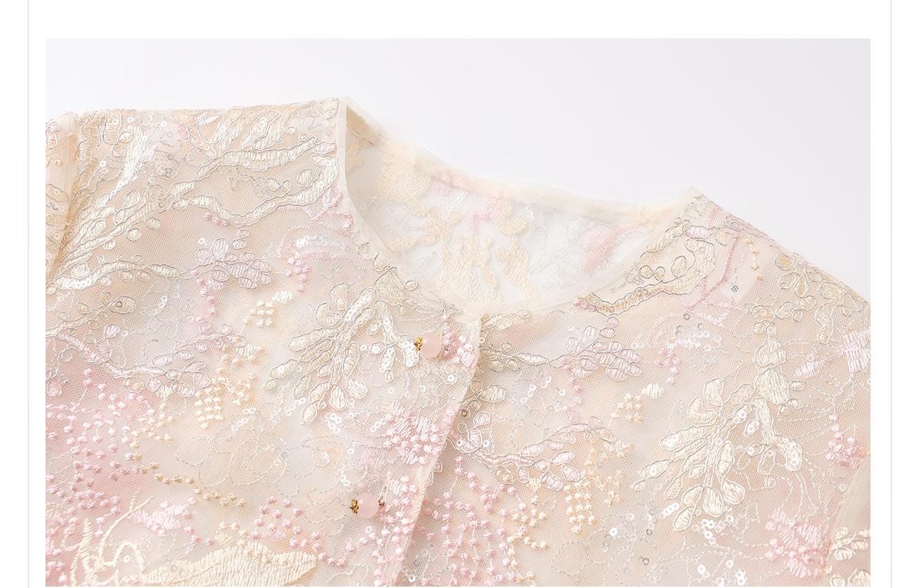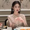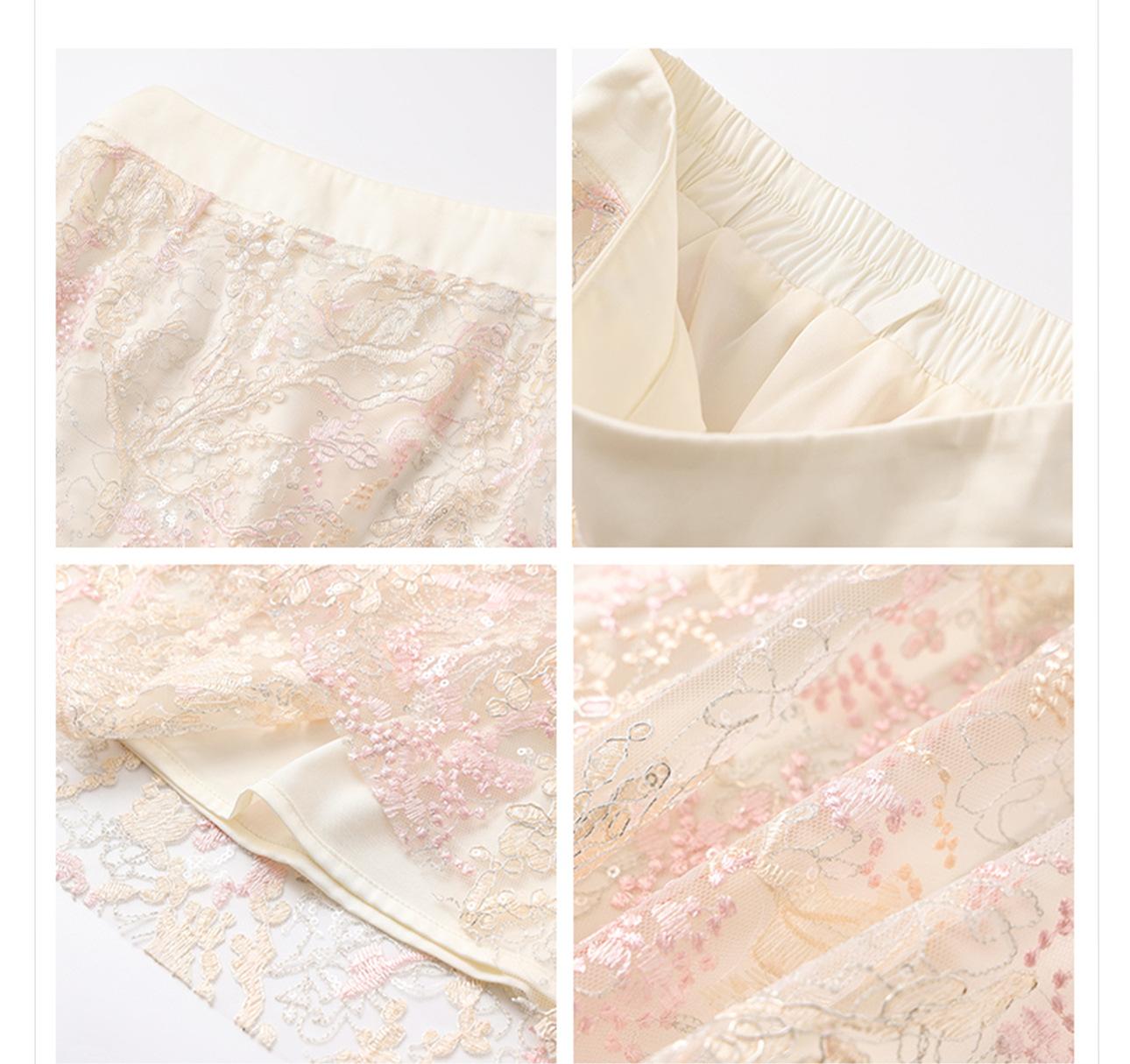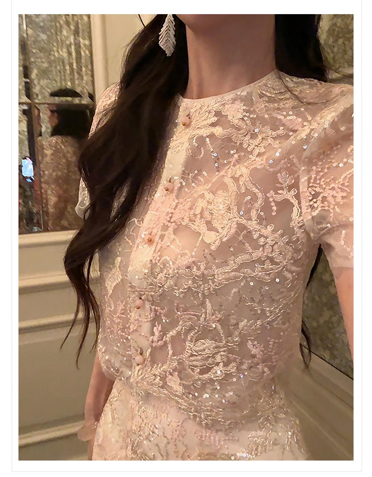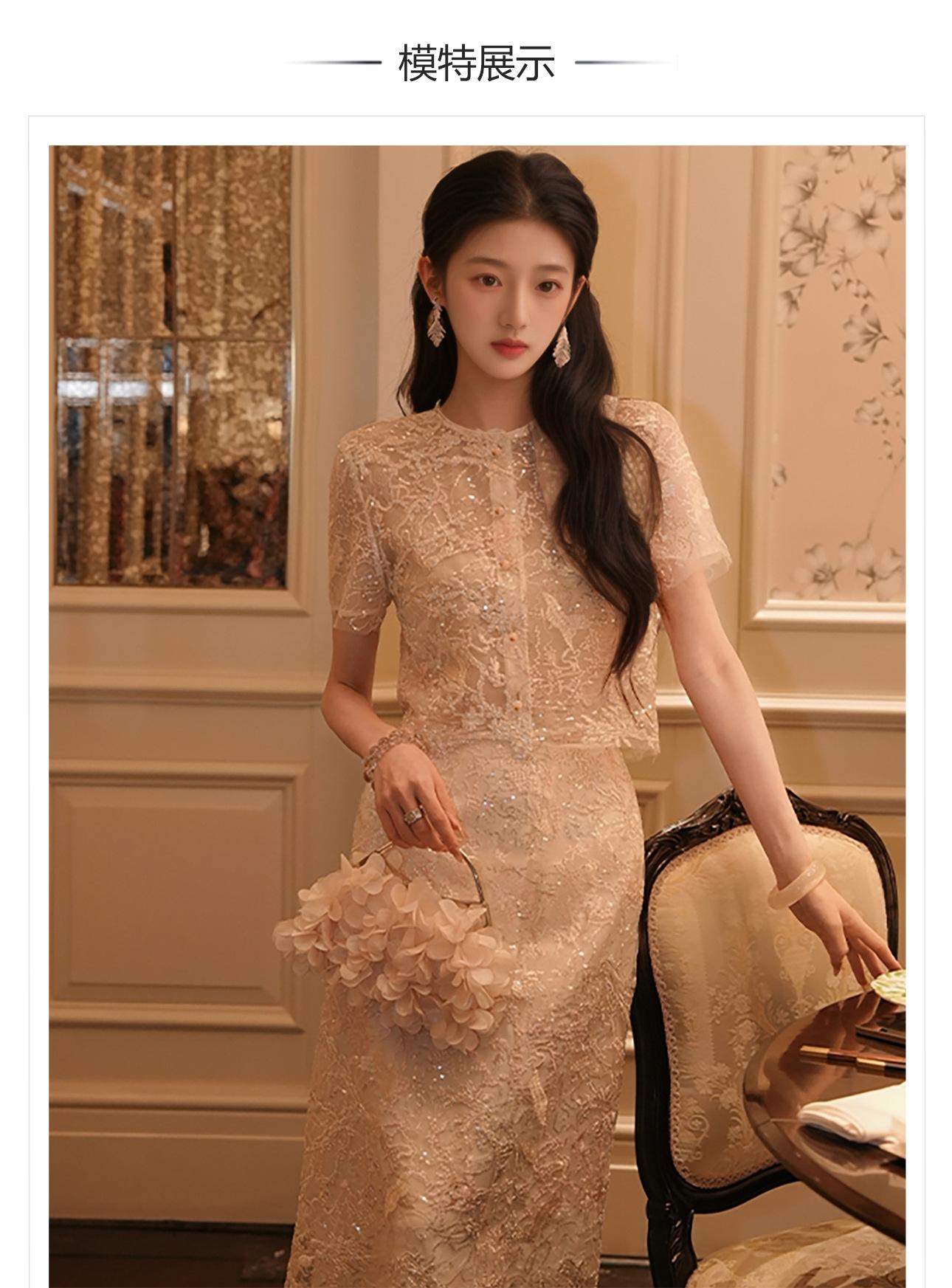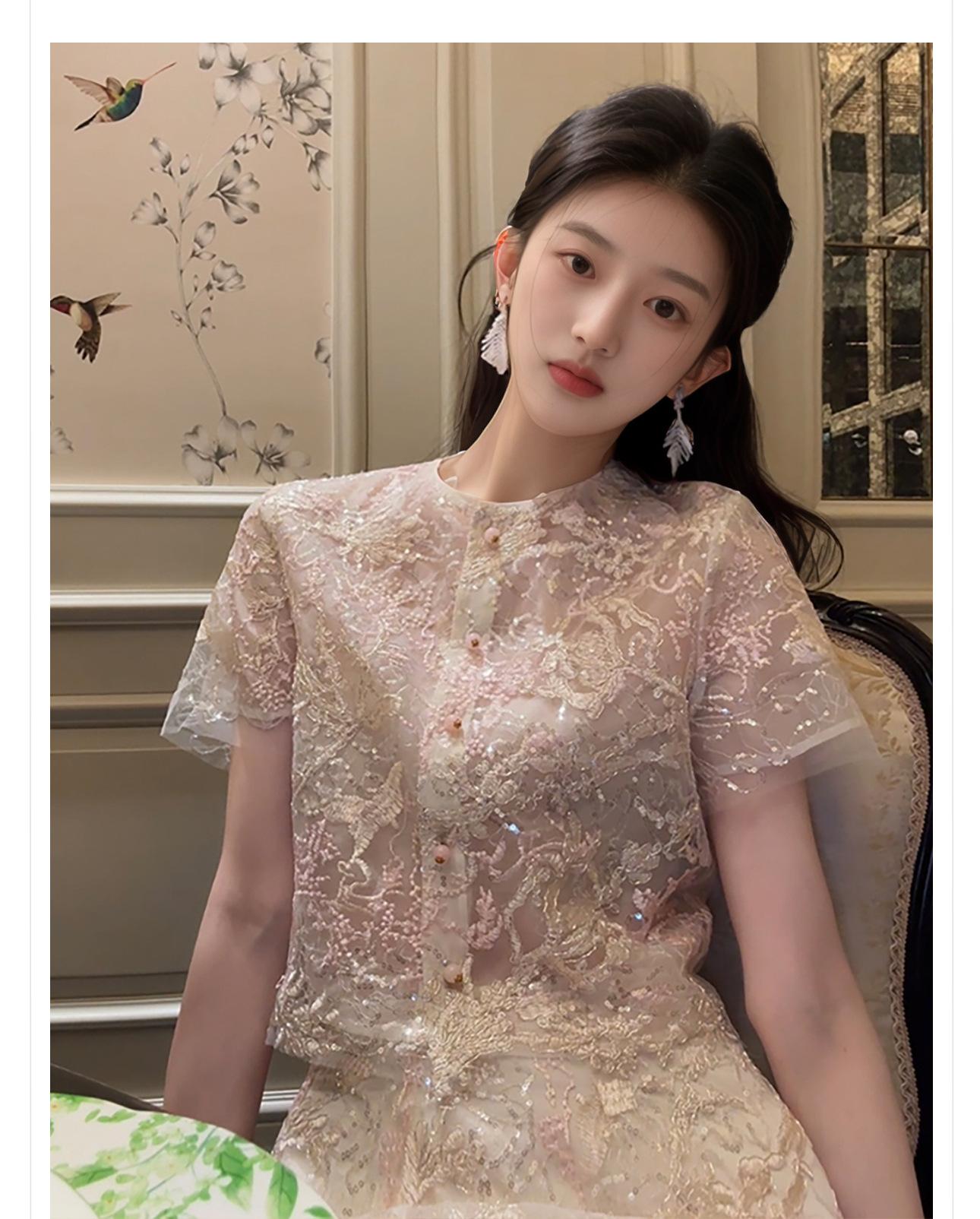 Nuevo Estilo Chino 2025 Verano Top de Encaje de Lentejuelas Pesadas para Mujer Estilo Nacional Camisa y Falda Ajustadas N6071