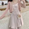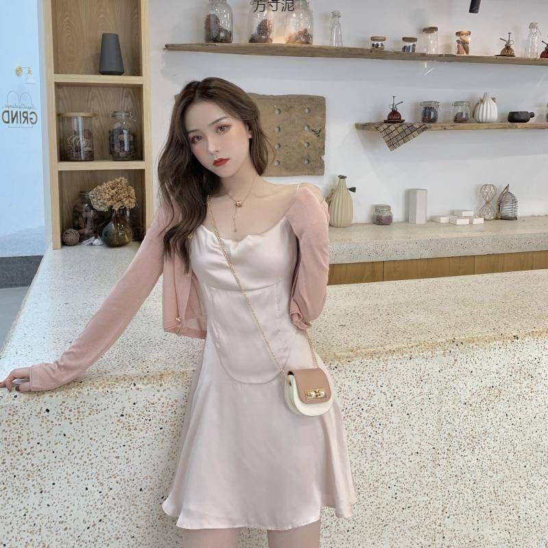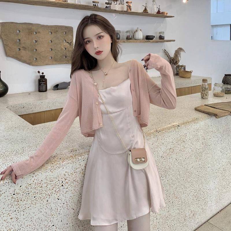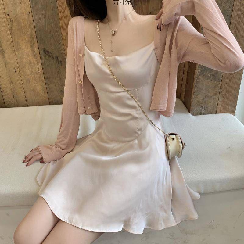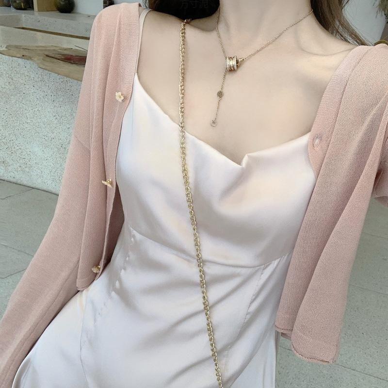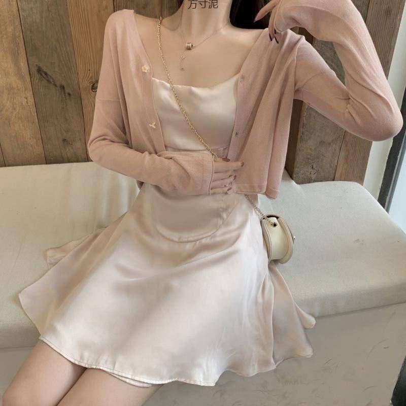 Camisa Exterior de Protección Solar Cárdigan Corto de Verano Chal Pequeño con Falda Sling Falda Exterior Tejida de Seda de Hielo Fina para Mujer