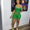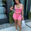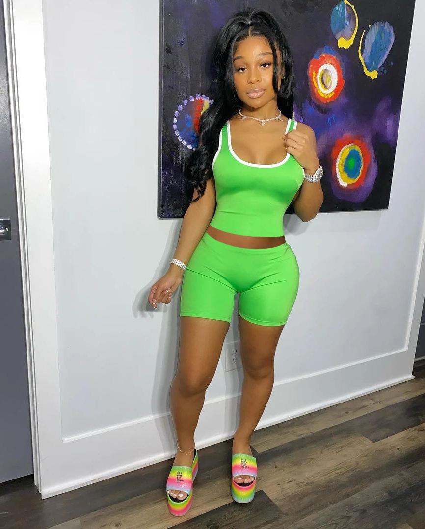 Ropa de Mujer Transfronteriza Europea y Americana Amazon Estación Independiente Moda Europea y Americana Sexy Deportivo Color Puro Chaleco Shorts Traje