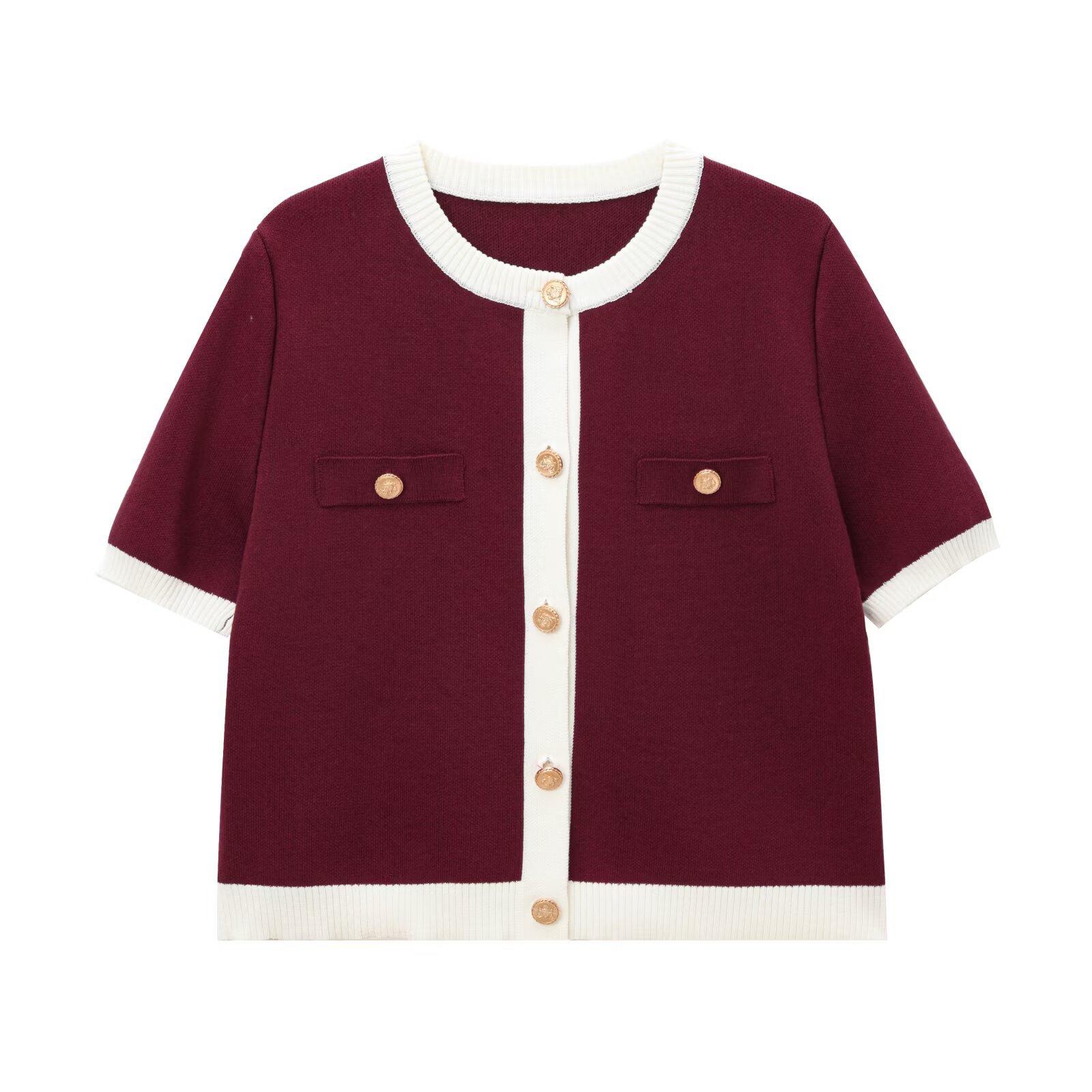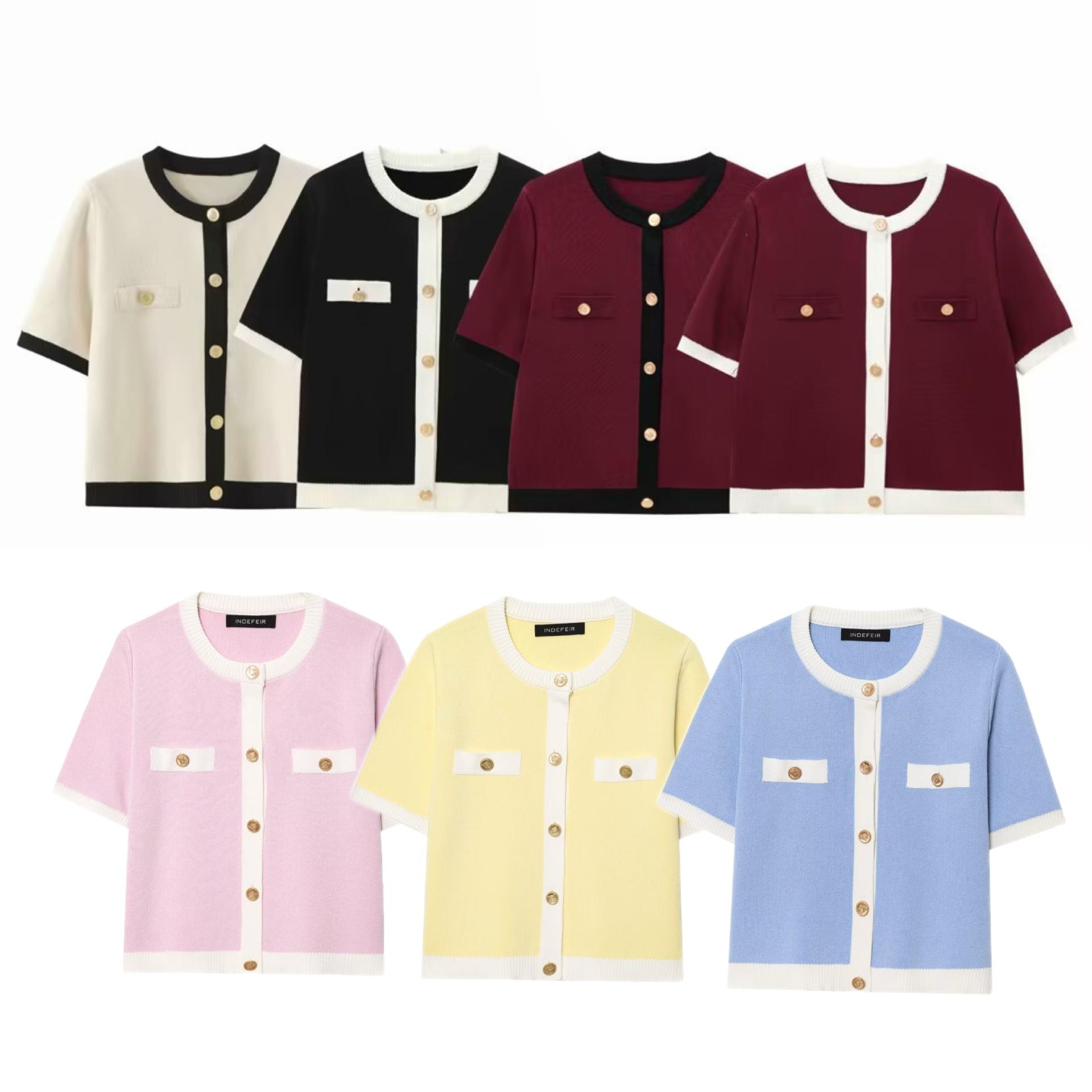 Aliexpress Transfronterizo Ropa Europea y Americana al por Mayor 2025 Principios de Primavera Nuevo Chaqueta de Punto de Manga Corta