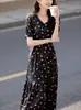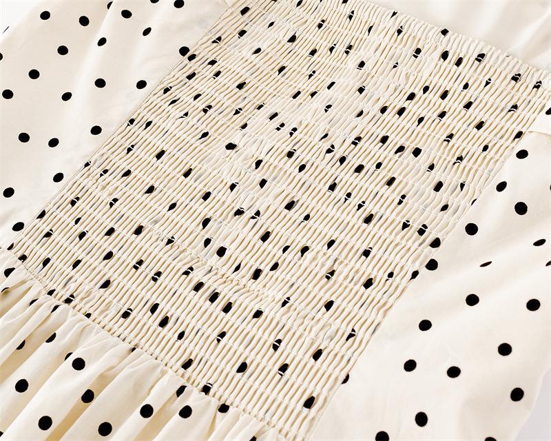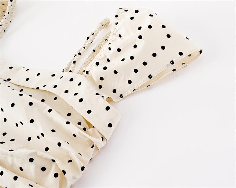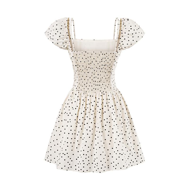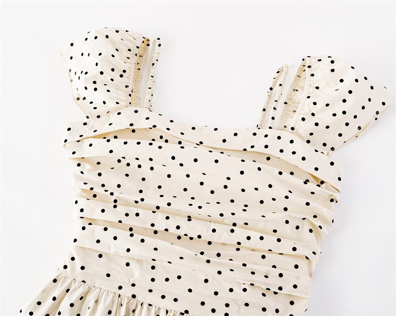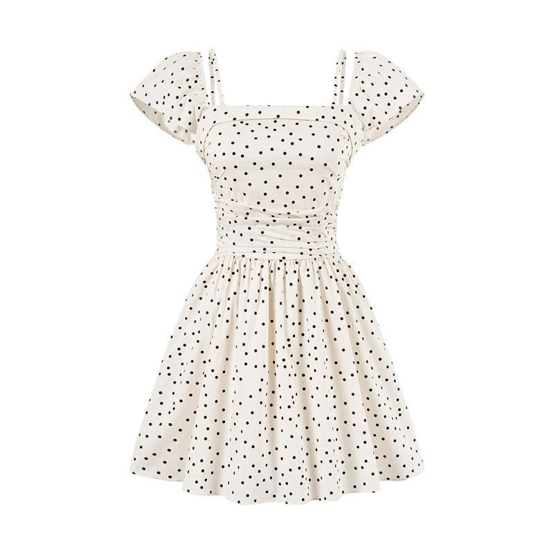 Vestido Retro Francés de Lunares con Cuello Cuadrado y Manga Corta 2025 Verano Nuevo Cintura Plisada Falda Corta Dulce y Picante para Mujer