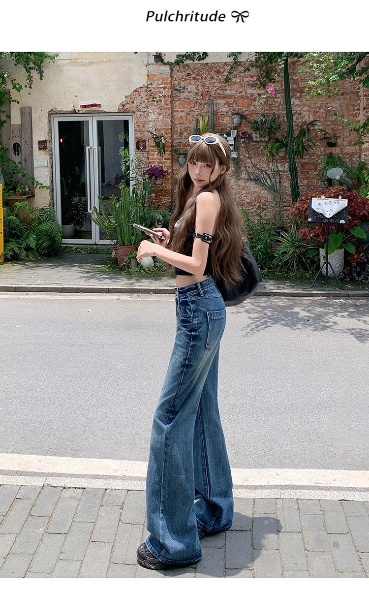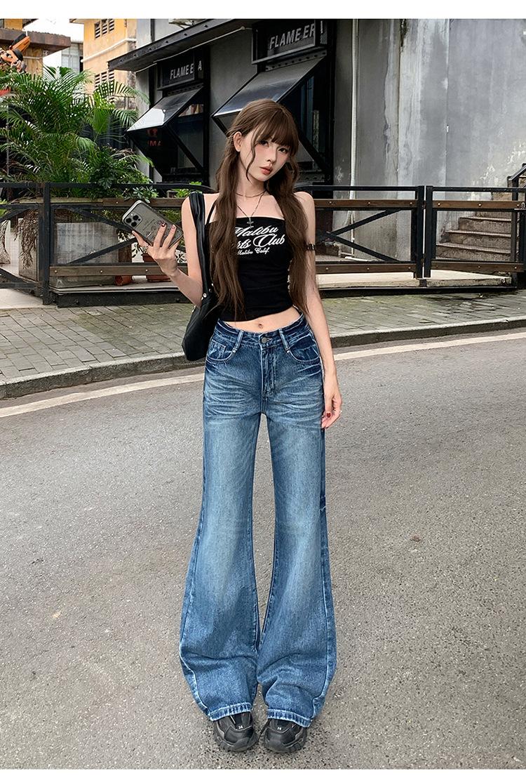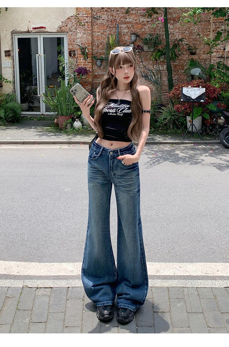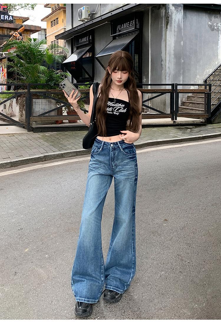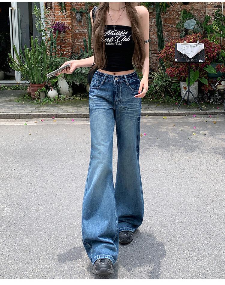 Infantil Naranja # Jeans Americanos de Calle para Chica Caliente de Cintura Baja y Pierna Ancha para Mujer, Sueltos, Ajustados, Personalizados y Versátiles Pantalones Largos hasta el Piso