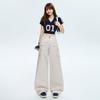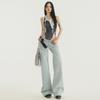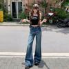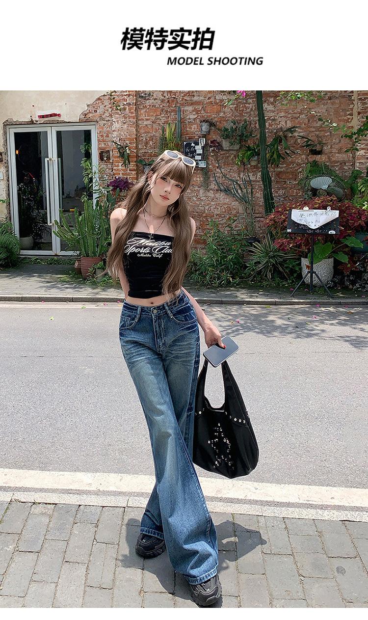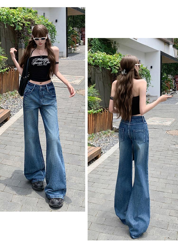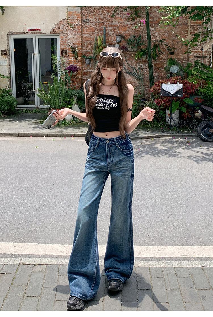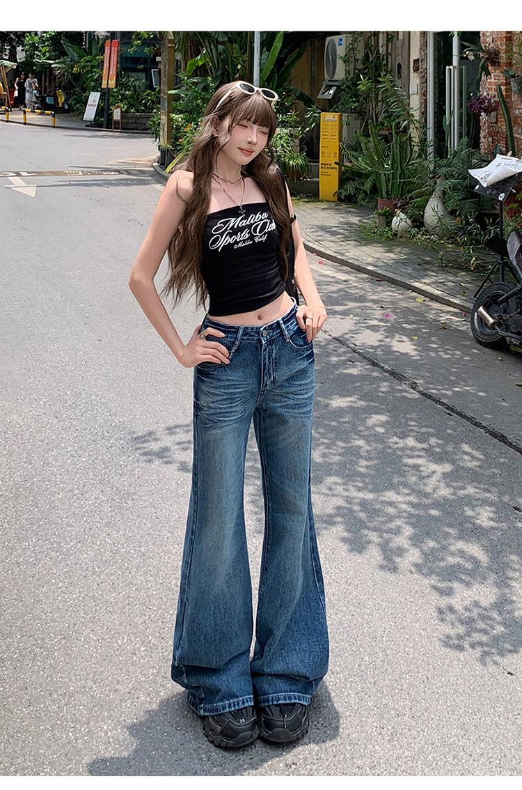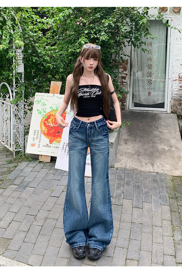 Infantil Naranja # Jeans Americanos de Calle para Chica Caliente de Cintura Baja y Pierna Ancha para Mujer, Sueltos, Ajustados, Personalizados y Versátiles Pantalones Largos hasta el Piso