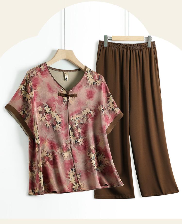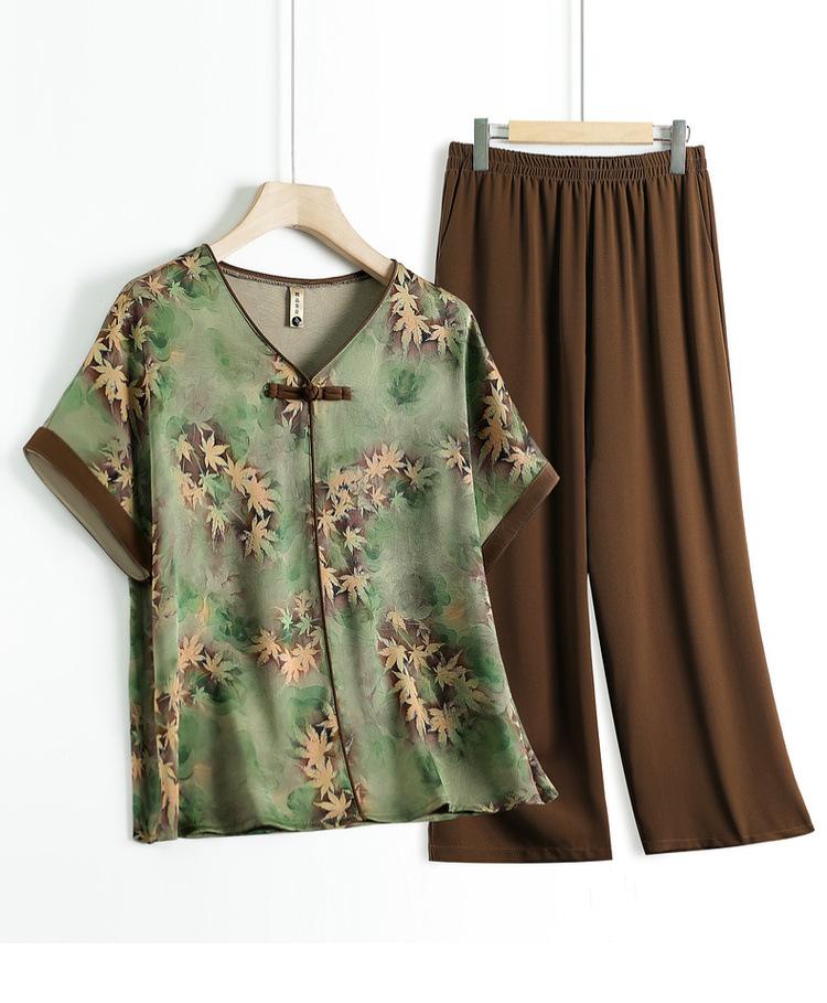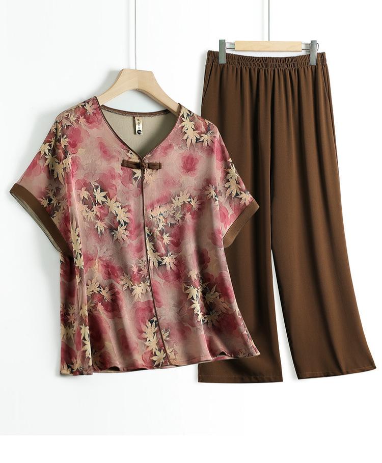 Traje de Verano para Madre de Mediana Edad Camisa Casual de Manga Corta Moda para Mujeres de Mediana Edad y Mayores Verano Nuevo Top de Media Manga