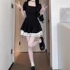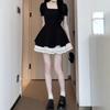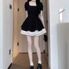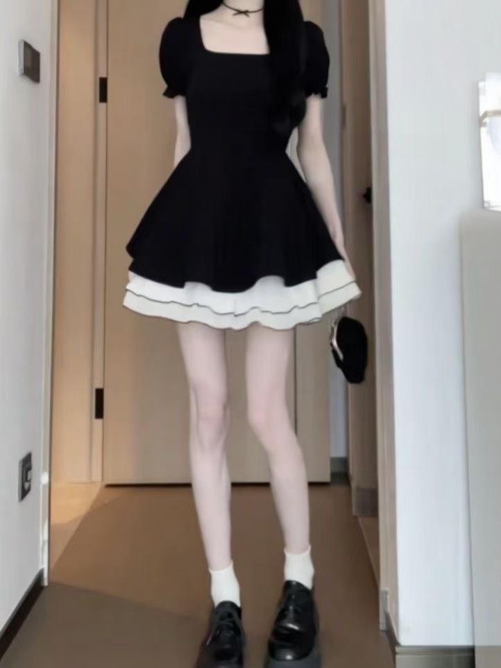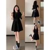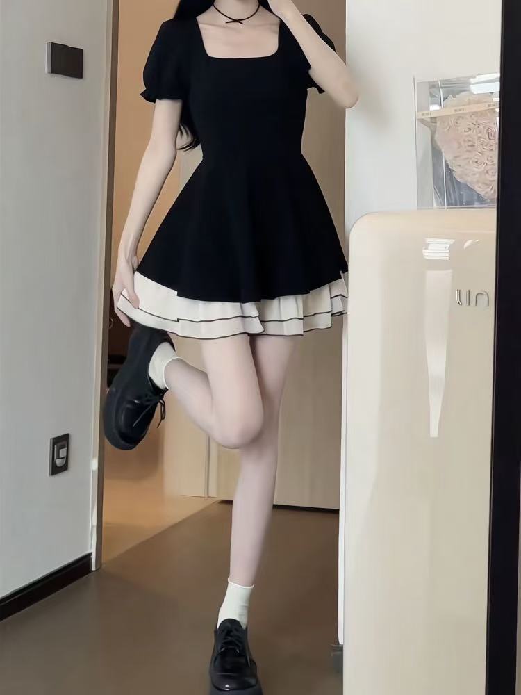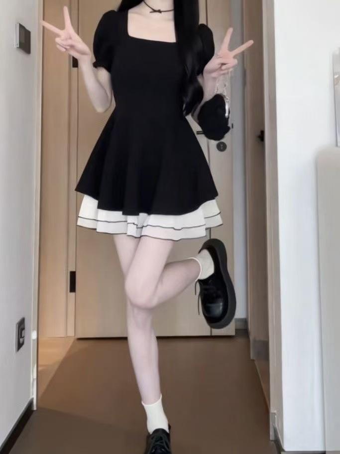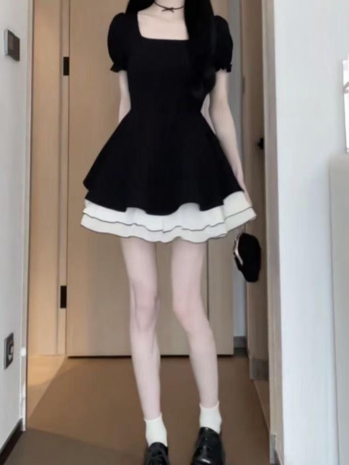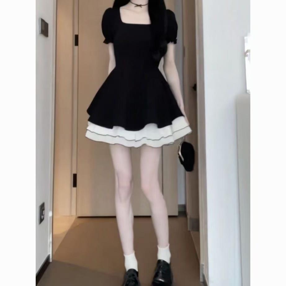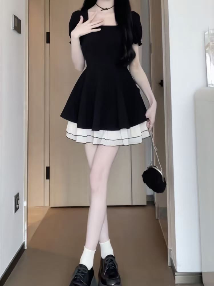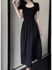 Vestido Negro Estilo Hepburn para Mujer Verano 2025 Nuevo Estilo Petite Elegante Cintura Alta Falda Corta de Alta Gama