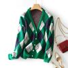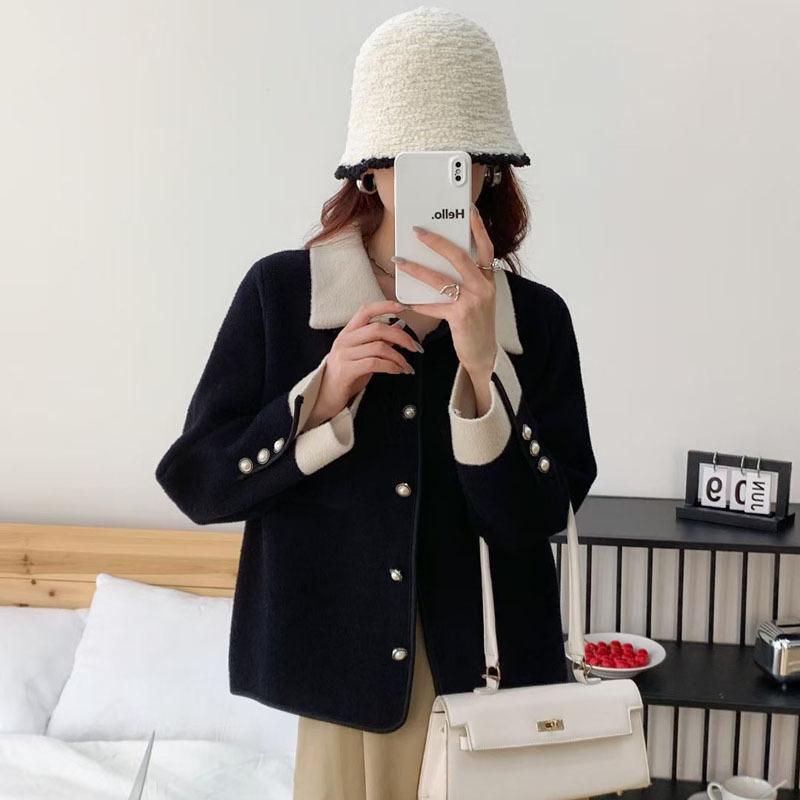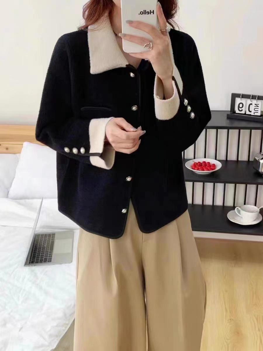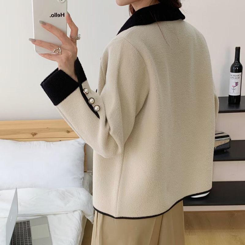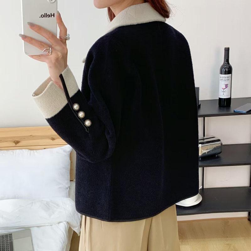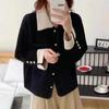 Cárdigan de punto suelto con solapa de moda de otoño e invierno de Maoning, chaqueta suéter casual para mujer con combinación de colores elegante