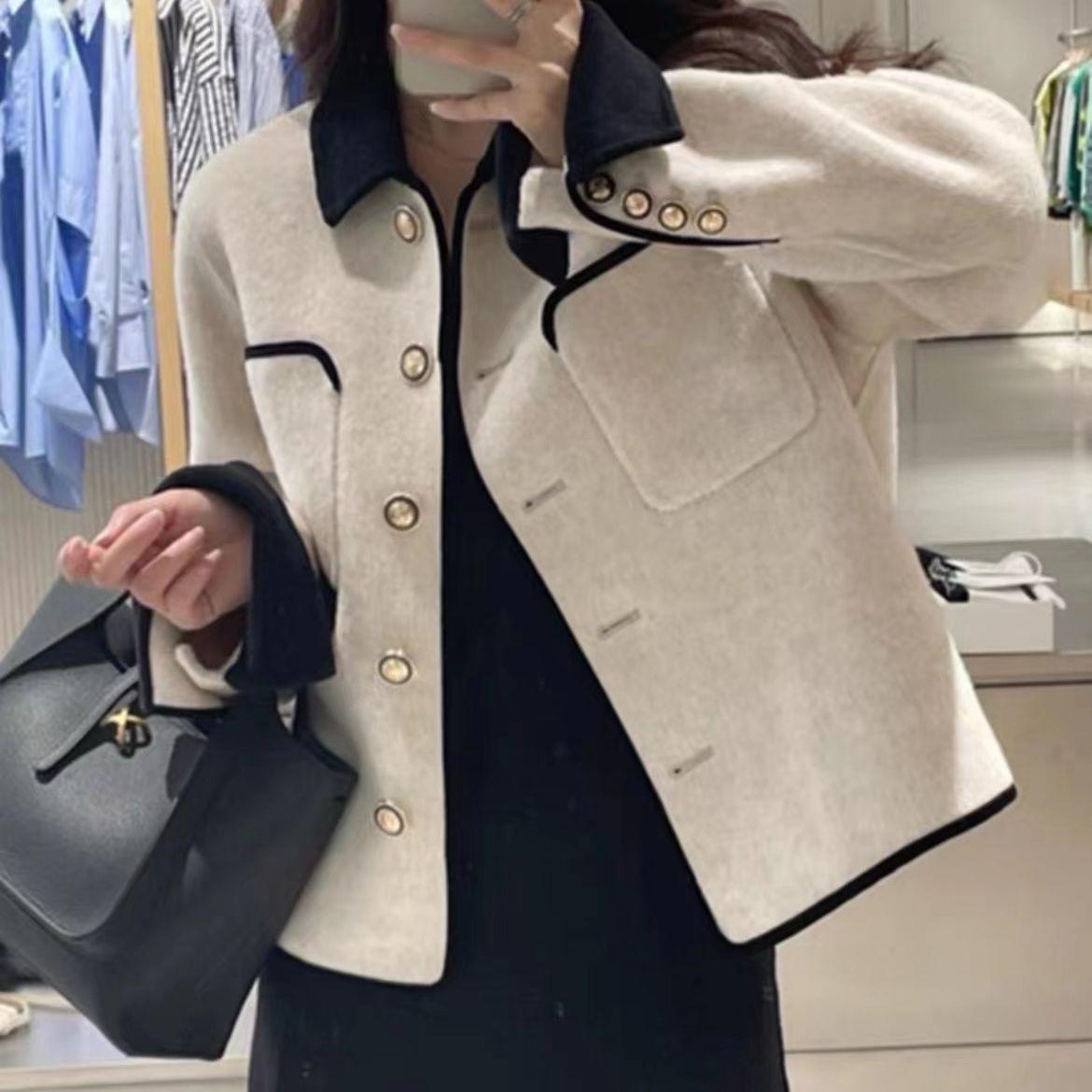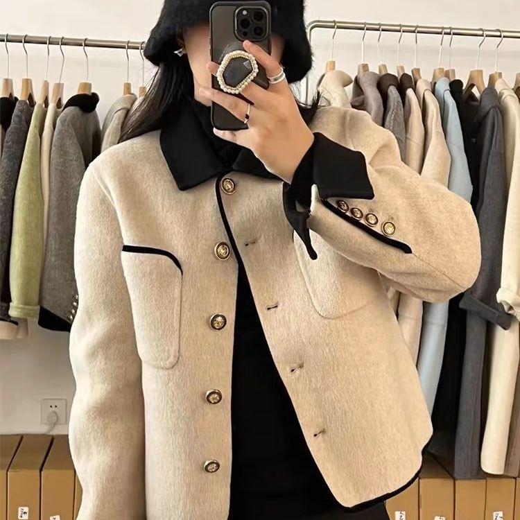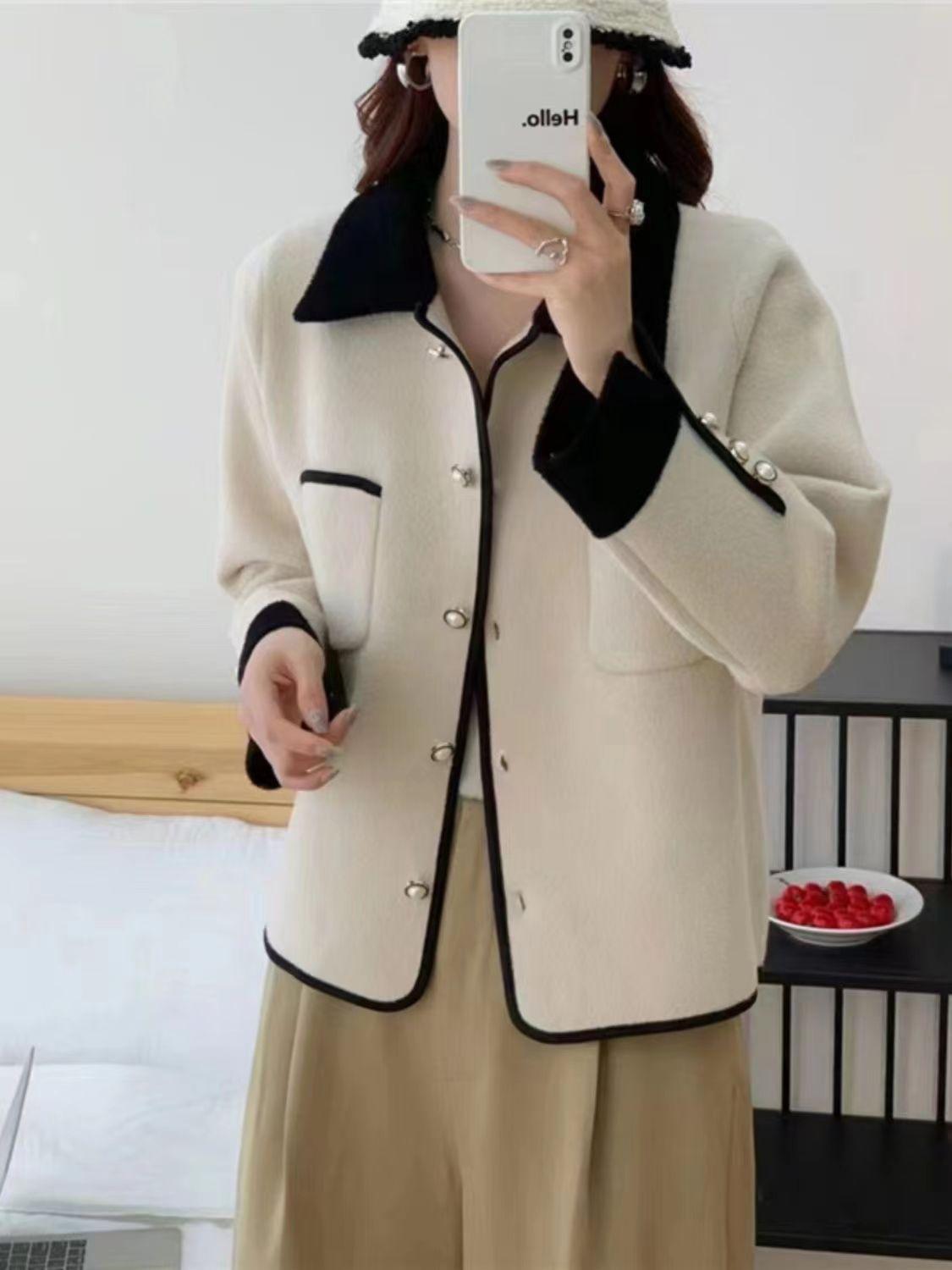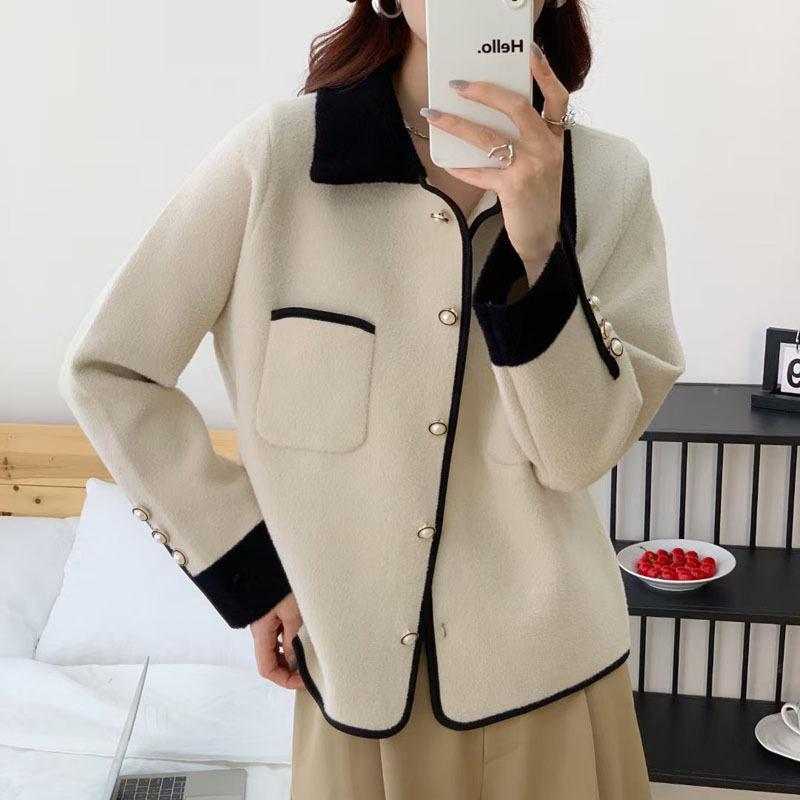 Cárdigan de punto suelto con solapa de moda de otoño e invierno de Maoning, chaqueta suéter casual para mujer con combinación de colores elegante