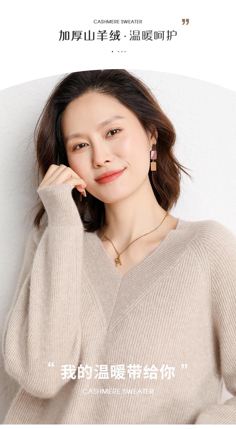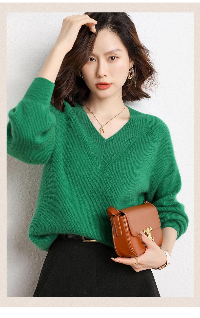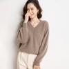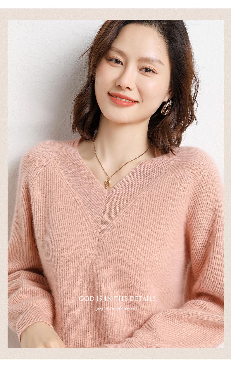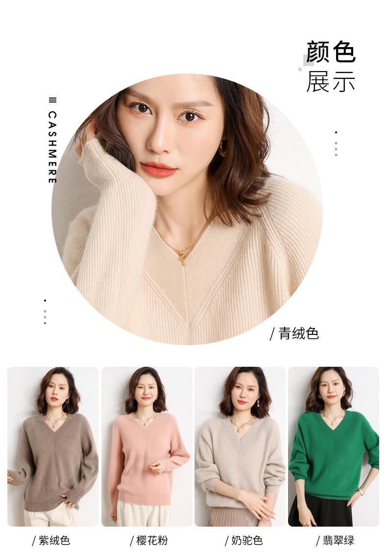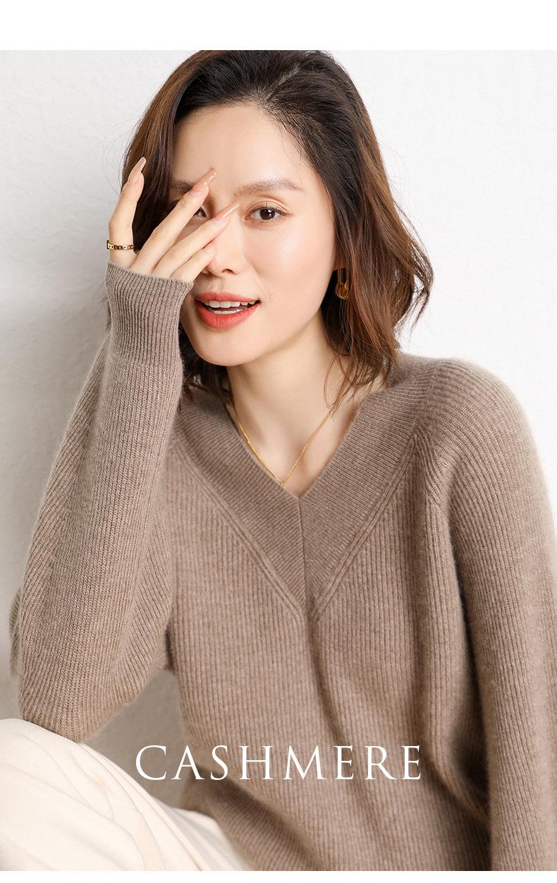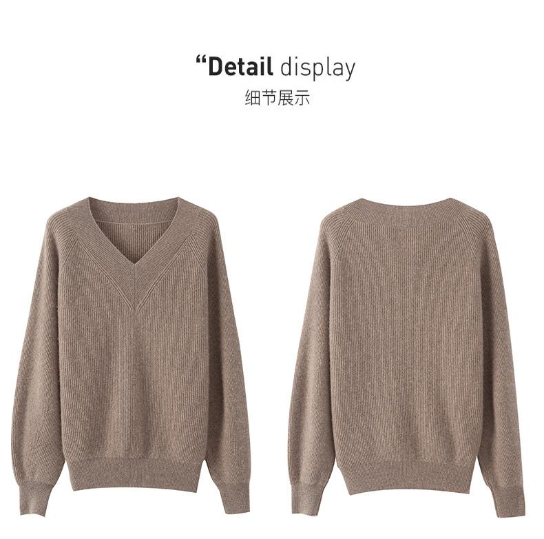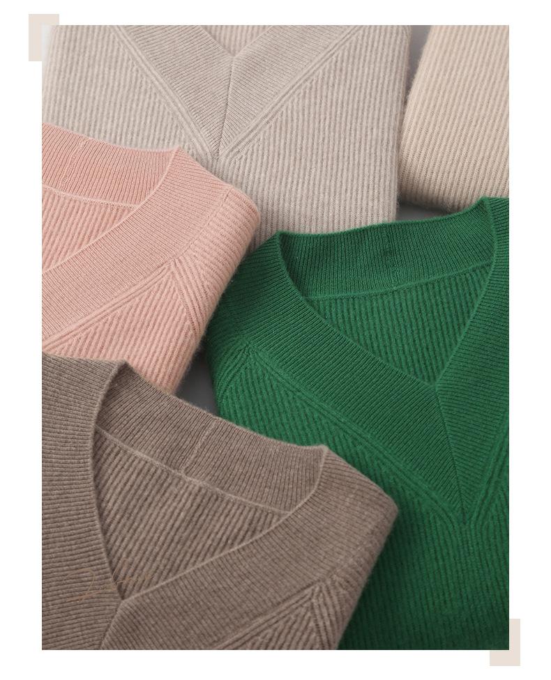 Suéter de Cachemira para Mujer Estilo Nuevo Otoño/Invierno 2025 Pulóver de Cuello en V Interno Manga Larga Top Holgado Grueso Camisa Básica de Punto