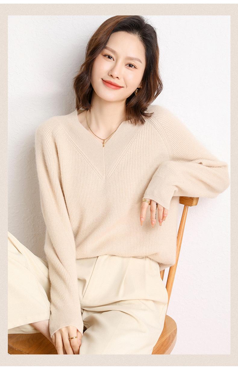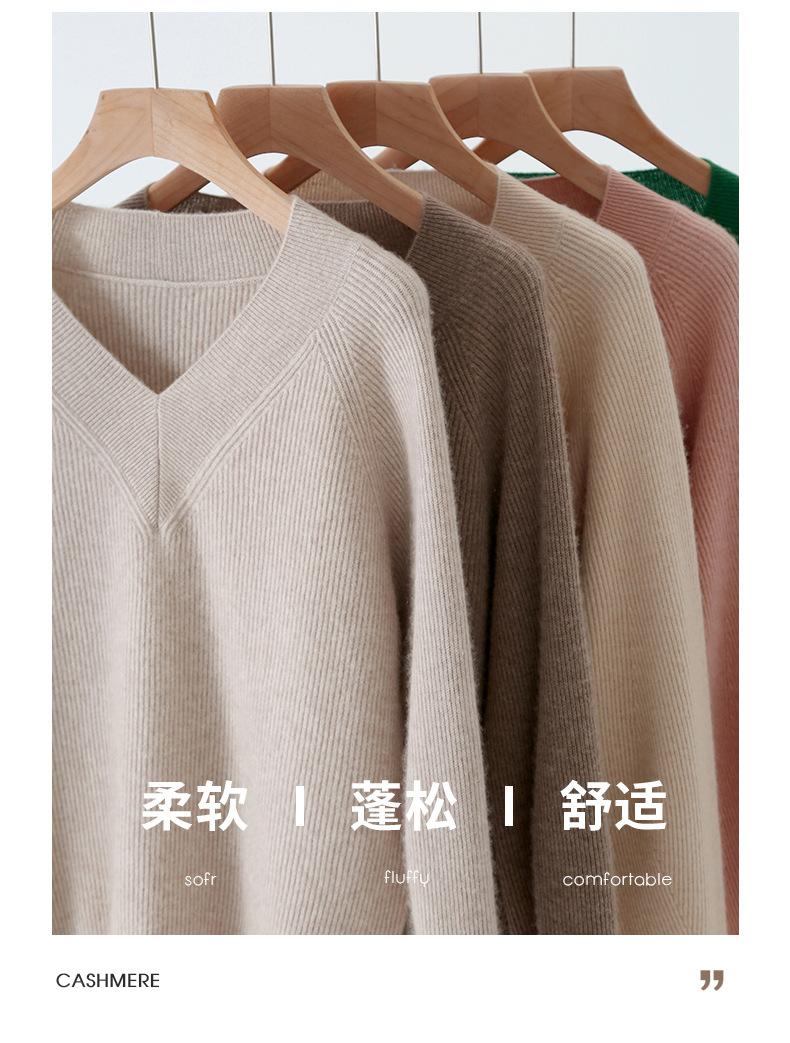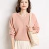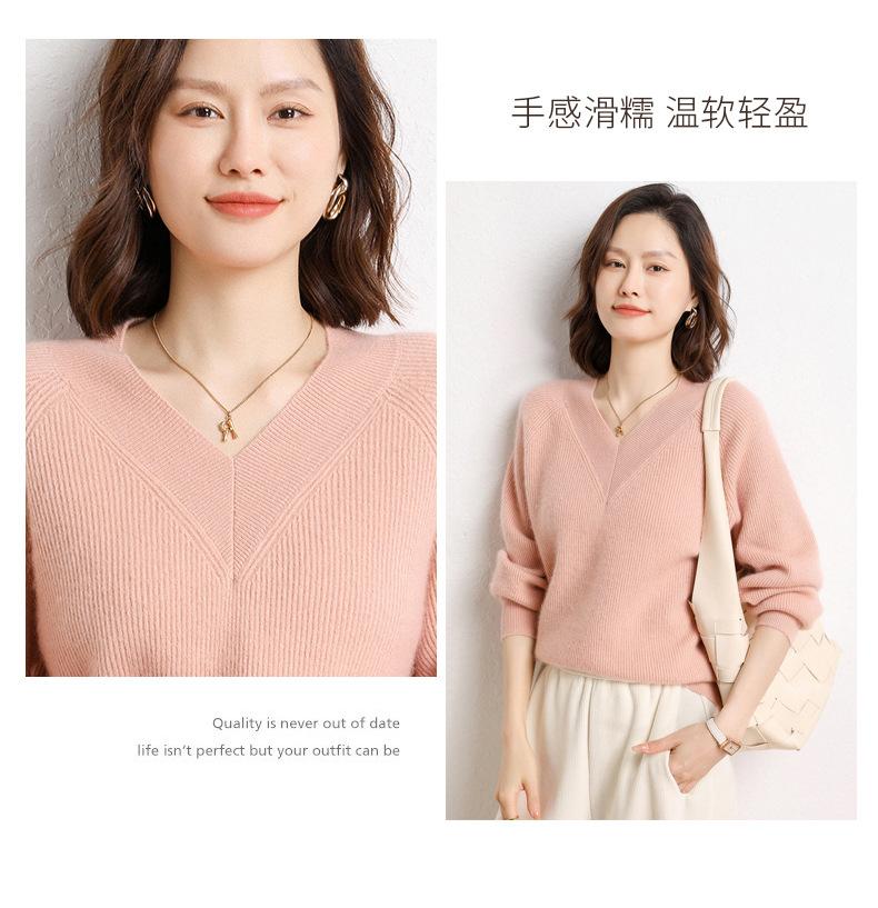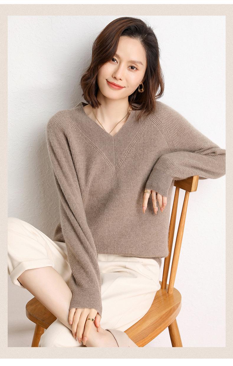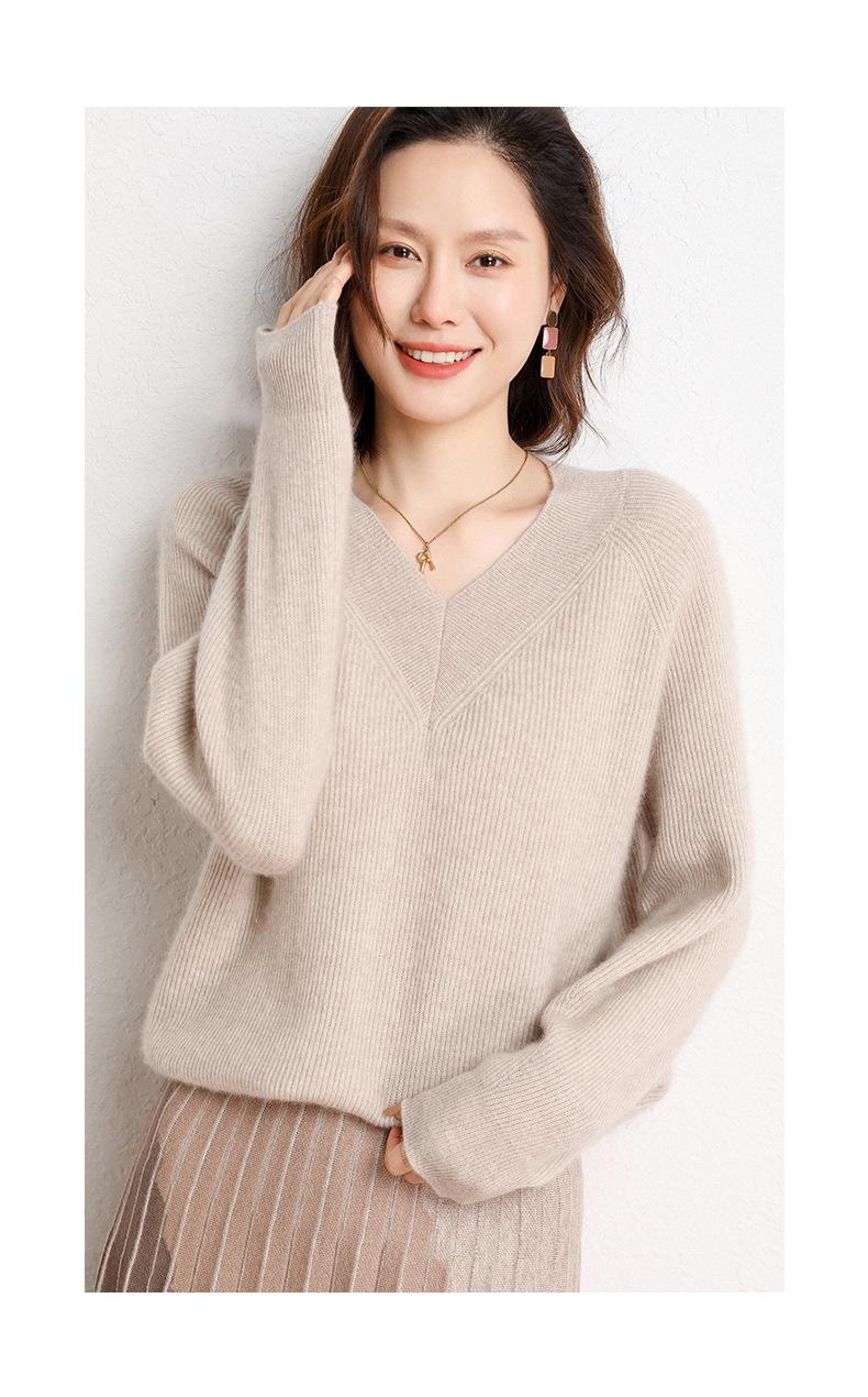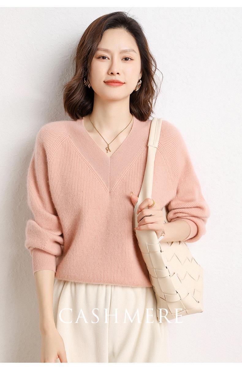 Suéter de Cachemira para Mujer Estilo Nuevo Otoño/Invierno 2025 Pulóver de Cuello en V Interno Manga Larga Top Holgado Grueso Camisa Básica de Punto