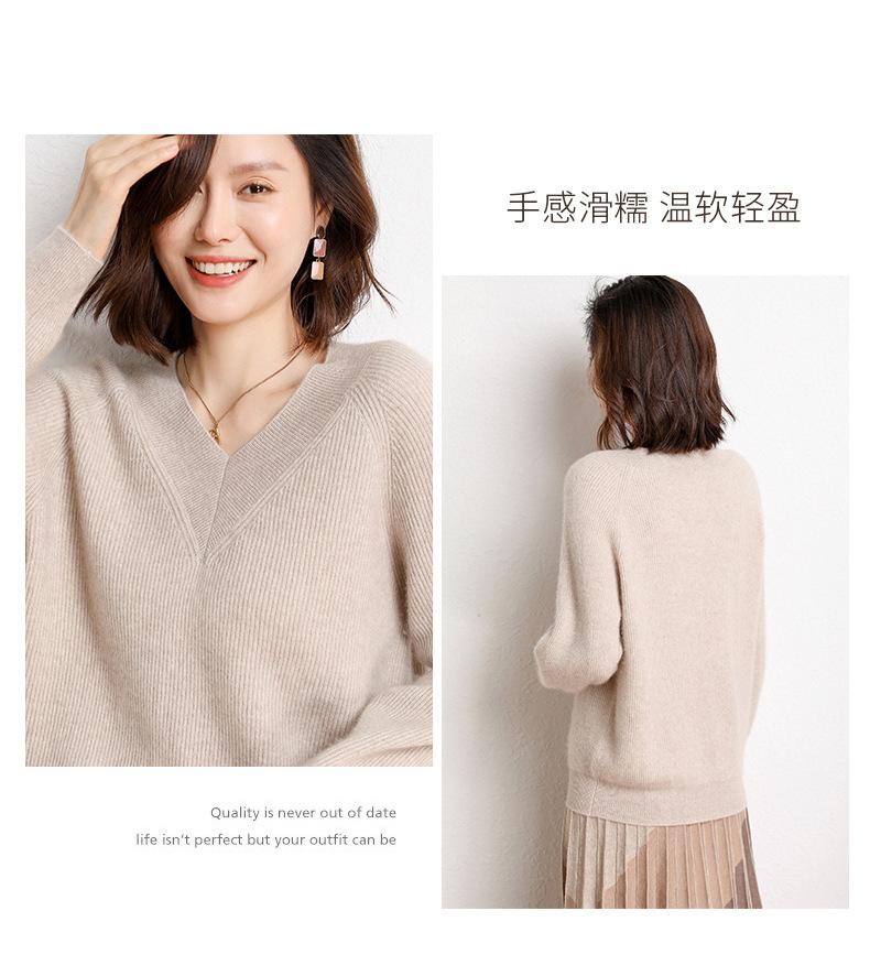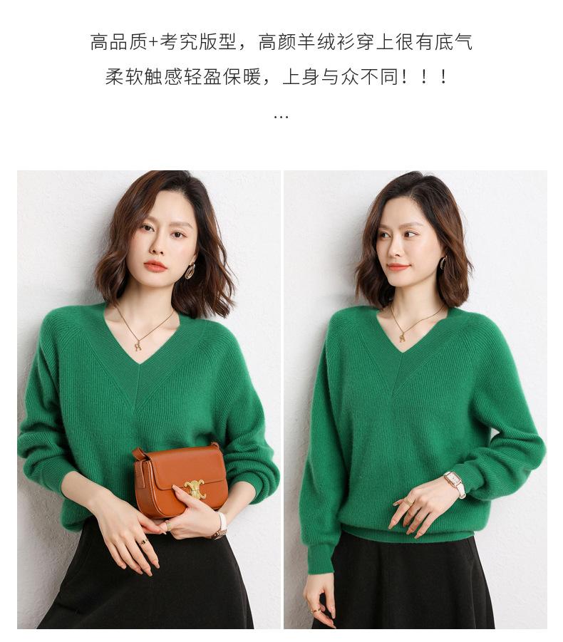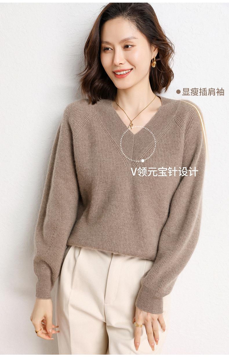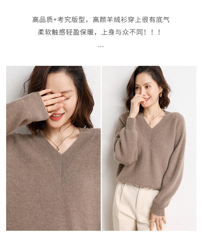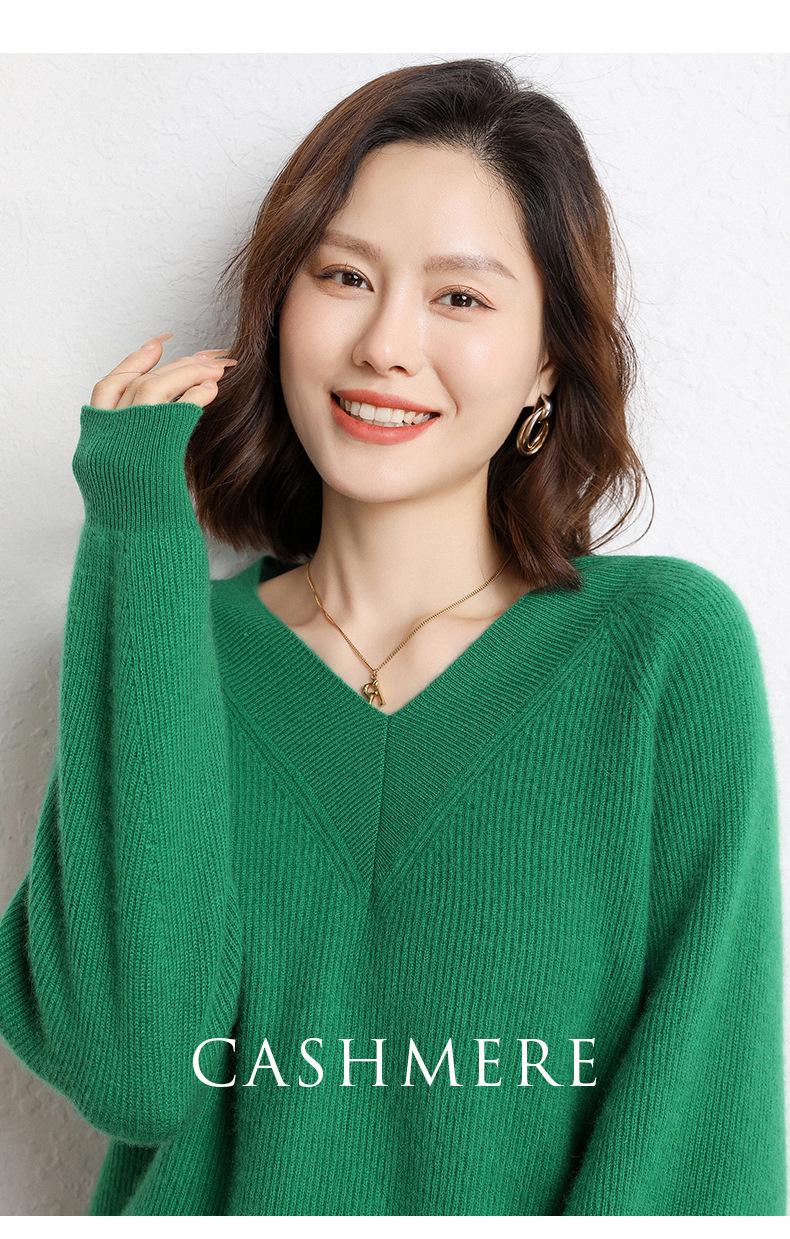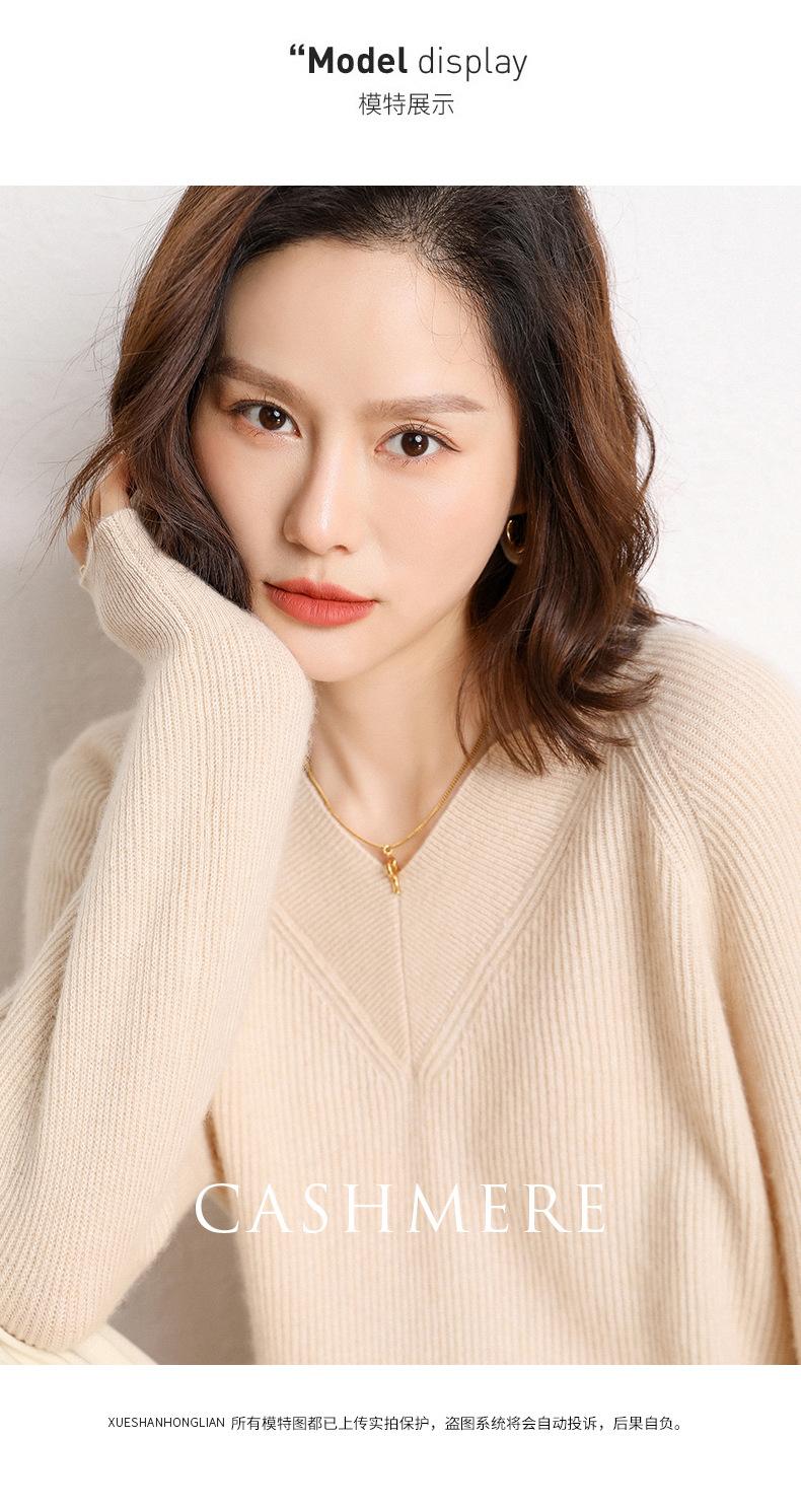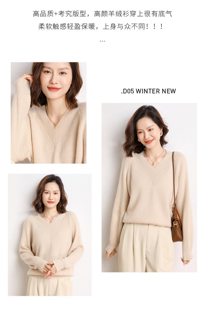 Suéter de Cachemira para Mujer Estilo Nuevo Otoño/Invierno 2025 Pulóver de Cuello en V Interno Manga Larga Top Holgado Grueso Camisa Básica de Punto