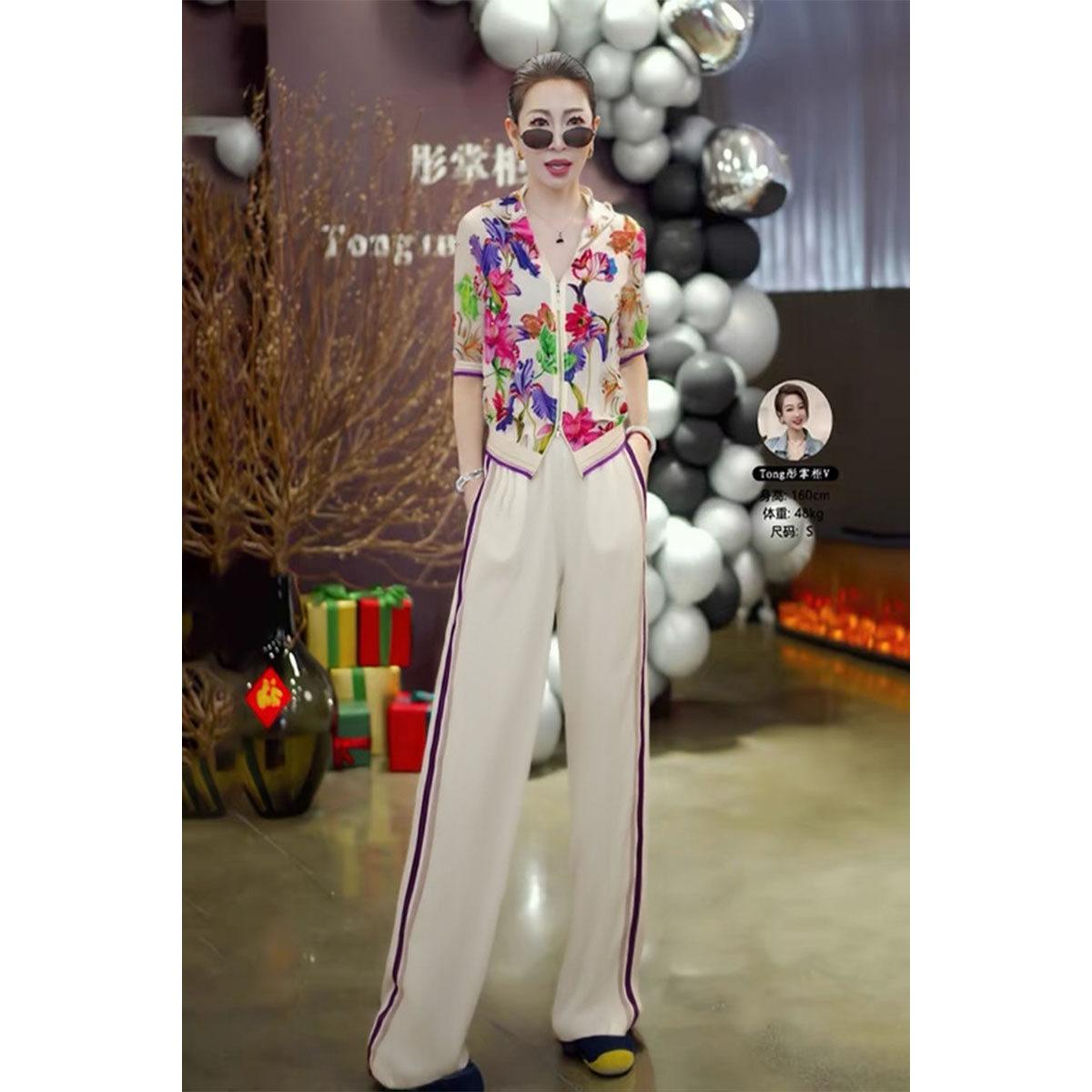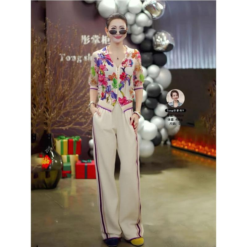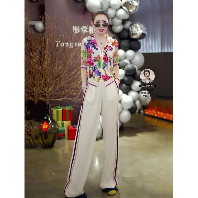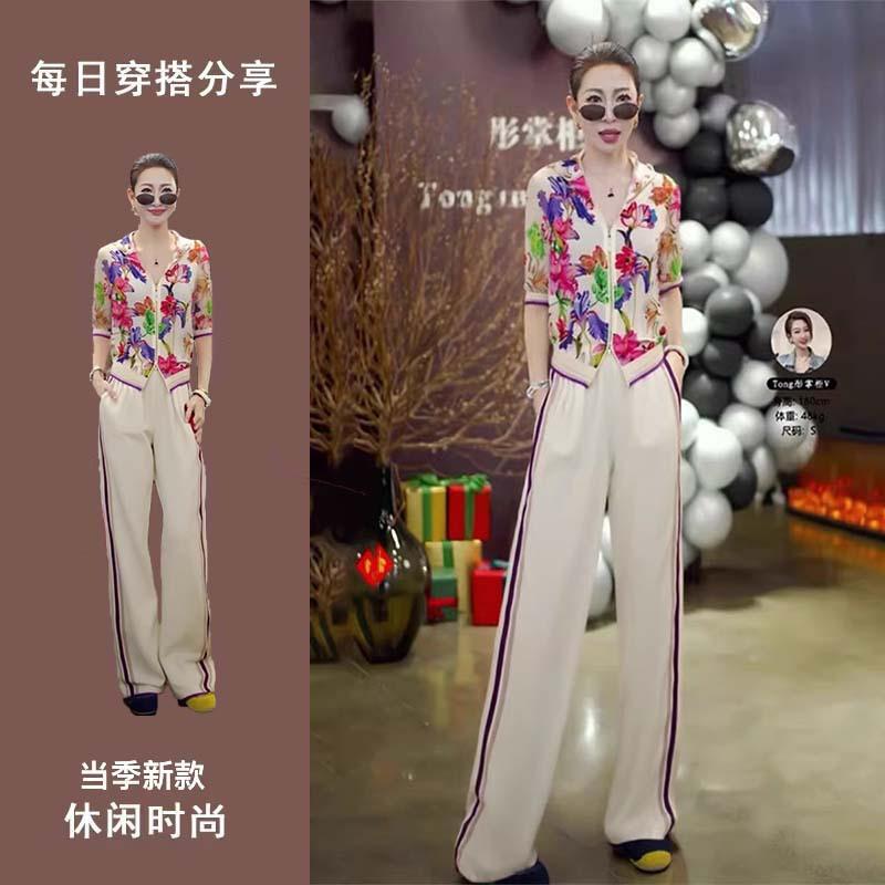 Conjunto de Moda de Verano 2025 para Mujer, Elegante, Rejuvenecedor, Top Morado de Manga Corta, Pantalones Casuales, Conjunto de Dos Piezas para Mujer