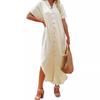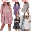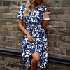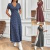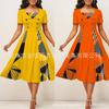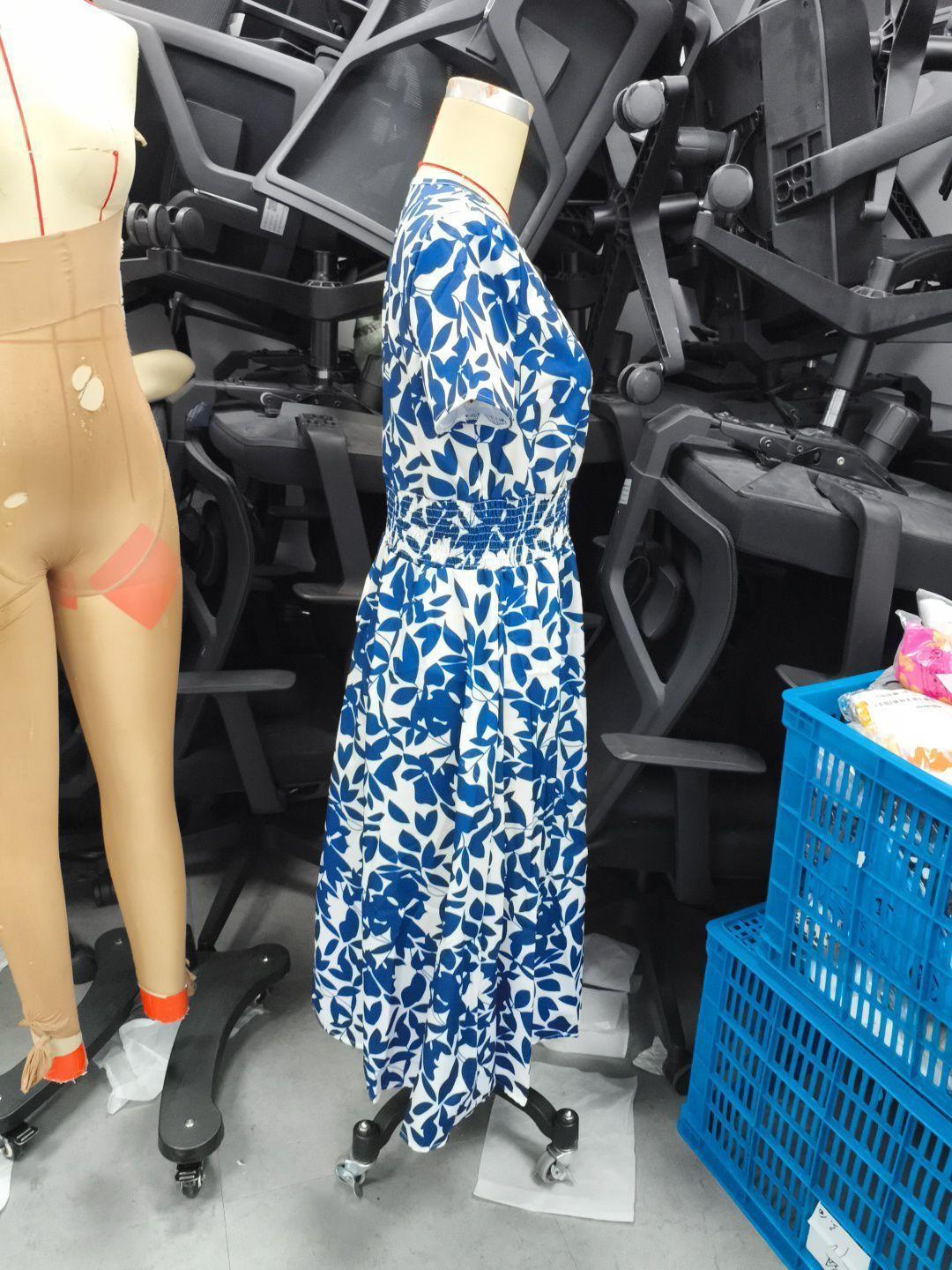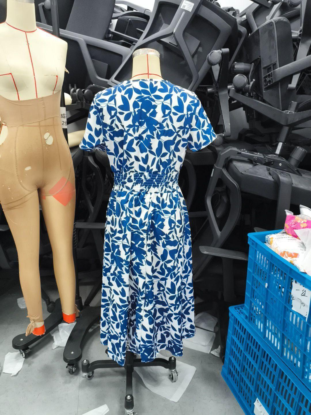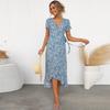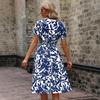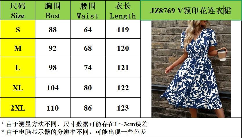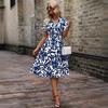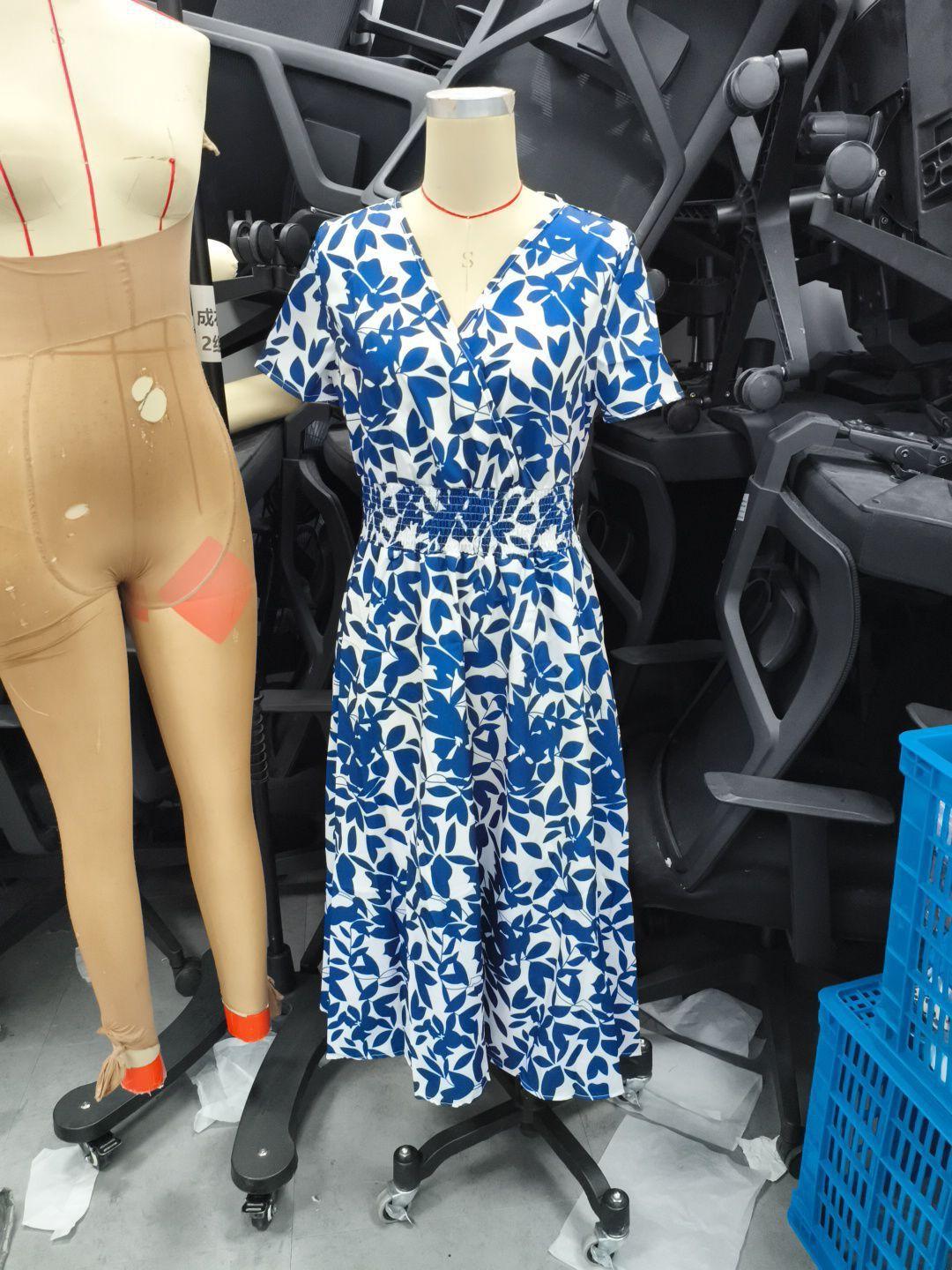 Transfronterizo 2025 Europa y Estados Unidos Amazon nuevo primavera y verano manga corta cuello en V estampado de hojas falda grande cintura vestido