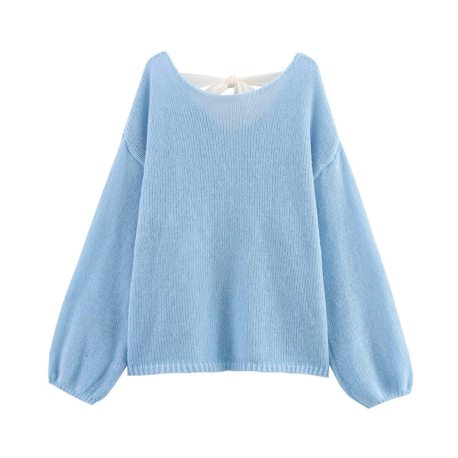 Ropa de Mujer Nueva Primavera 2025 Estilo Europeo y Americano Moda Suelta y Más Fácil de Combinar Suéter Tejido con Lazo en la Espalda