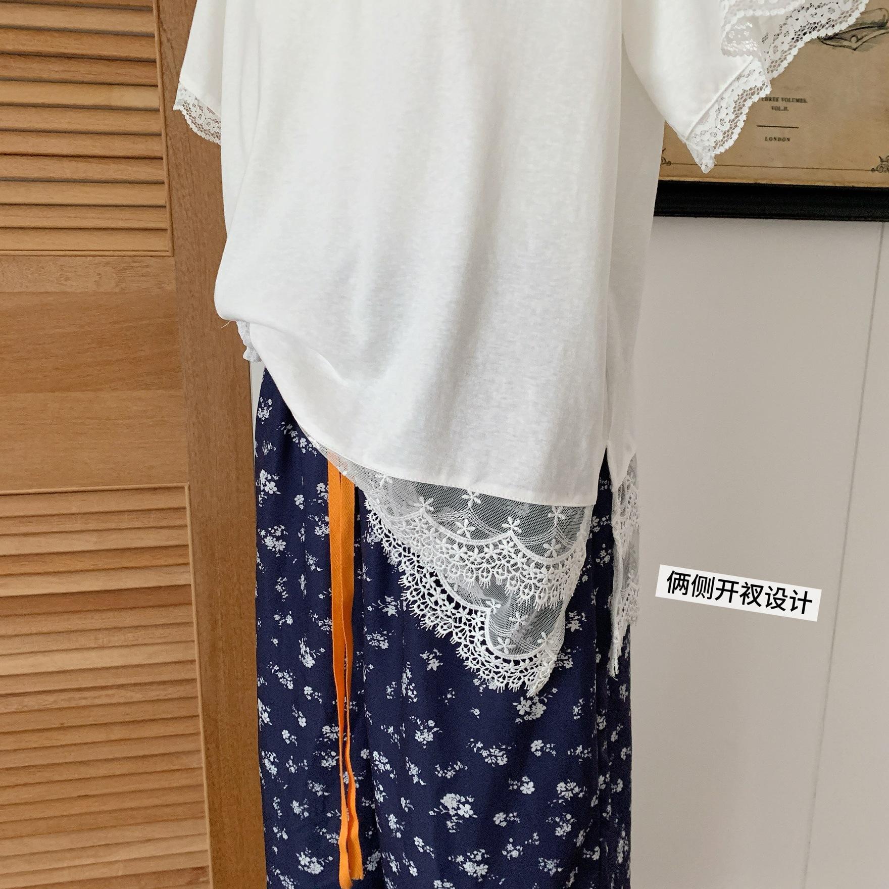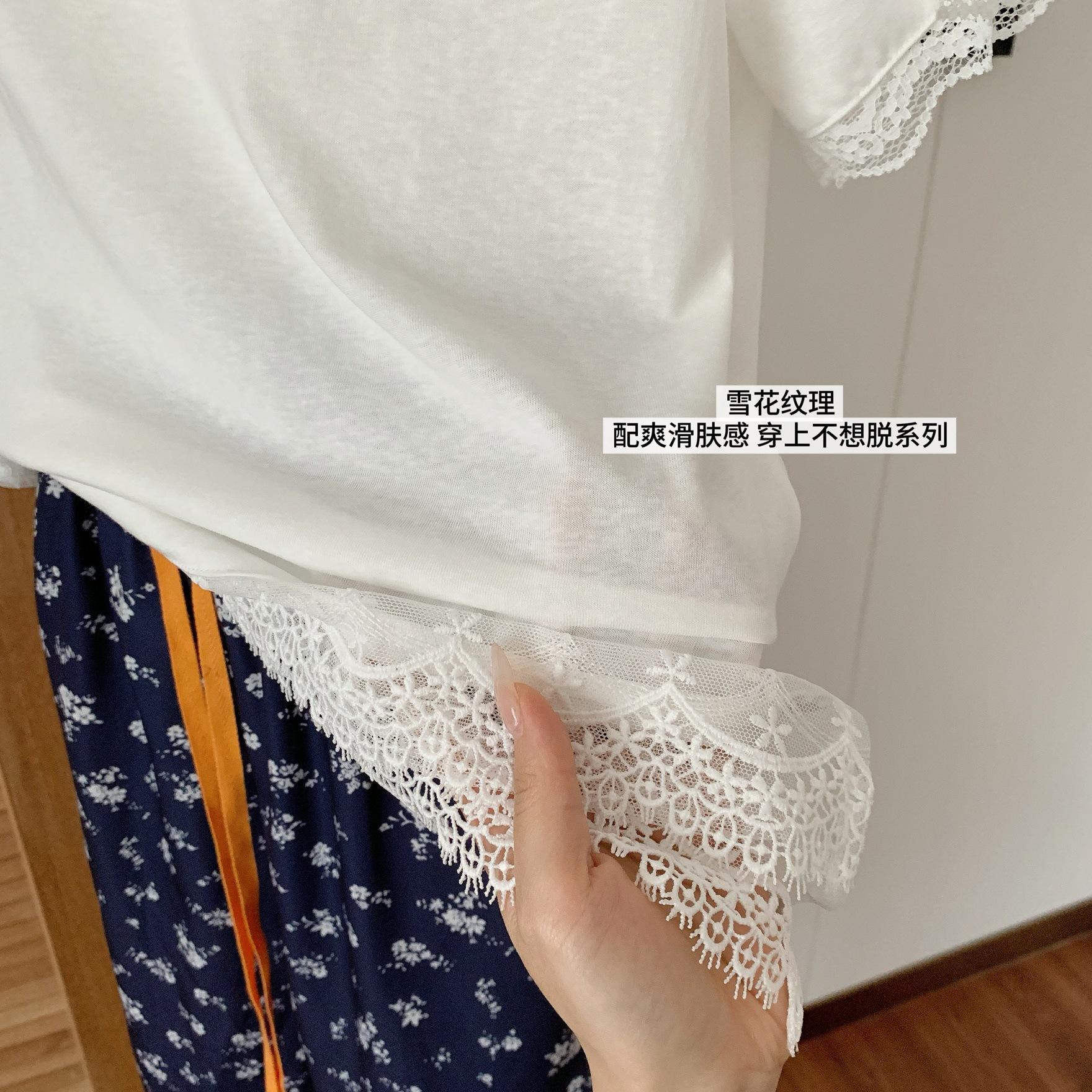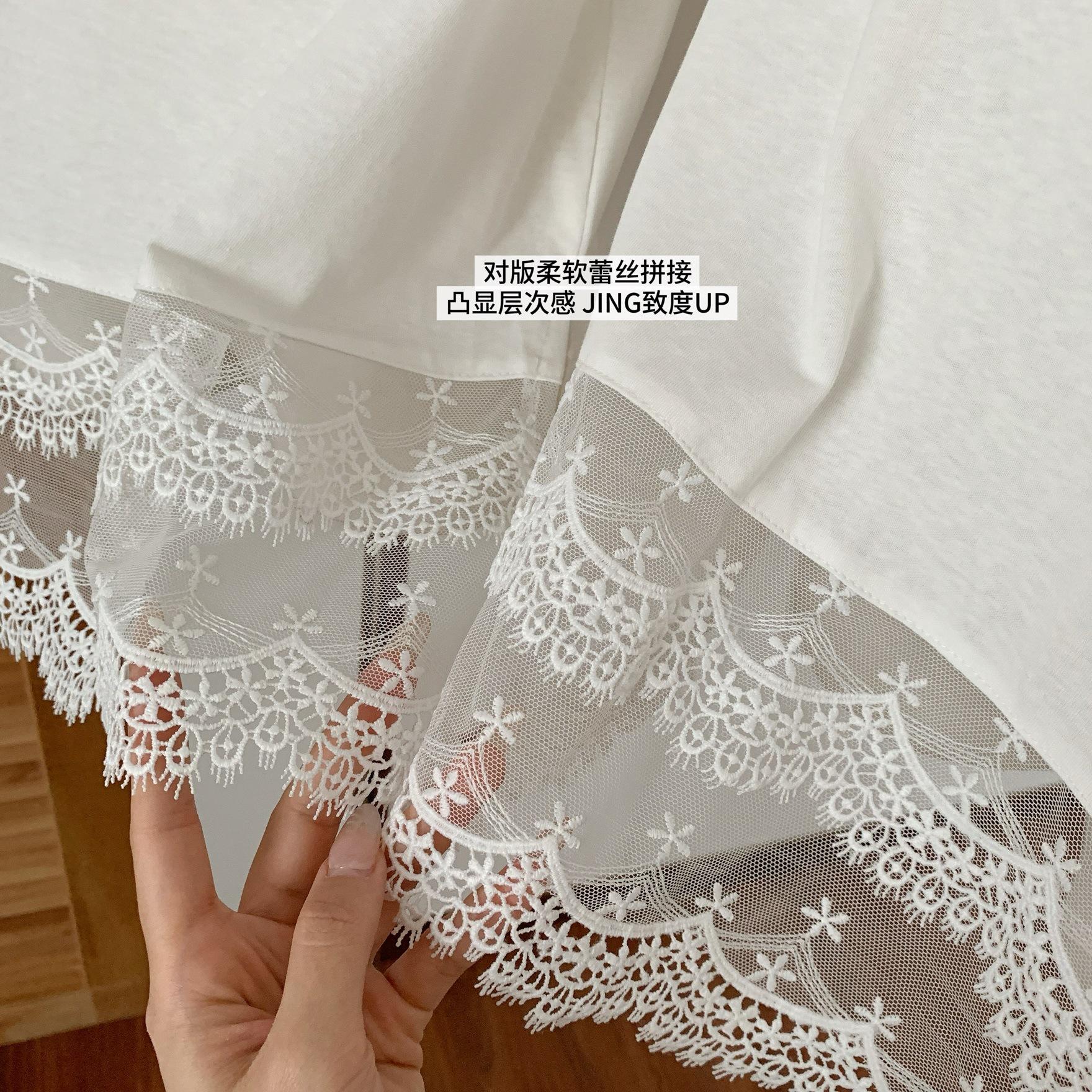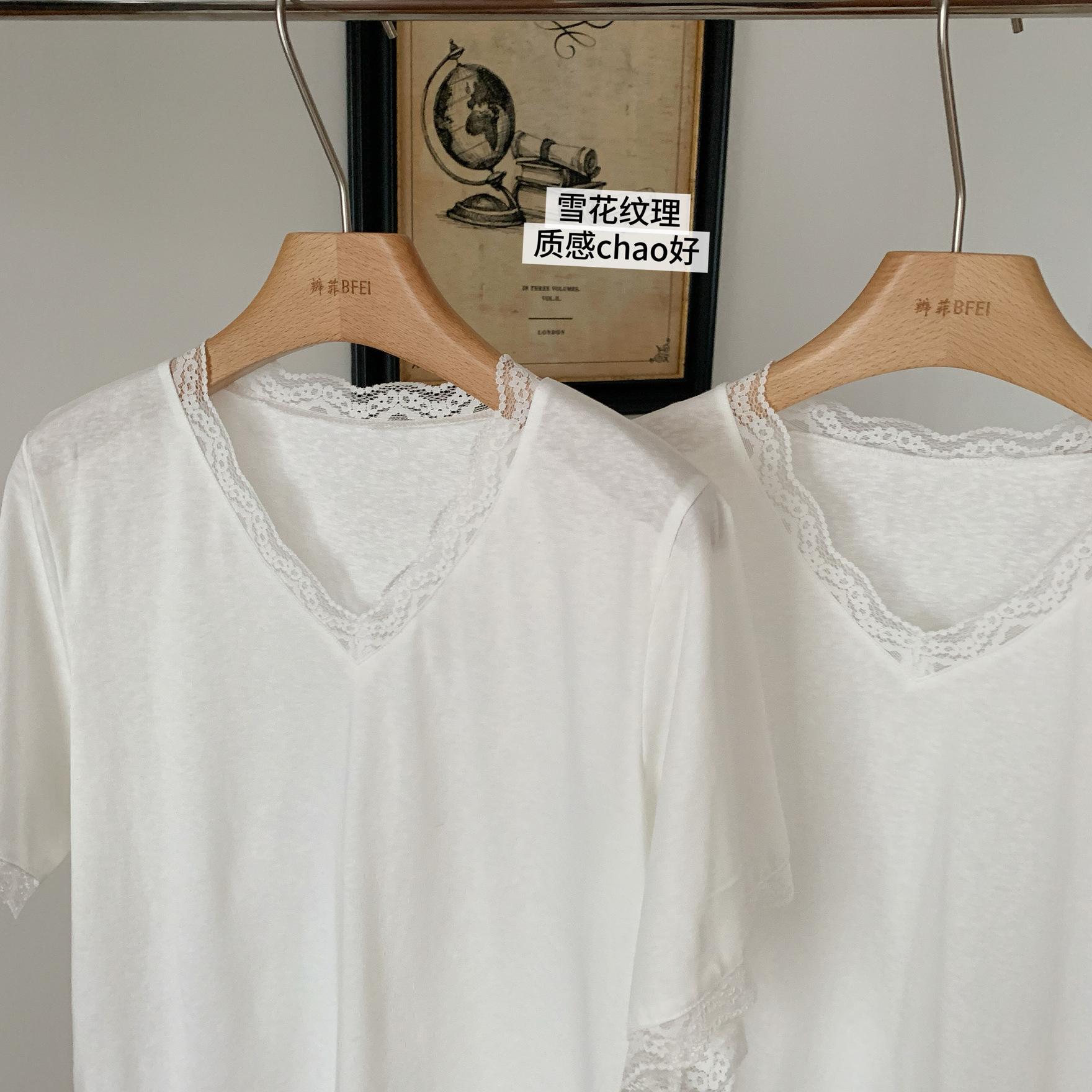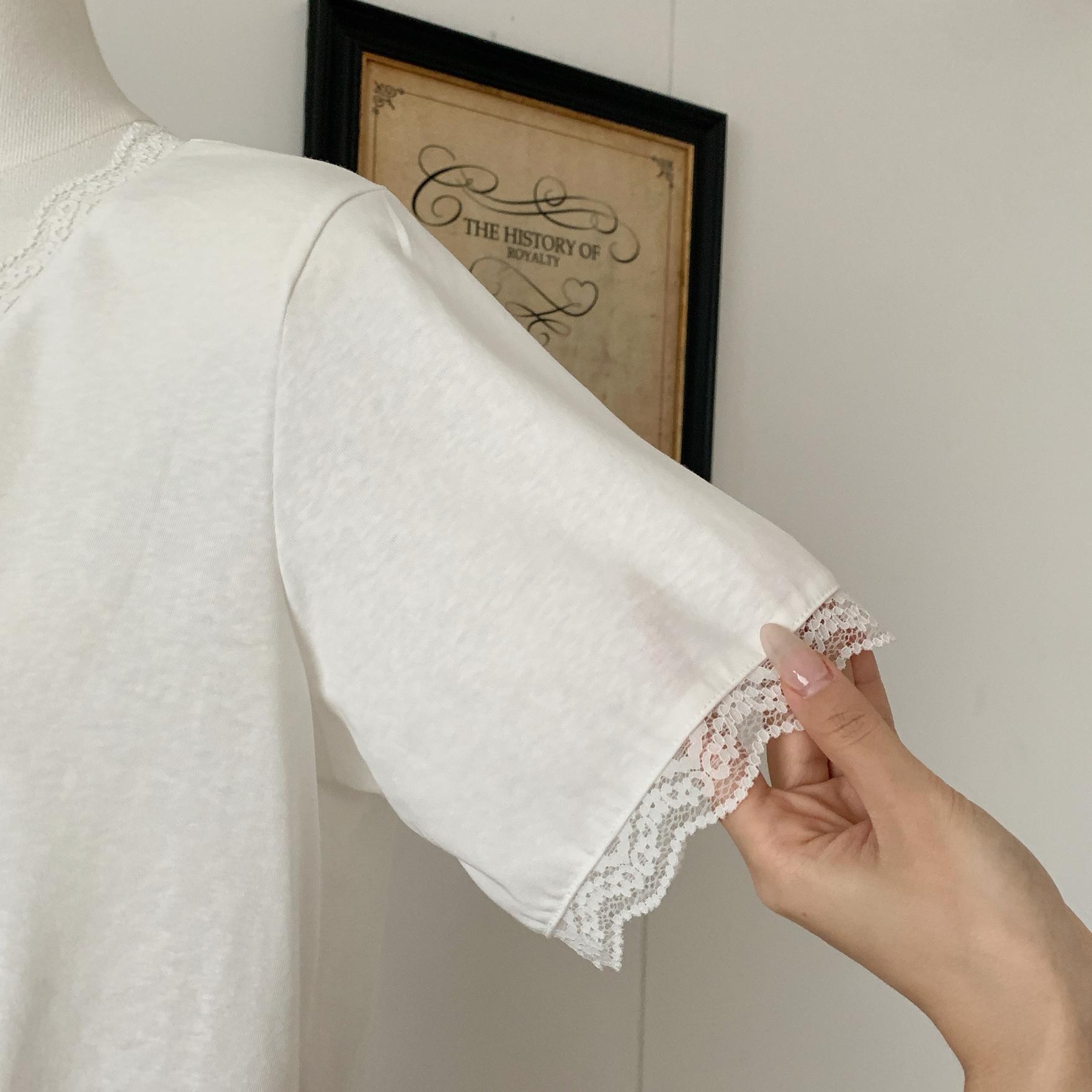 Diseño Sensación Nicho Camiseta Blanca con Costuras de Encaje para Mujer Verano Holgada Adelgazante Manga Corta Cuello en V Top