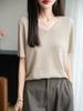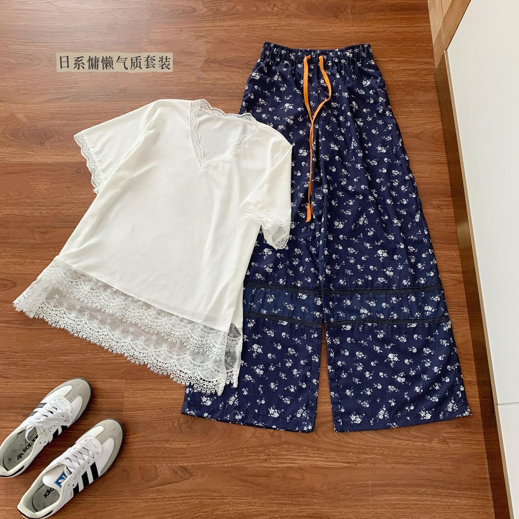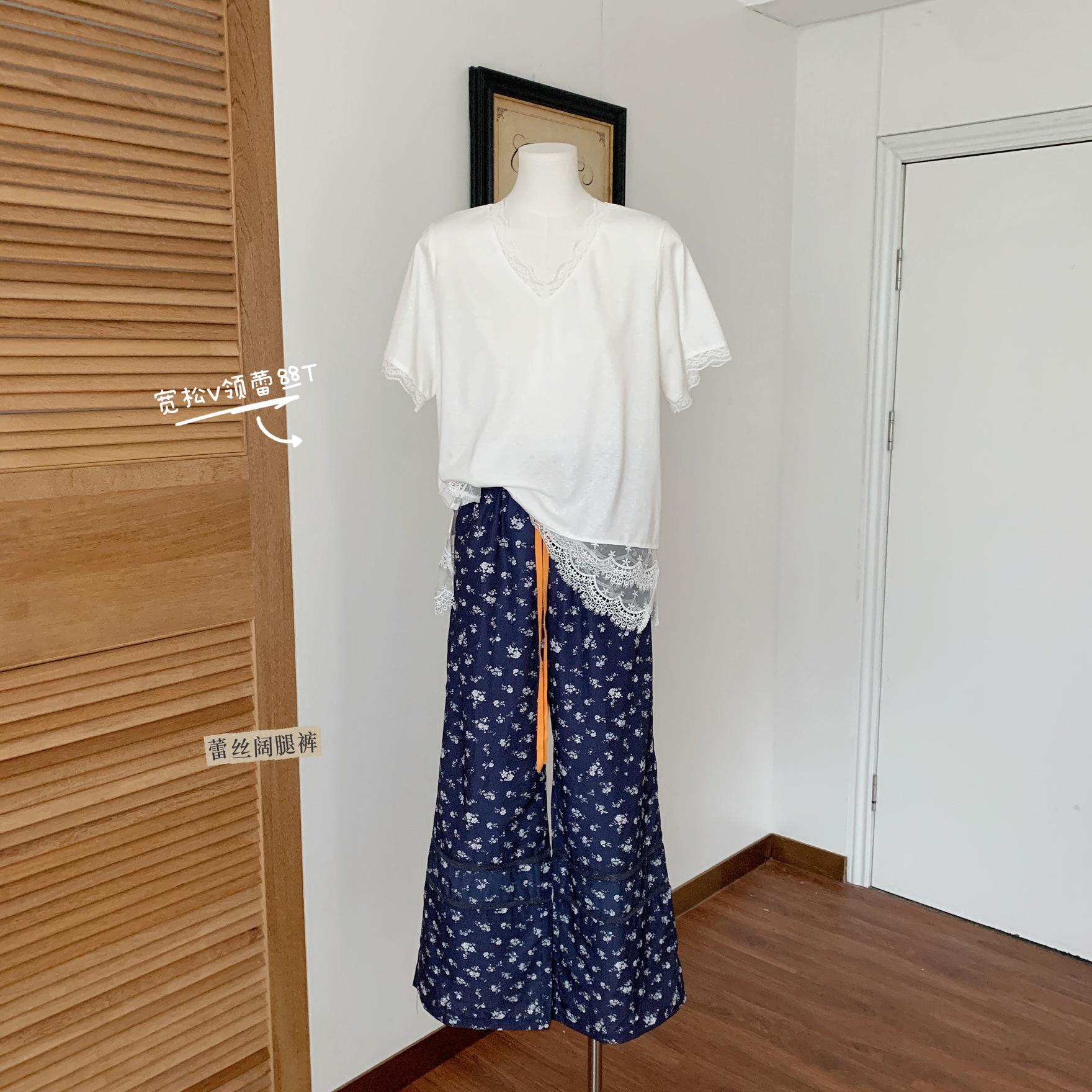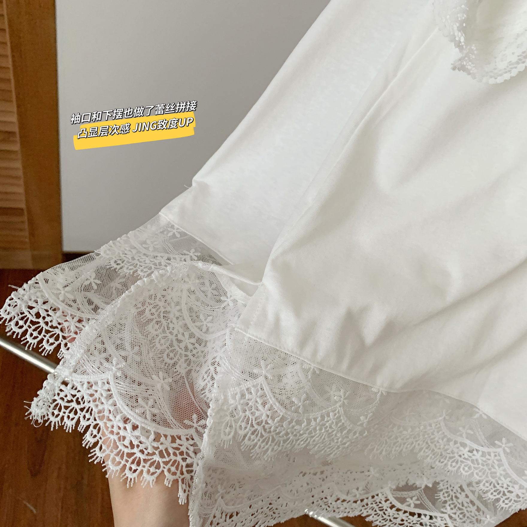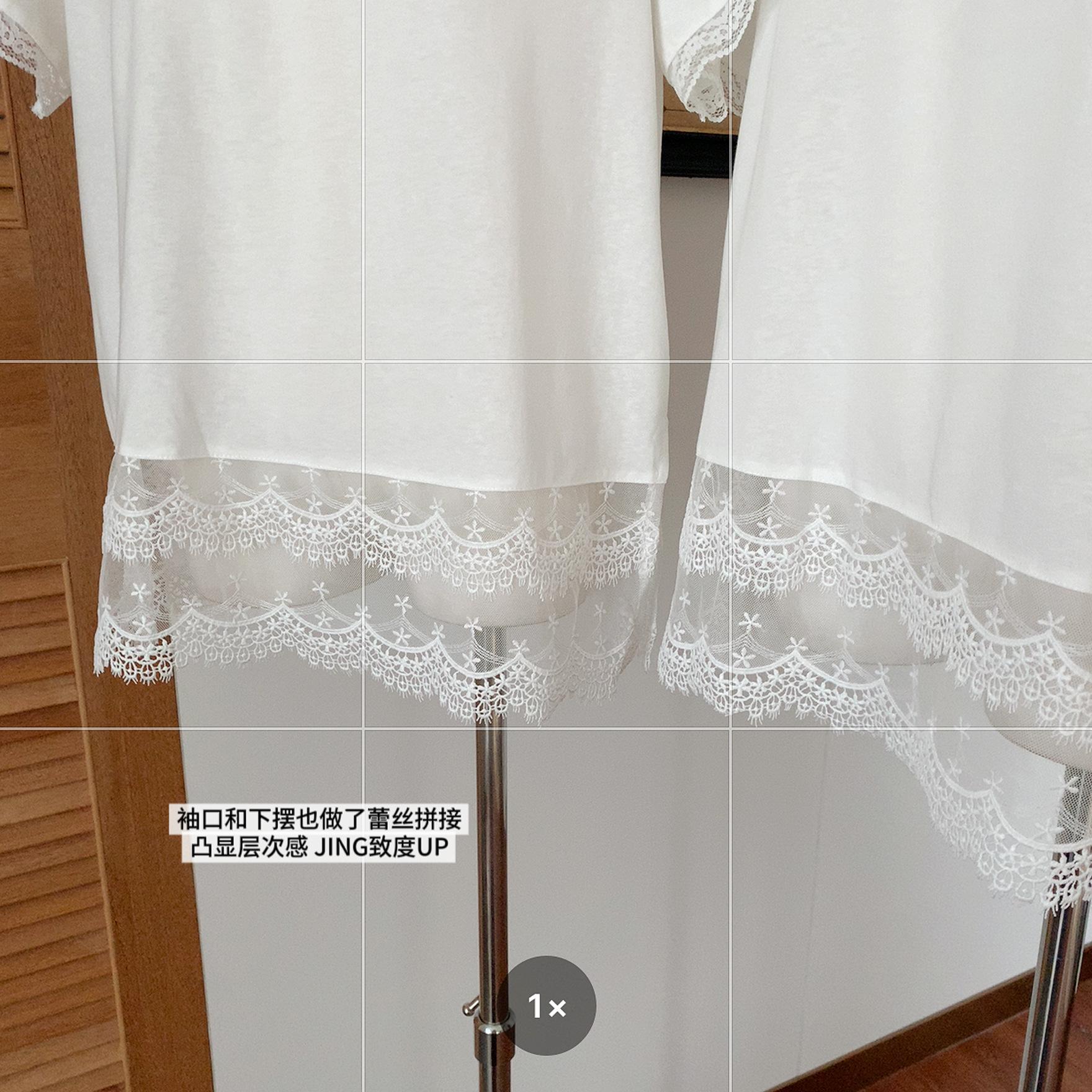 Diseño Sensación Nicho Camiseta Blanca con Costuras de Encaje para Mujer Verano Holgada Adelgazante Manga Corta Cuello en V Top