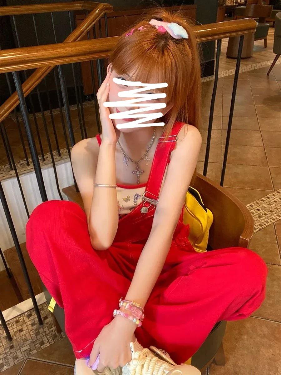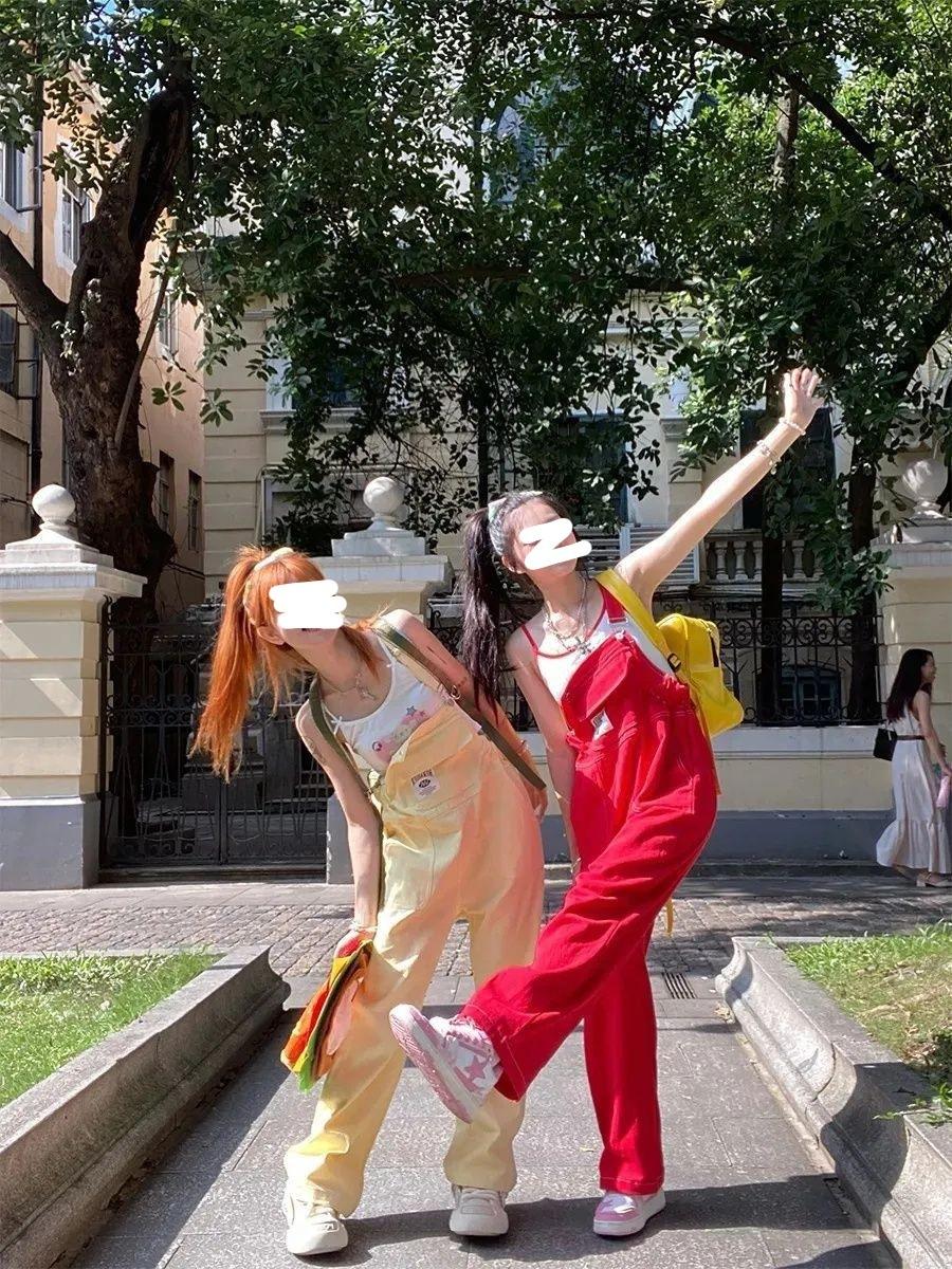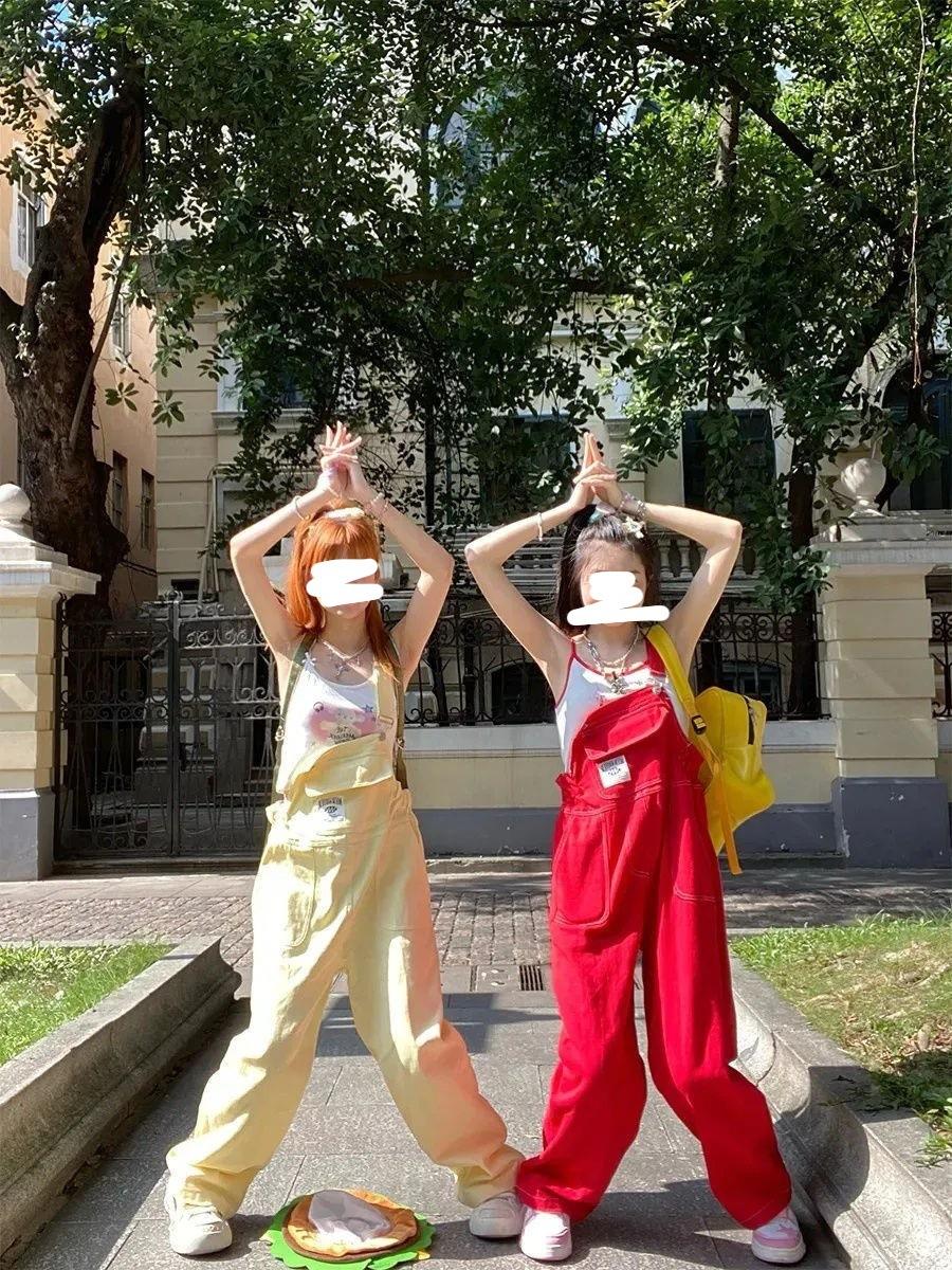 Mono vaquero rojo retro de estilo americano con diseño de dopamina para mujer, pantalones holgados y adelgazantes de verano.