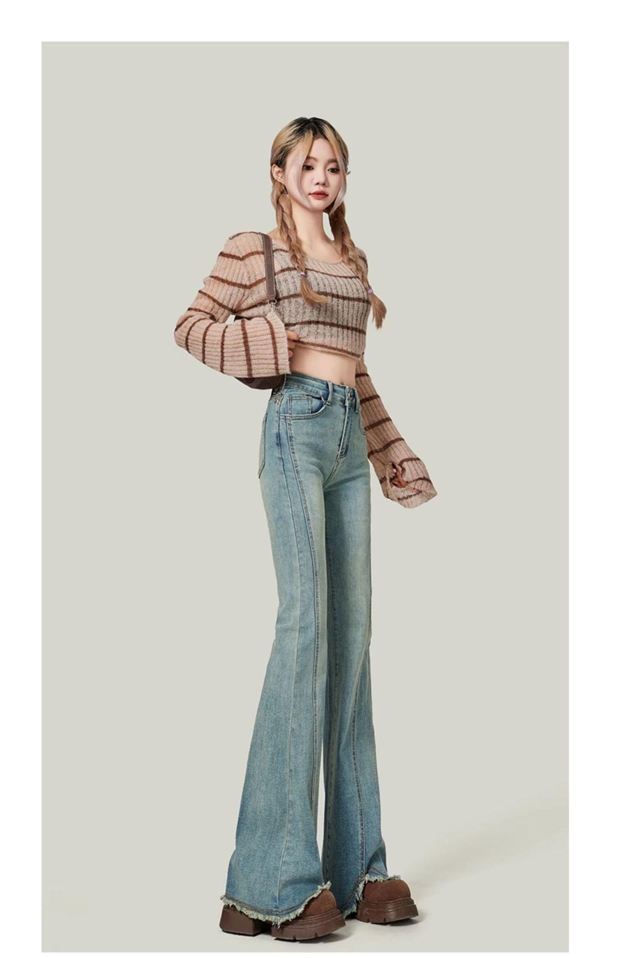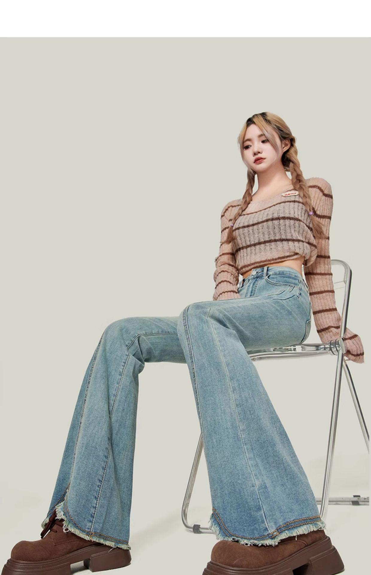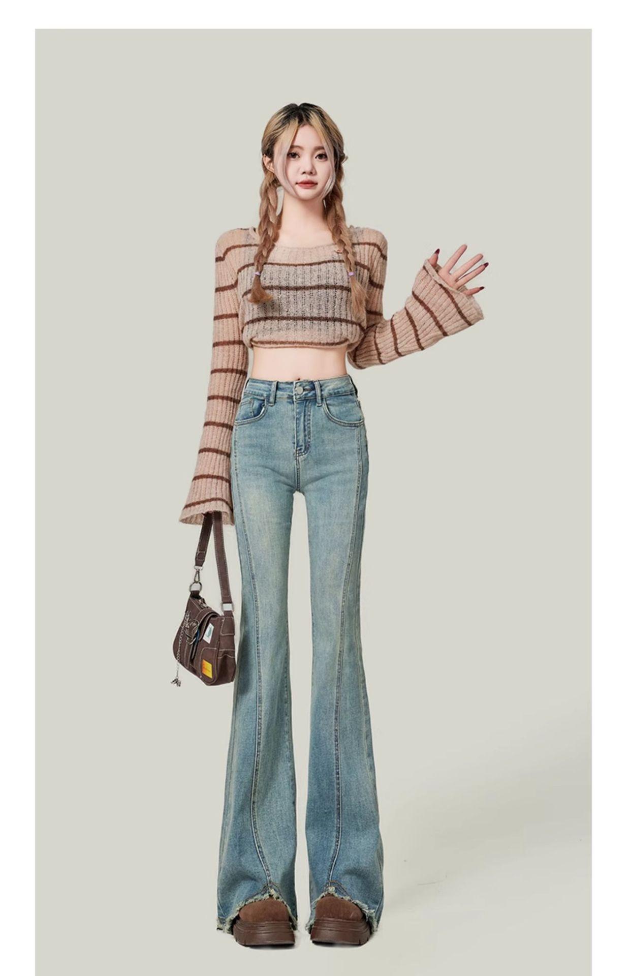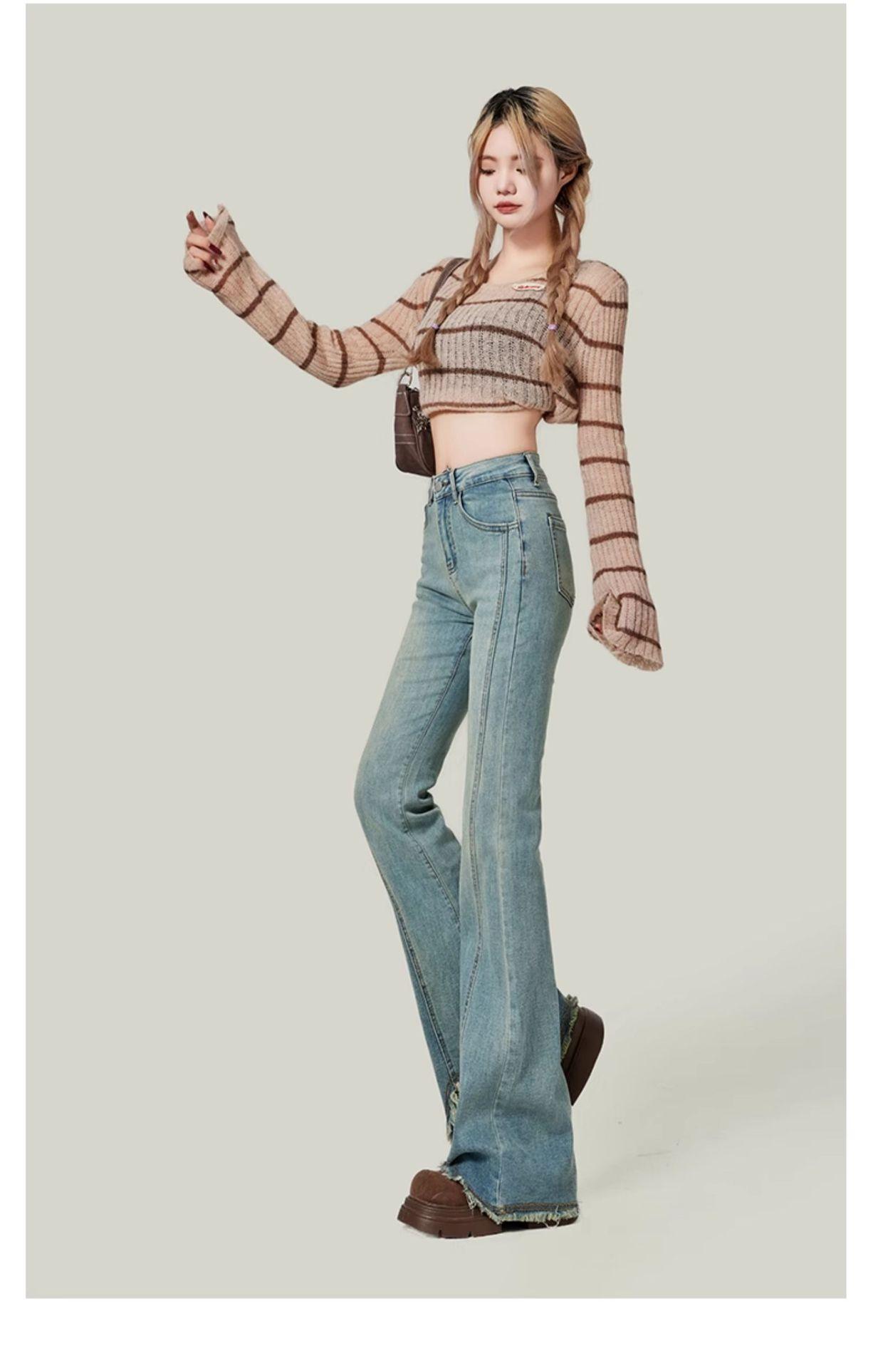 Jeans Microacampanados de Cintura Alta para Mujer Primavera y Verano 2025 Nuevo Estilo Diseño de Borde Crudo Aspecto Adelgazante Elástico Pantalones Herradura