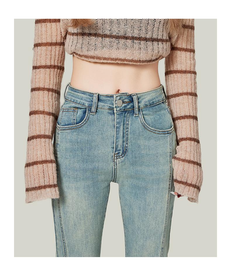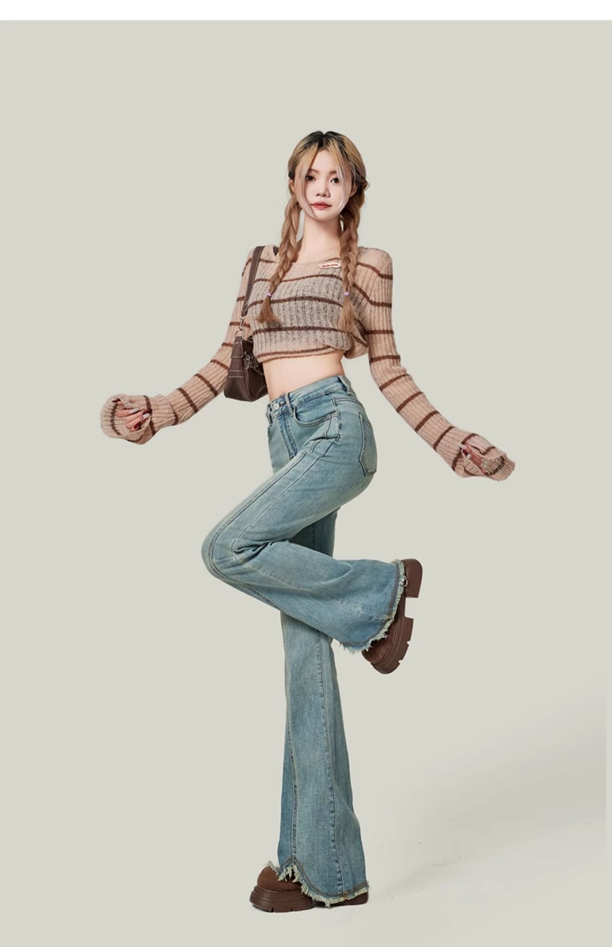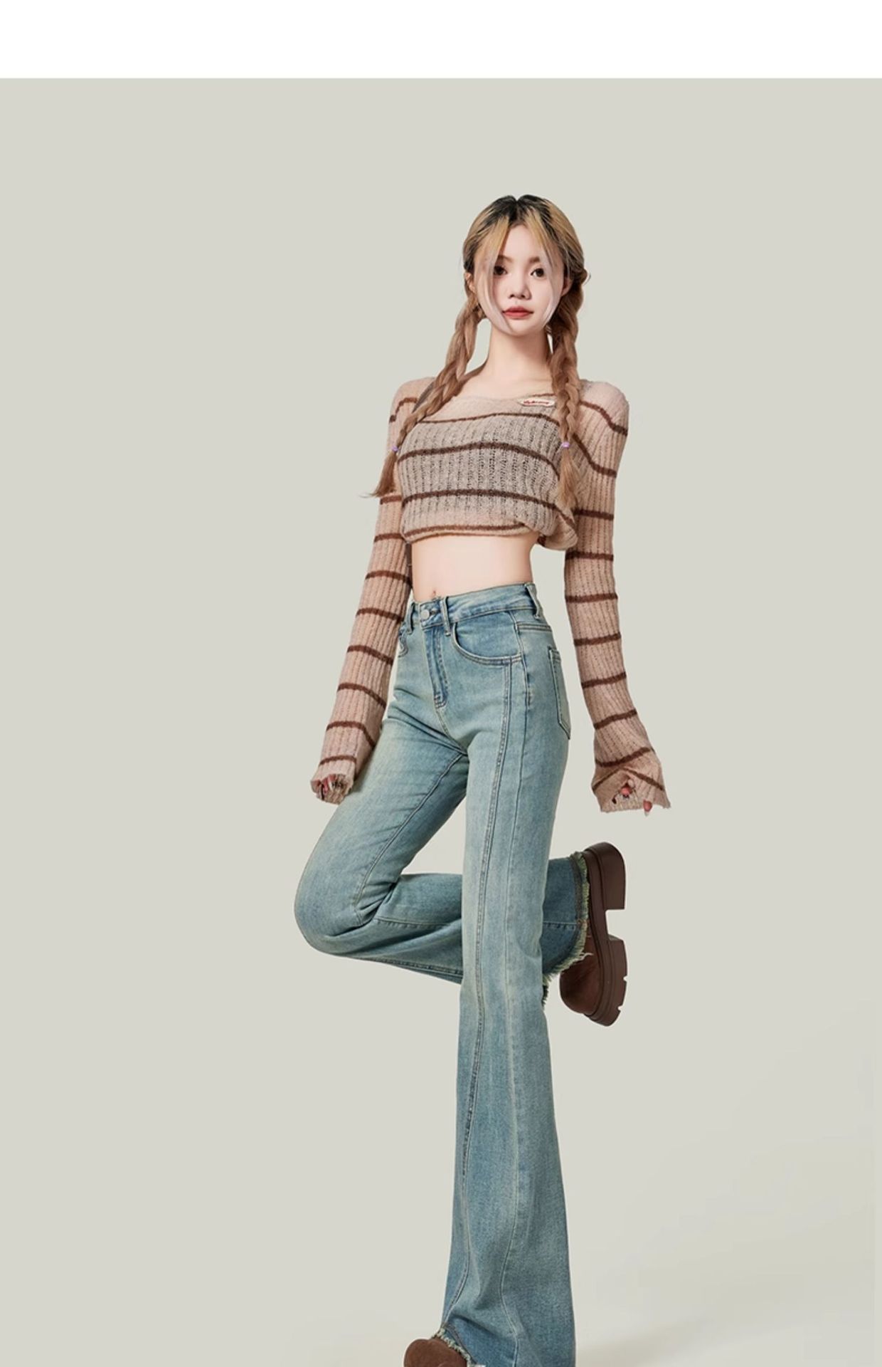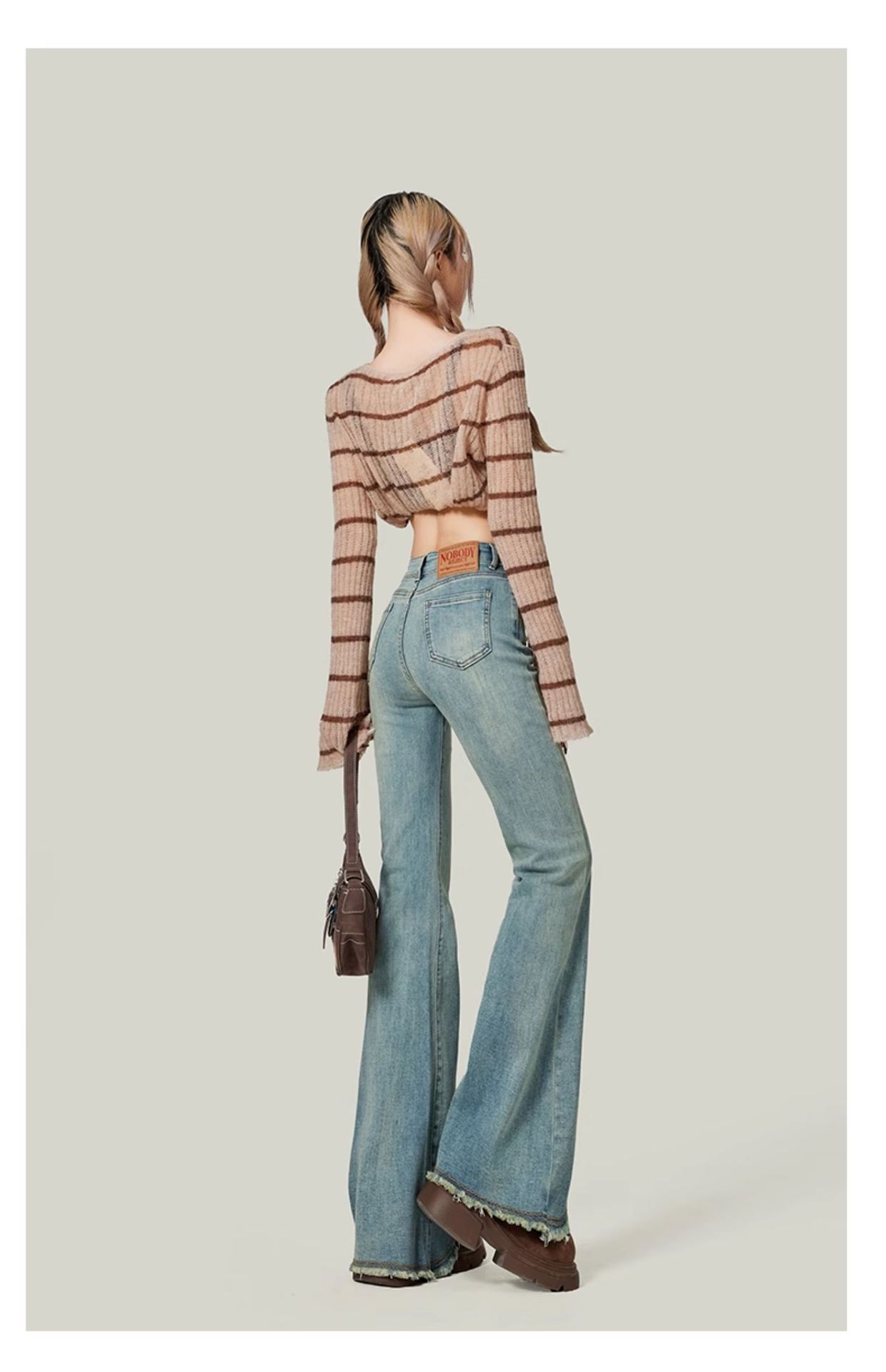Jeans Microacampanados de Cintura Alta para Mujer Primavera y Verano 2025 Nuevo Estilo Diseño de Borde Crudo Aspecto Adelgazante Elástico Pantalones Herradura