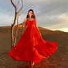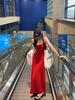 Vestido rojo de tirantes finos para chica sexy y pura, para mujer, verano, vacaciones junto al mar, temperamento, cintura adelgazante, falda línea A, vestido largo