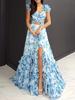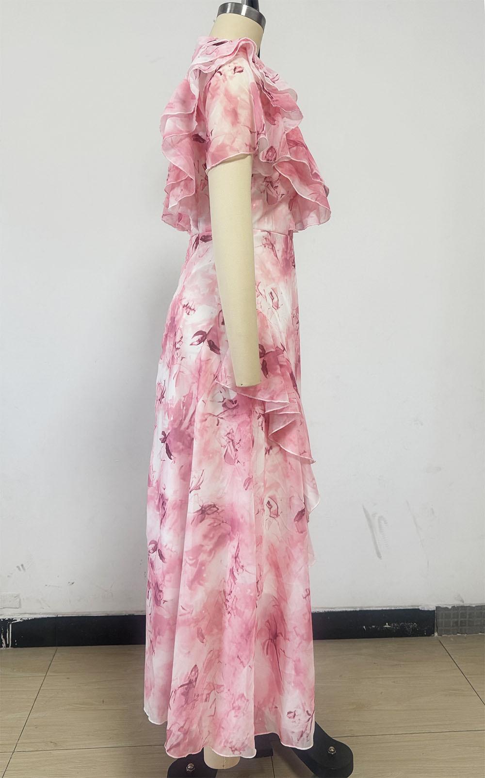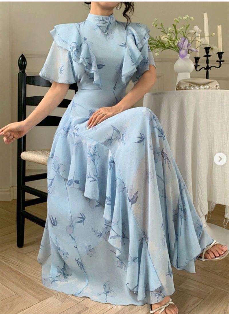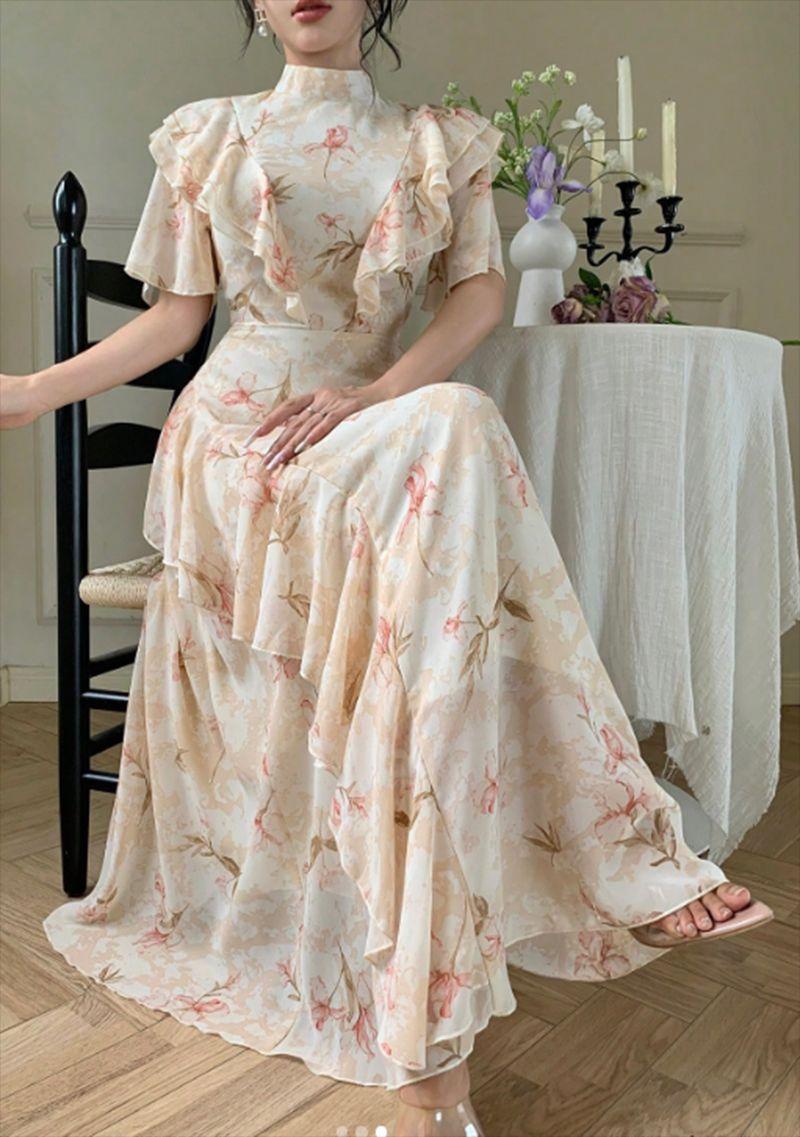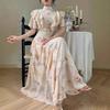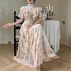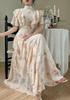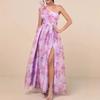 2025 Nuevo Primavera y Verano Fuera del Hombro Moda Europea y Americana Gasa Estampado Hada Largo Elegante Vestido de Noche
