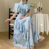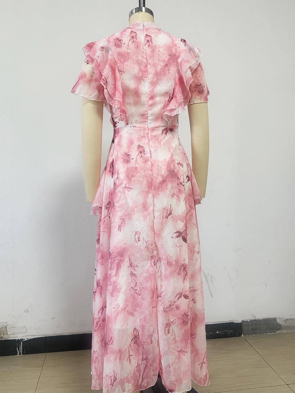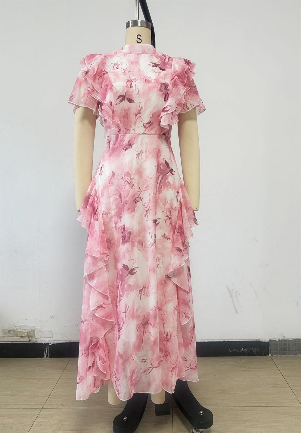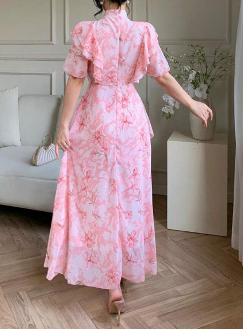 2025 Nuevo Primavera y Verano Fuera del Hombro Moda Europea y Americana Gasa Estampado Hada Largo Elegante Vestido de Noche