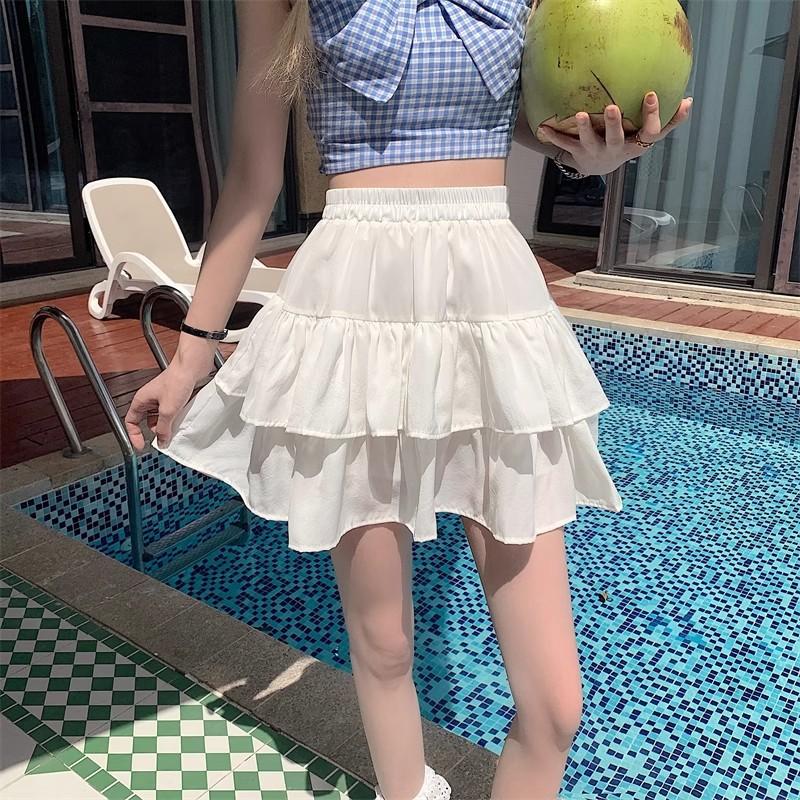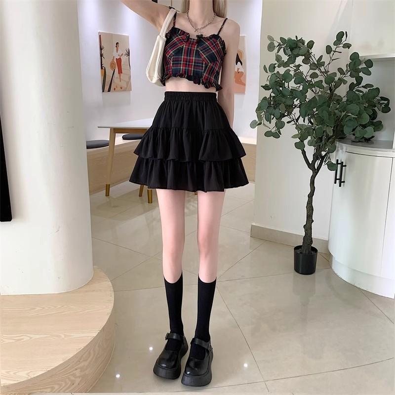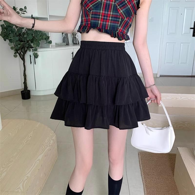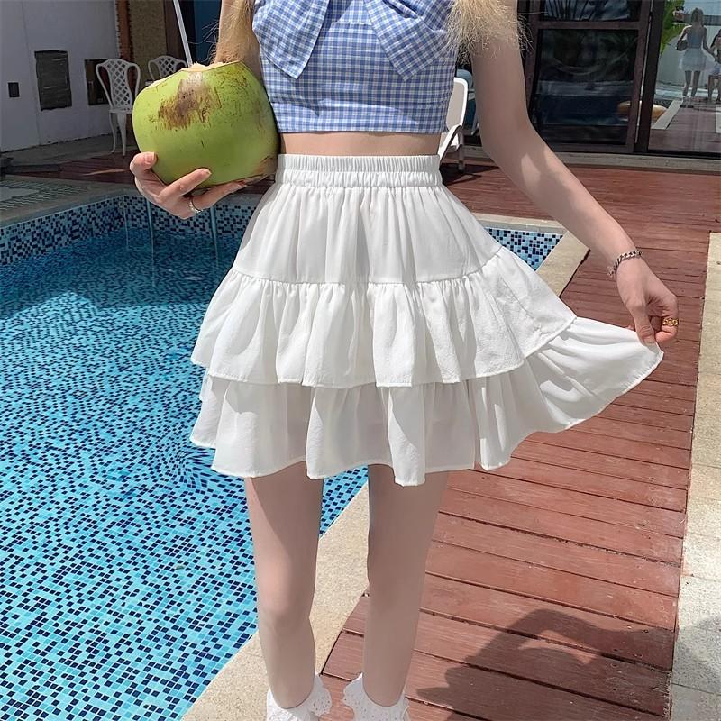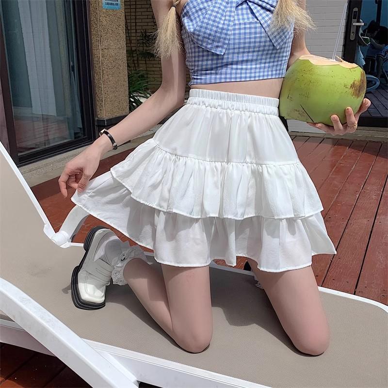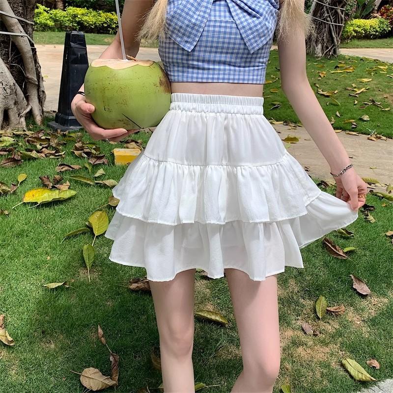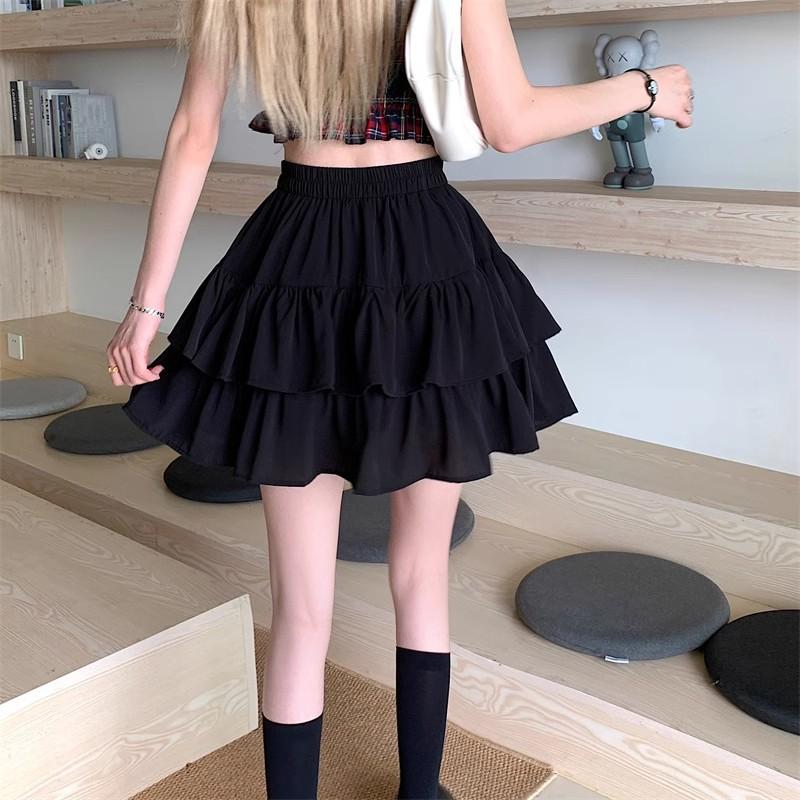 Falda de Pastel de Princesa con Volantes de Talla Grande para Mujer Primavera y Verano Nuevo Look Adelgazante de Cintura Alta Falda Pequeña Esponjosa A-Line