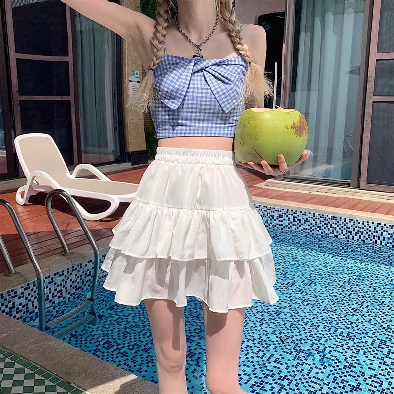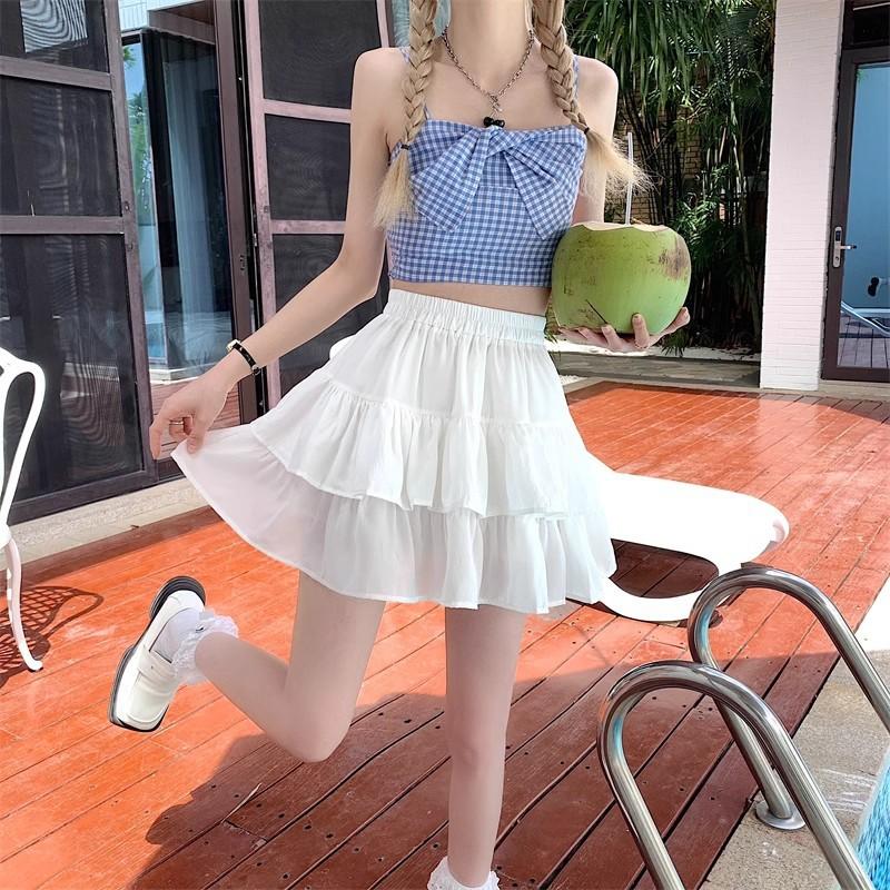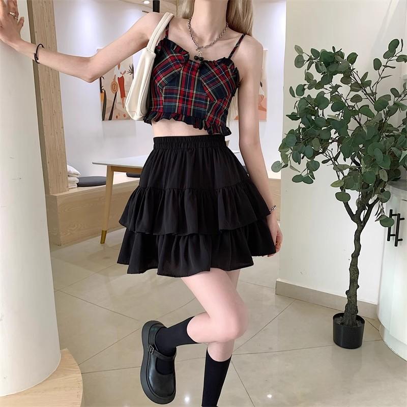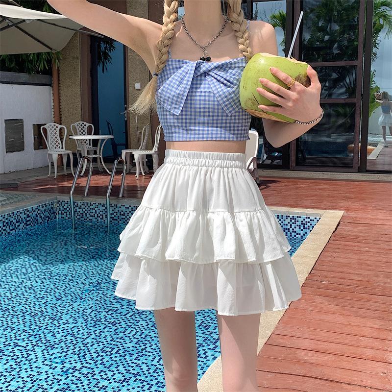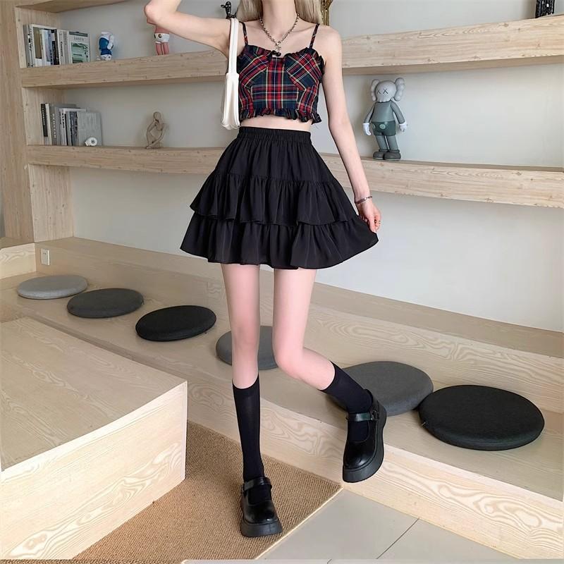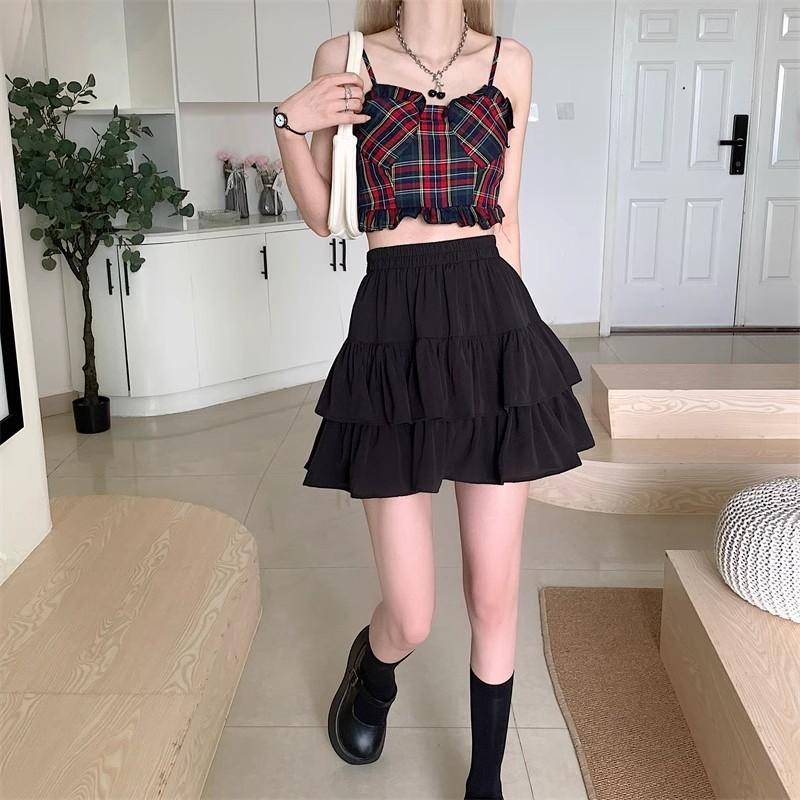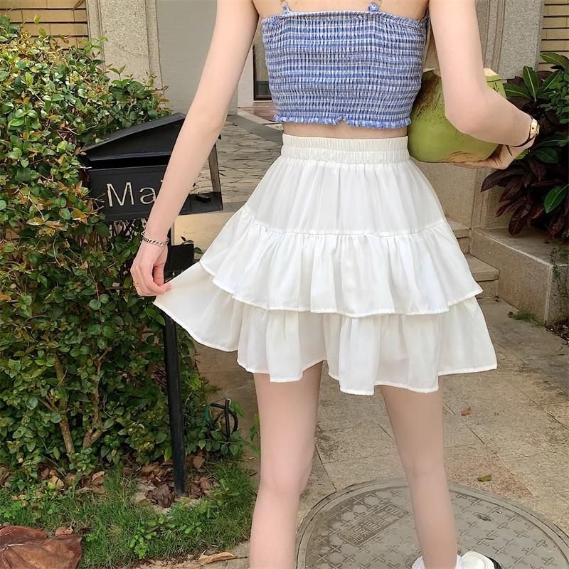 Falda de Pastel de Princesa con Volantes de Talla Grande para Mujer Primavera y Verano Nuevo Look Adelgazante de Cintura Alta Falda Pequeña Esponjosa A-Line