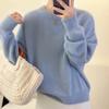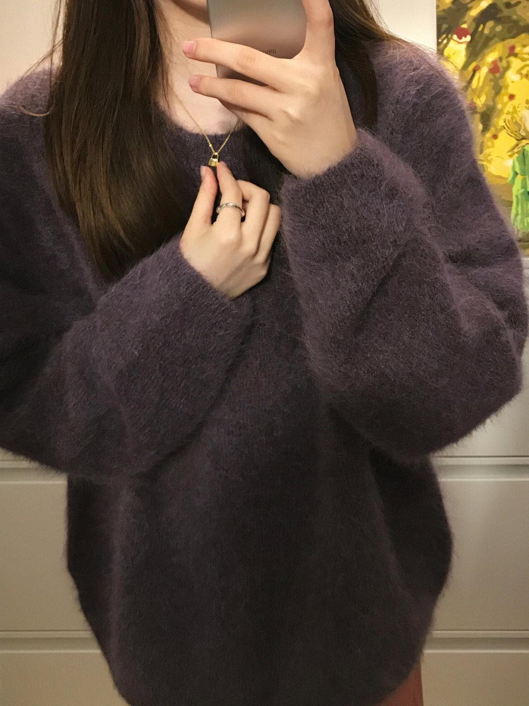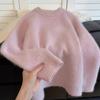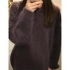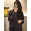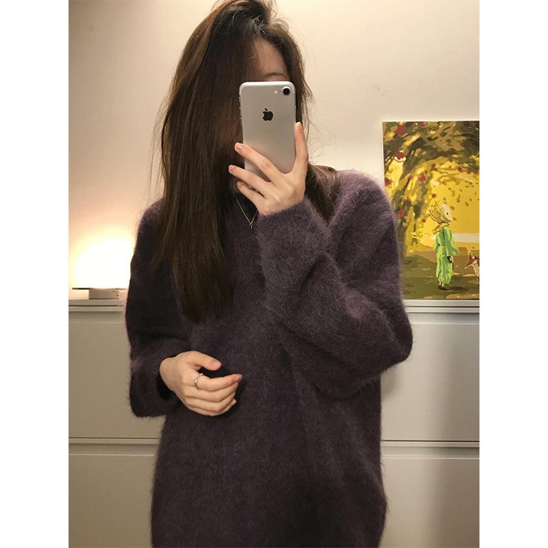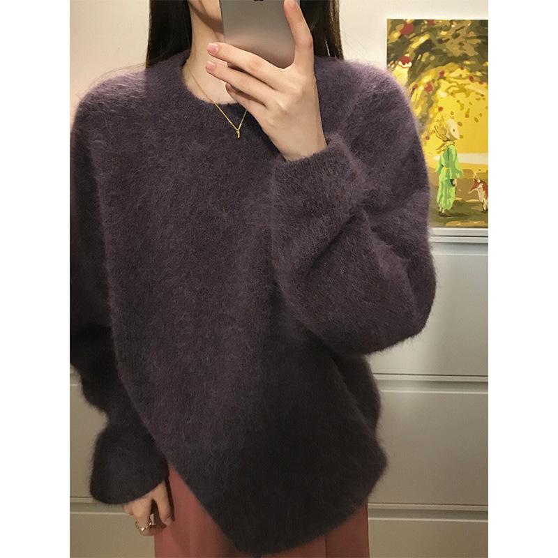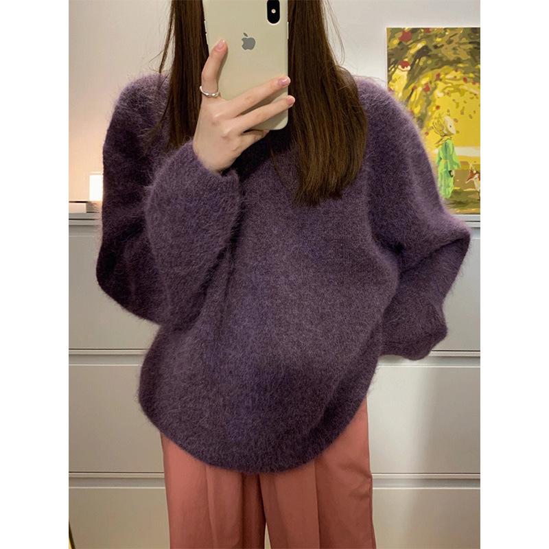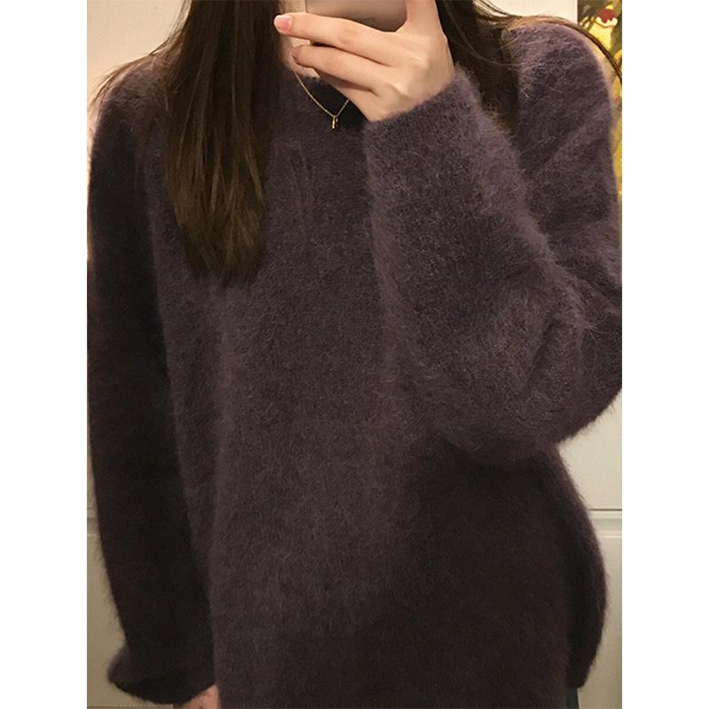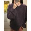 Suéter púrpura suave y ceroso de terciopelo de mapache para mujer, grueso, de invierno, holgado, con cuello redondo, suéter interior
