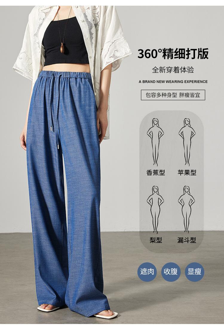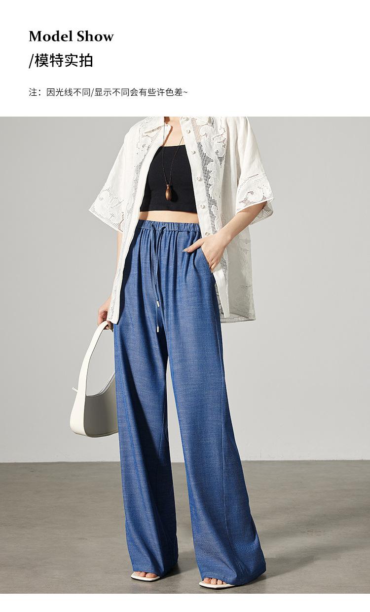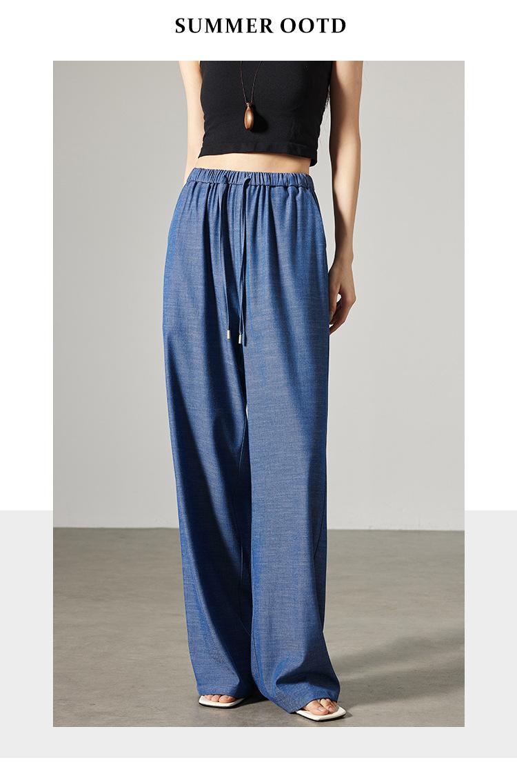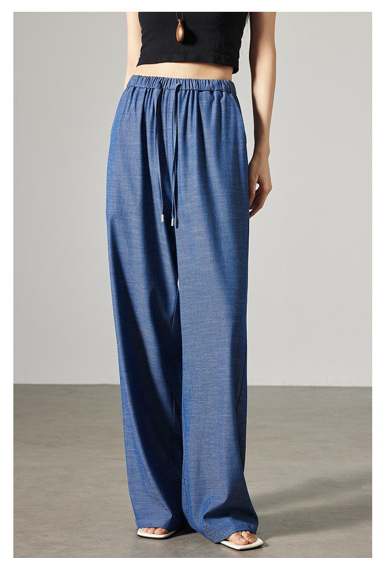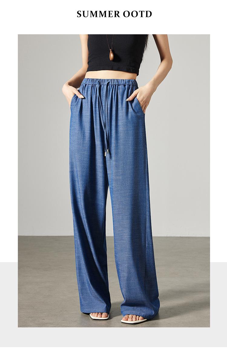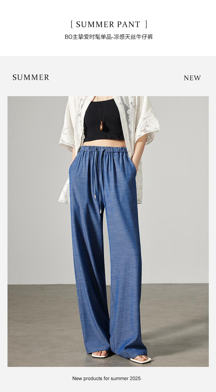 Pantalones de mezclilla Tencel de pierna ancha para mujer Cintura alta 2025 Verano Nuevo Slim Recto Suelto Delgado Transpirable Pantalones casuales