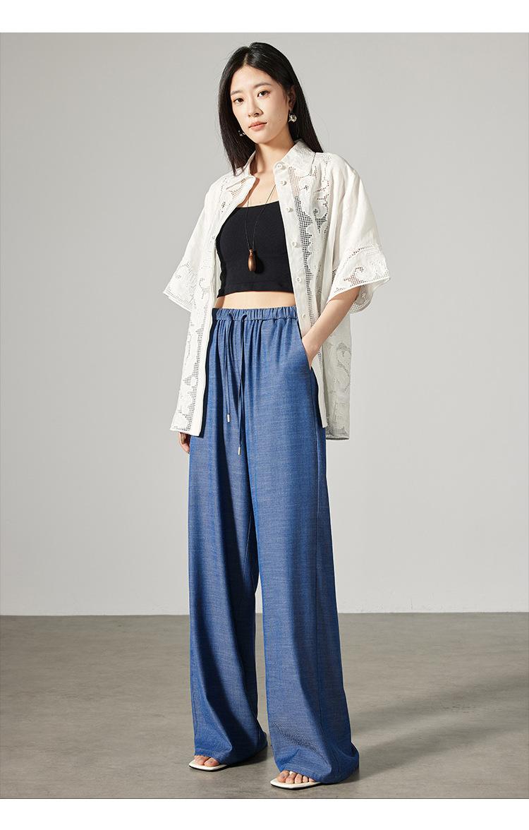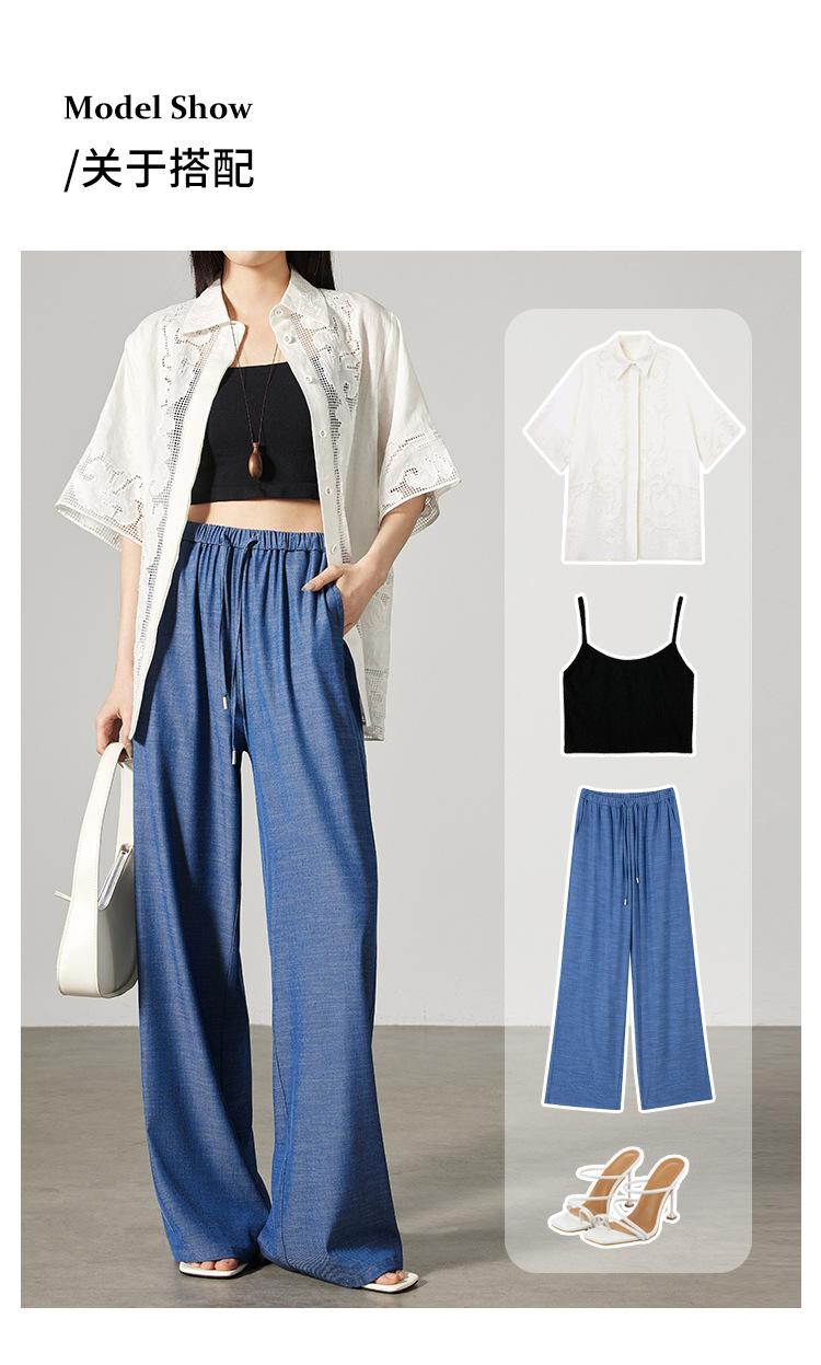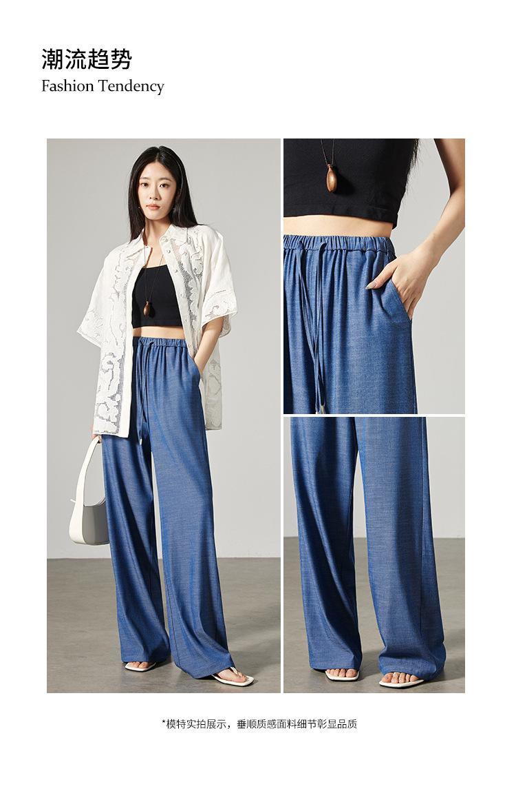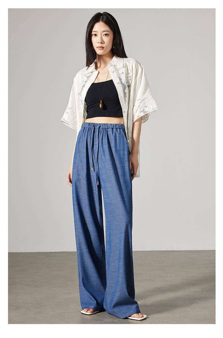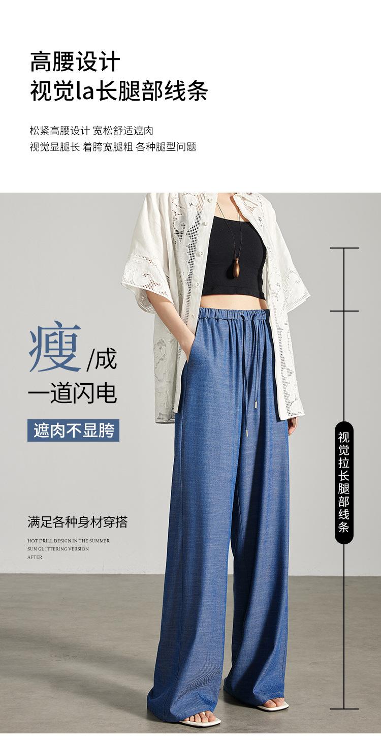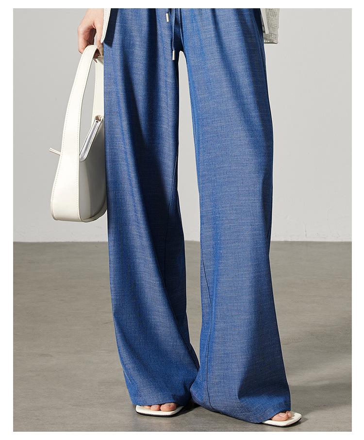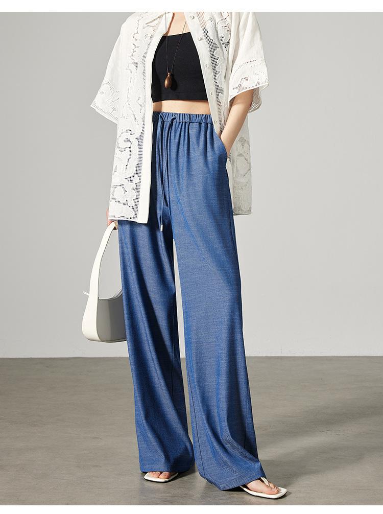 Pantalones de mezclilla Tencel de pierna ancha para mujer Cintura alta 2025 Verano Nuevo Slim Recto Suelto Delgado Transpirable Pantalones casuales