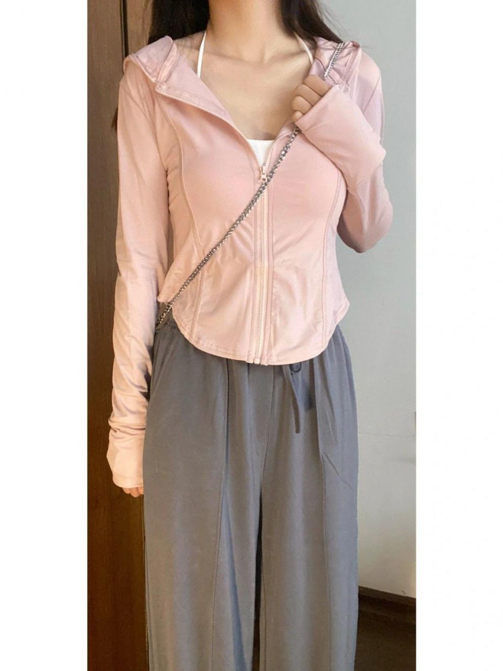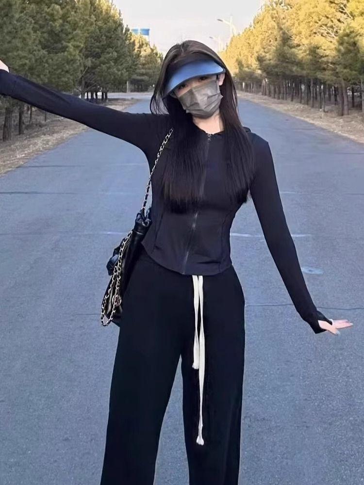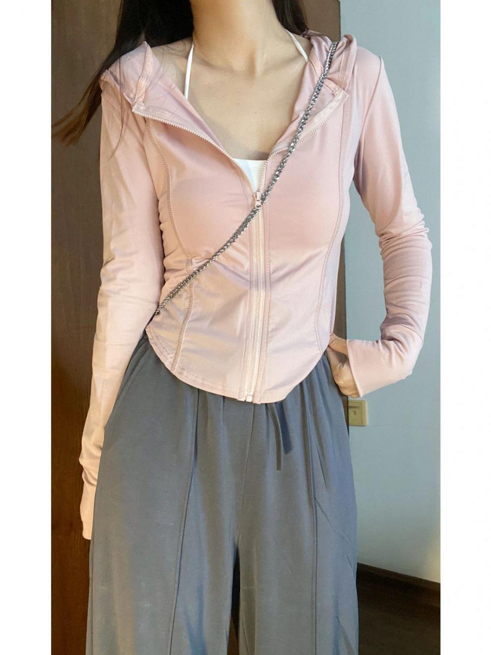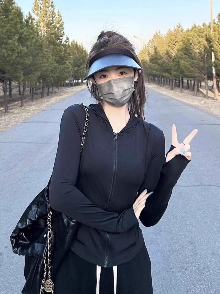 2024 Nuevo Top de Yoga Negro Ajuste Slim Ropa de Protección Solar para Mujer Verano Protección UV Chaqueta Fina Transpirable de Seda Helada