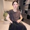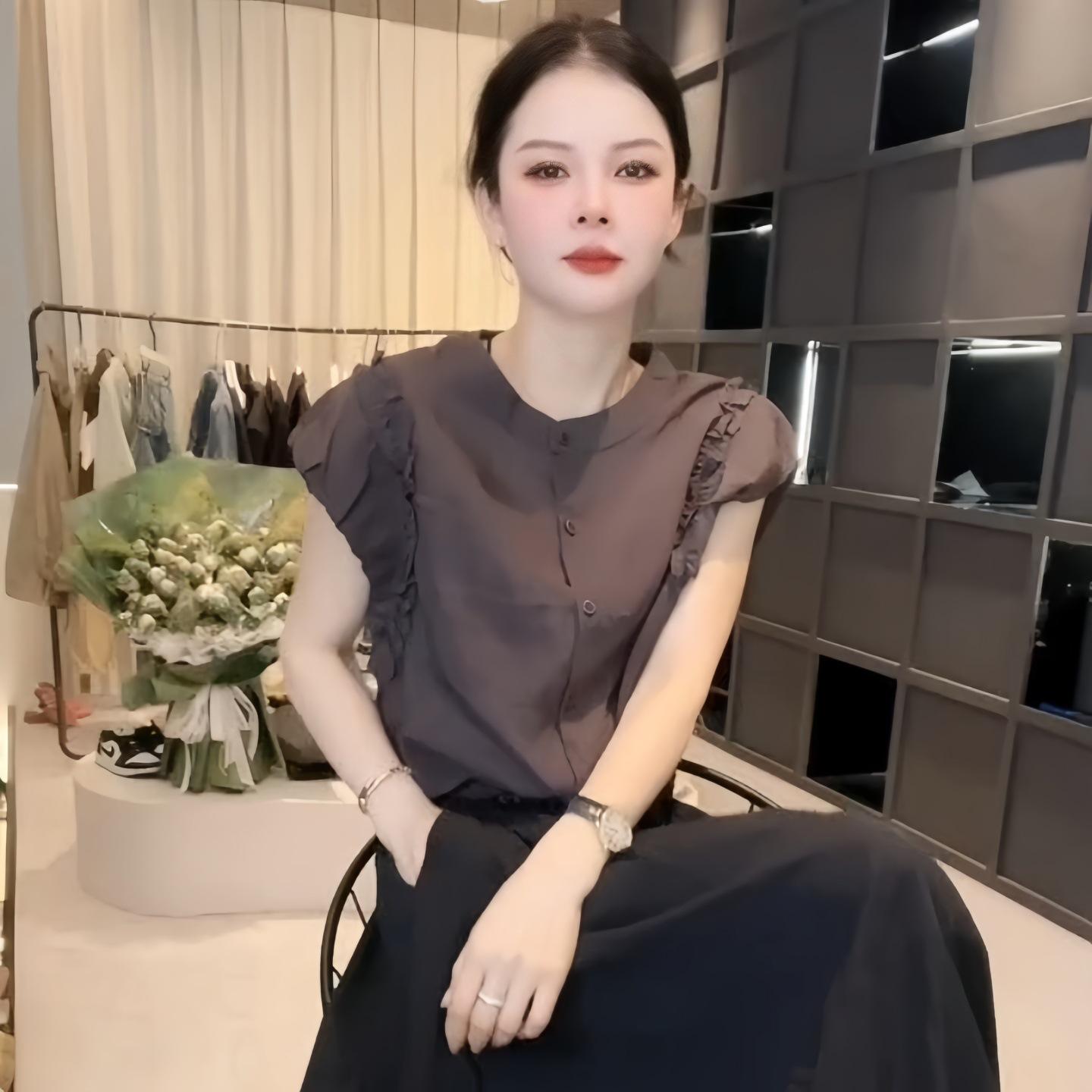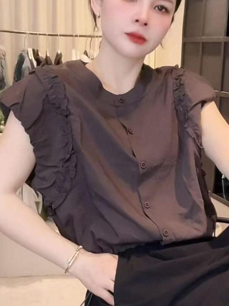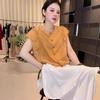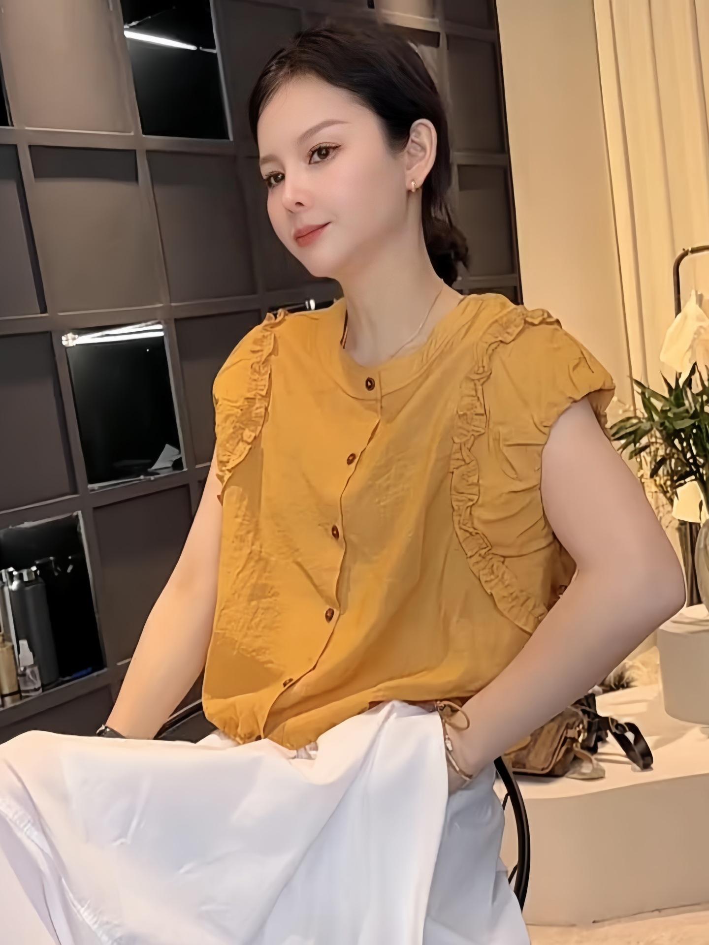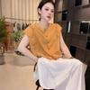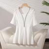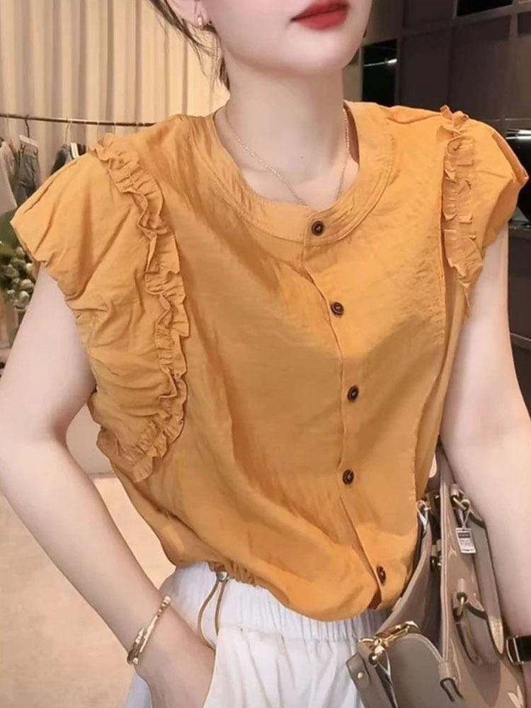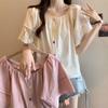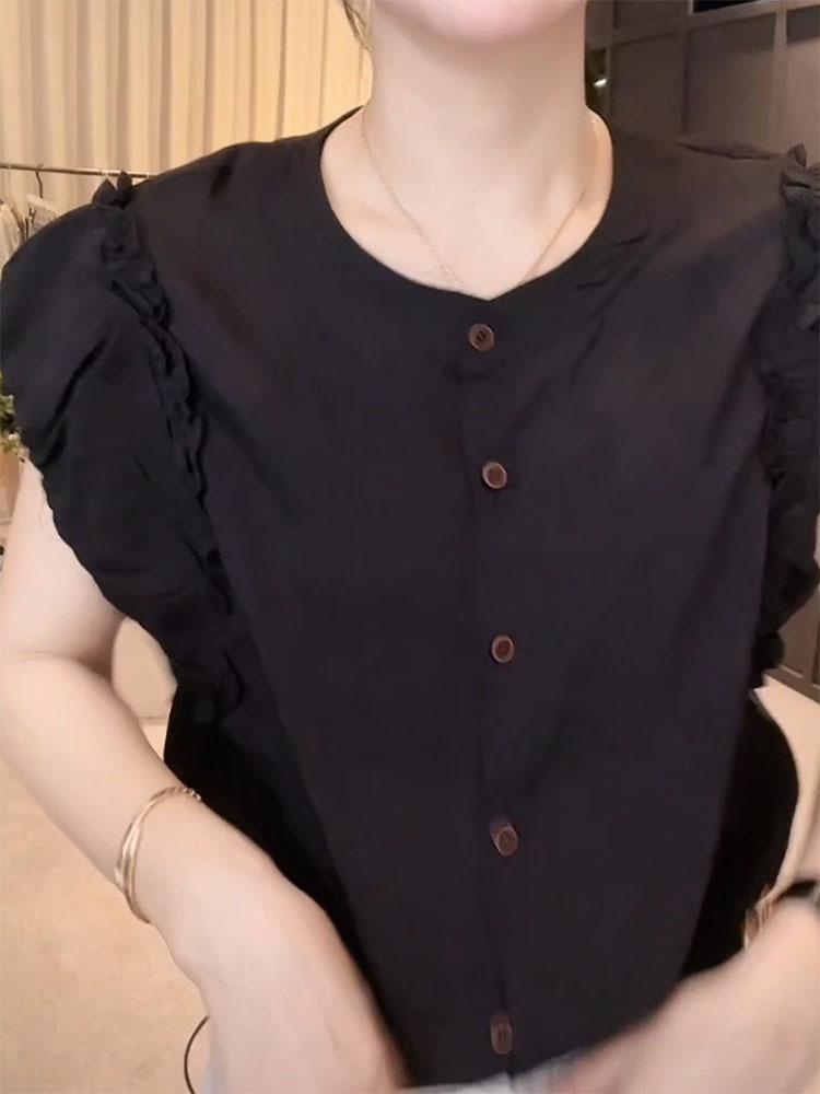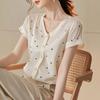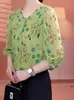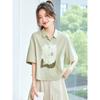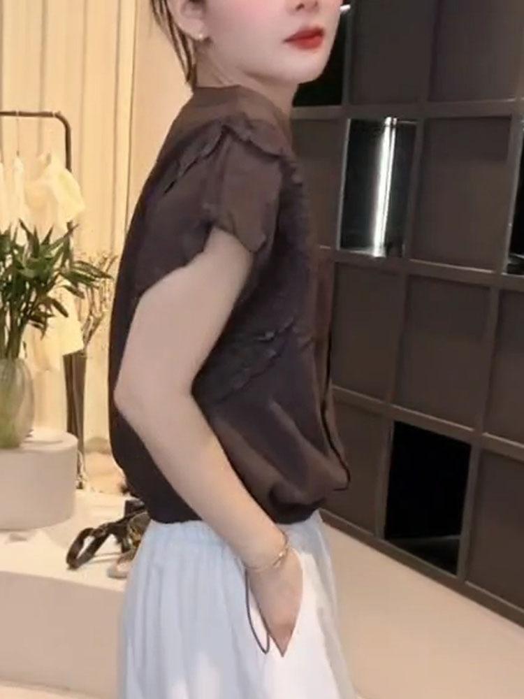 Camisa de Moda de Manga Corta para Mujer, Verano Nuevo Elegante Top Adelgazante Reductor de Edad, Camisa Versátil Casual Holgada Petite