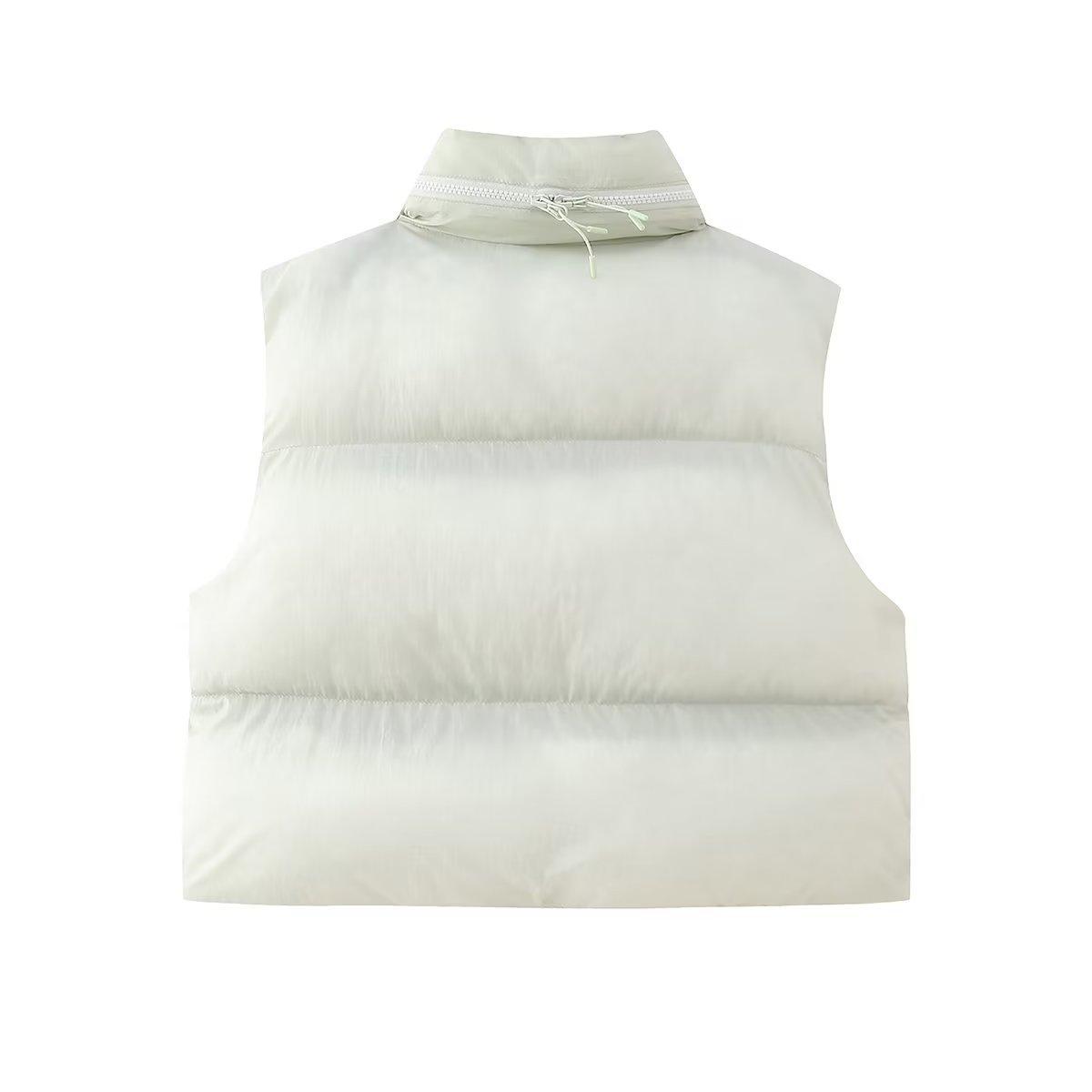 Venta al por mayor transfronteriza europea y americana 2023 otoño nuevo chaleco acolchado de algodón con cremallera engrosado sin mangas con cuello alto para mujer
