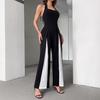 Mono Cami de Textura Primavera Verano Amazon Moda Europea y Americana Casual para Mujer Cuello Caído Torcido Body para Mujer