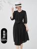 [Seda de Morera 100%] Verano Francés Suave Crespón Fantasma Elegante Cuello Redondo Largo Medio Adelgazante Ropa de Seda