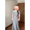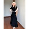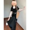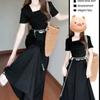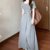 Traje de Moda Estilo Perezoso Verano Nuevo Camiseta Top Cuello Cuadrado Irregular Vestido Midi para Mujer Conjunto de Dos Piezas