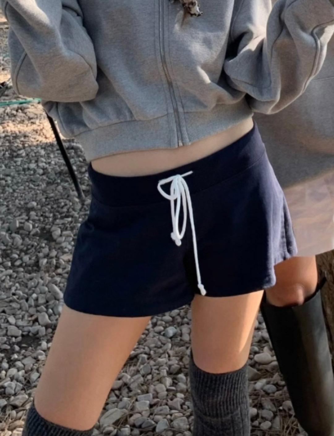 Spot 2025 Verano Nuevo Coreano Dongdaemun Th*Bar*Net Elegante Color Puro Look Adelgazante Shorts con Cordones Hot Pants