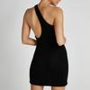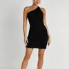 2025 Verano Europeo y Americano Transfronterizo Nuevo Sexy Hottie Espalda Grande Descubierta Hombro Inclinado Color Puro Tejido Falda Corta Cubre Caderas para Mujer Venta al por Mayor