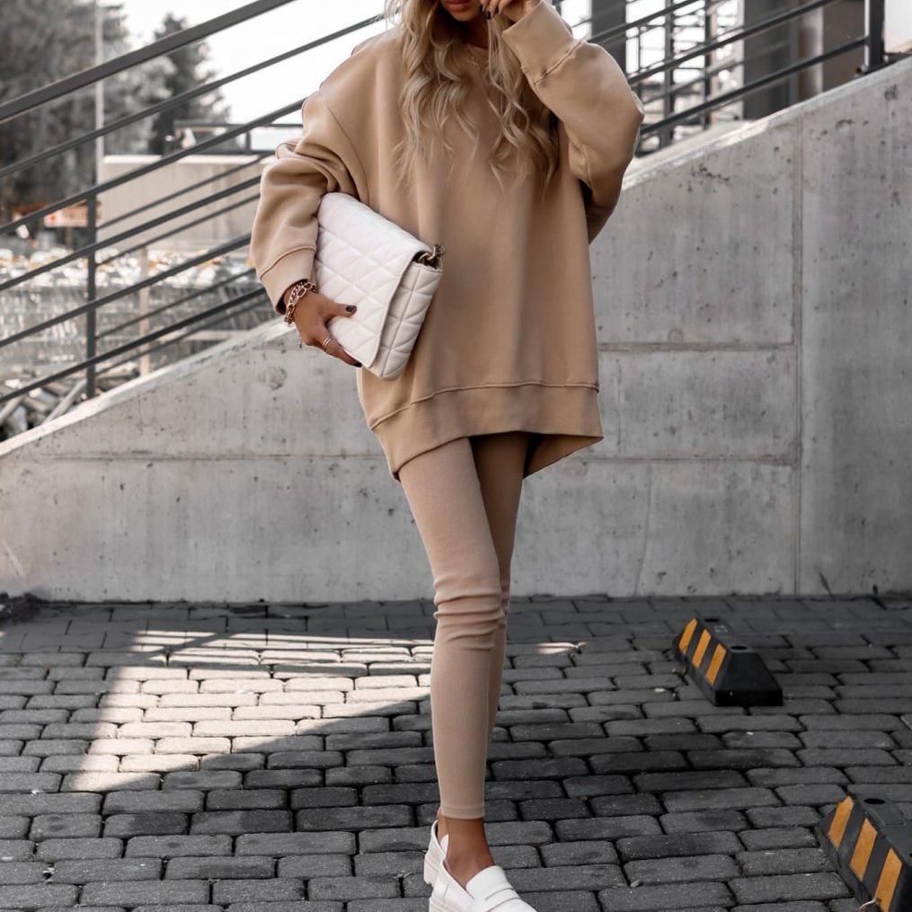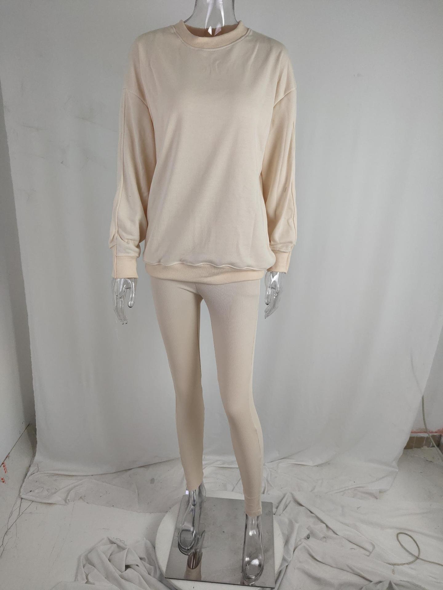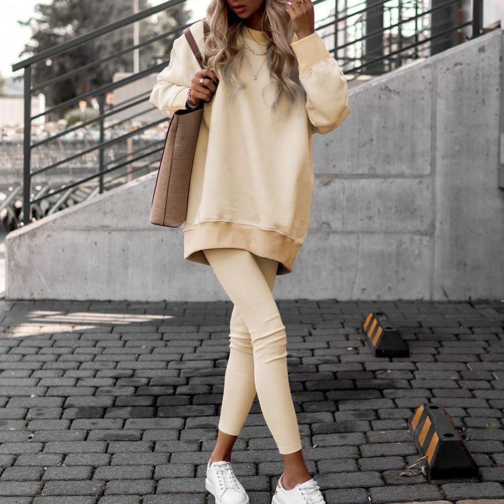 Amazon 2024 primavera suéter casual de manga larga de moda deportiva de cintura alta y cuello redondo holgado para mujer europea y americana