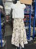 Talla Grande Pequeño Fresco Un Hombro Volantes Top Blanco + Falda A-Línea Estampado Mariposas Cintura Alta Elástica