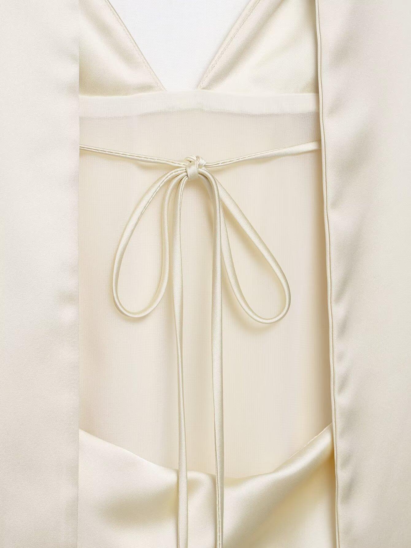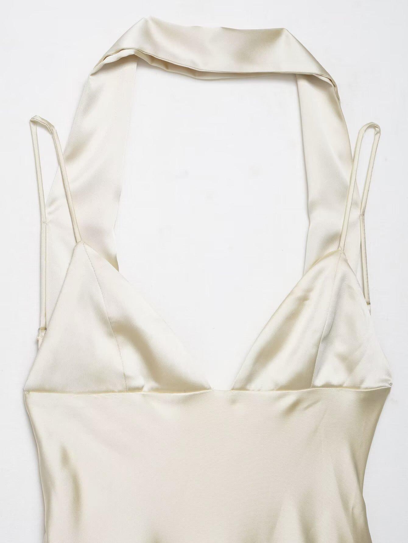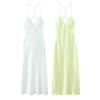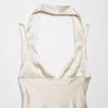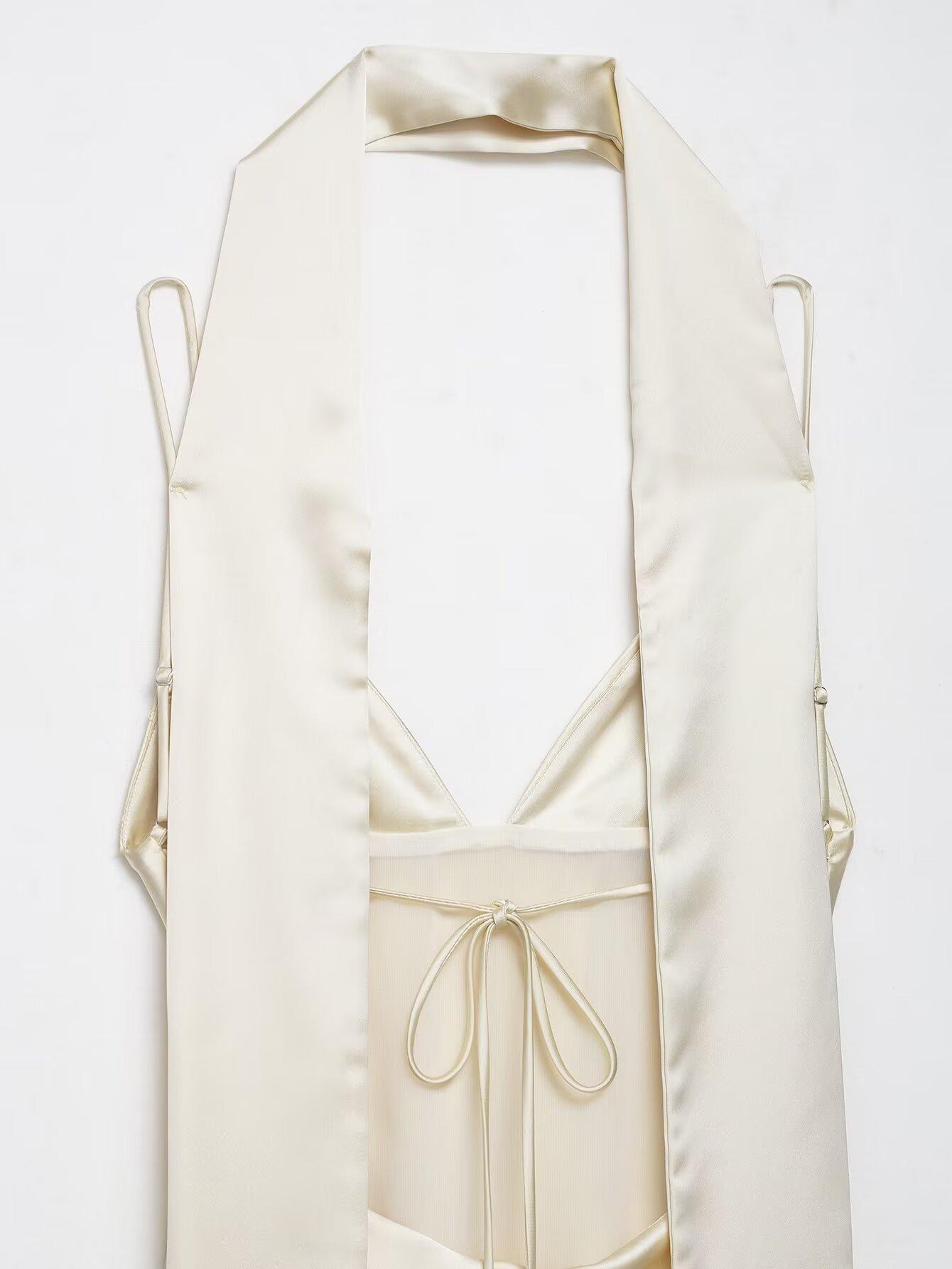 Exportación Transfronteriza Ropa de Mujer 2025 Verano Estilo Europeo y Americano Textura Satén de Seda Vestido con Espalda Descubierta con Cordones Decorado con Bufanda para Mujer A36539