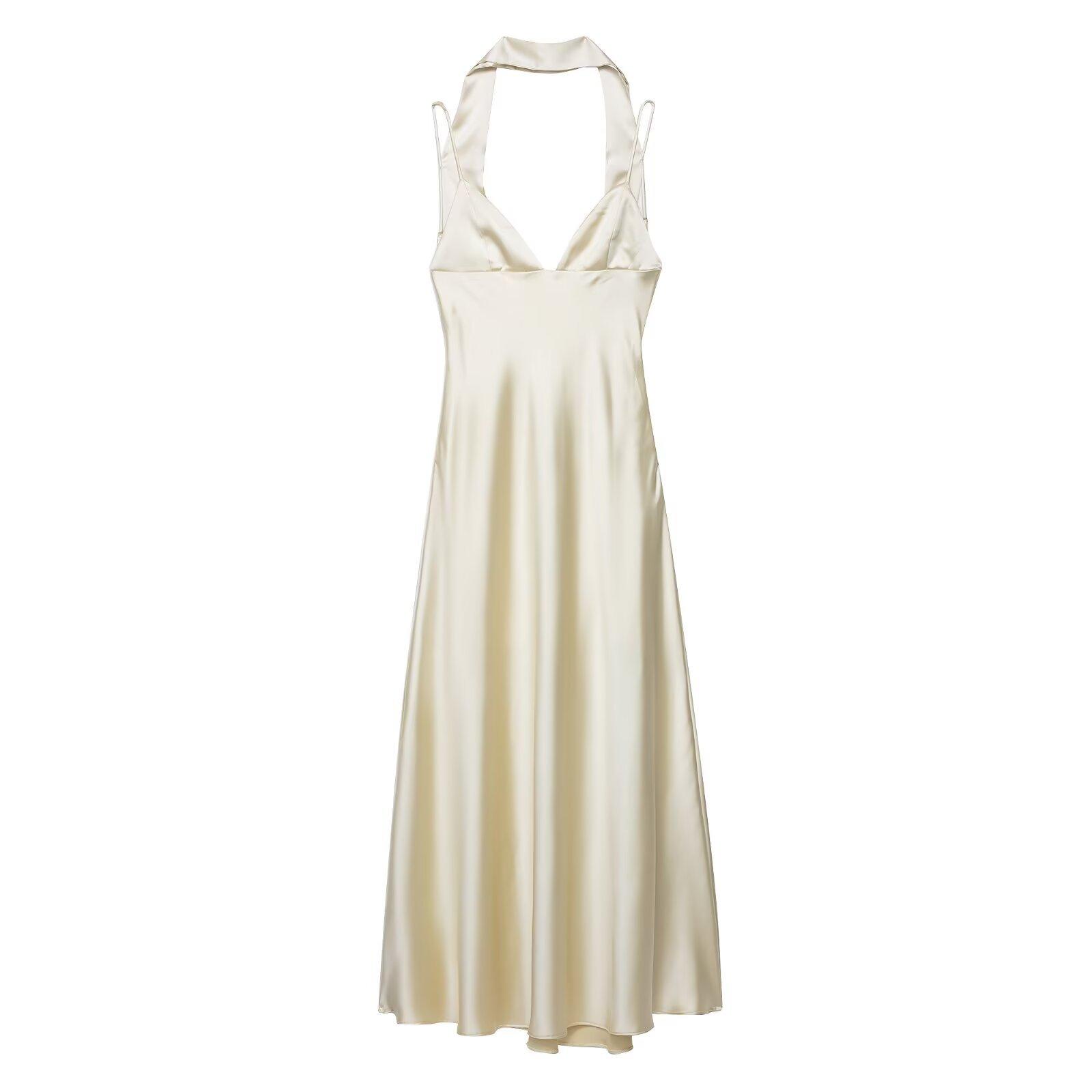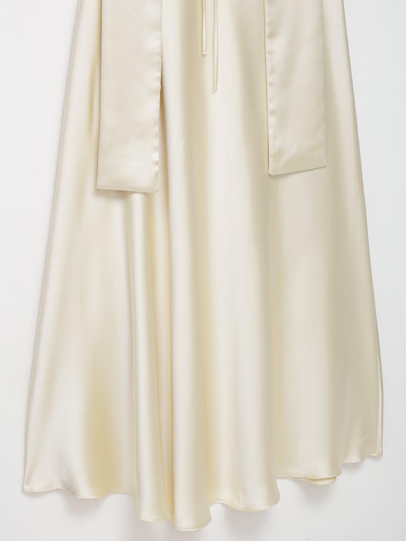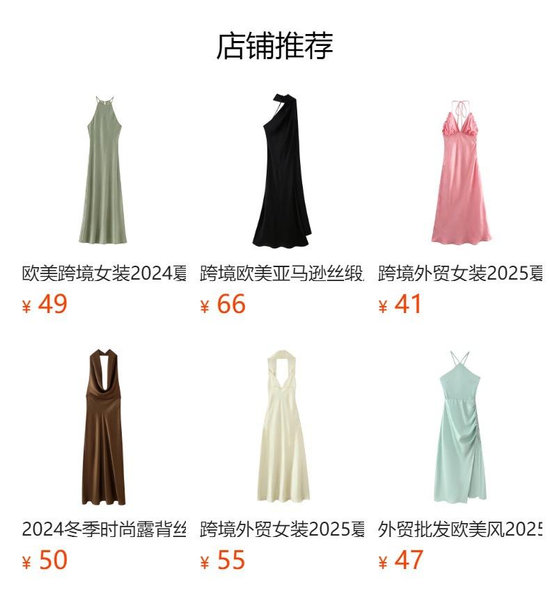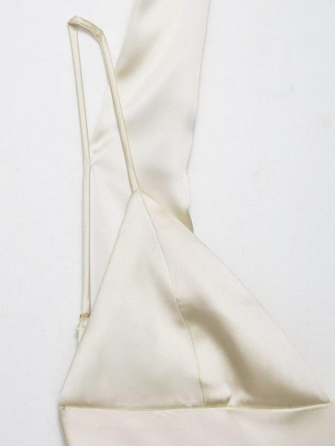 Exportación Transfronteriza Ropa de Mujer 2025 Verano Estilo Europeo y Americano Textura Satén de Seda Vestido con Espalda Descubierta con Cordones Decorado con Bufanda para Mujer A36539