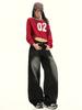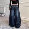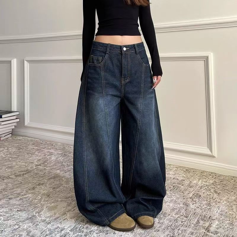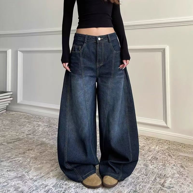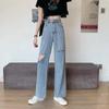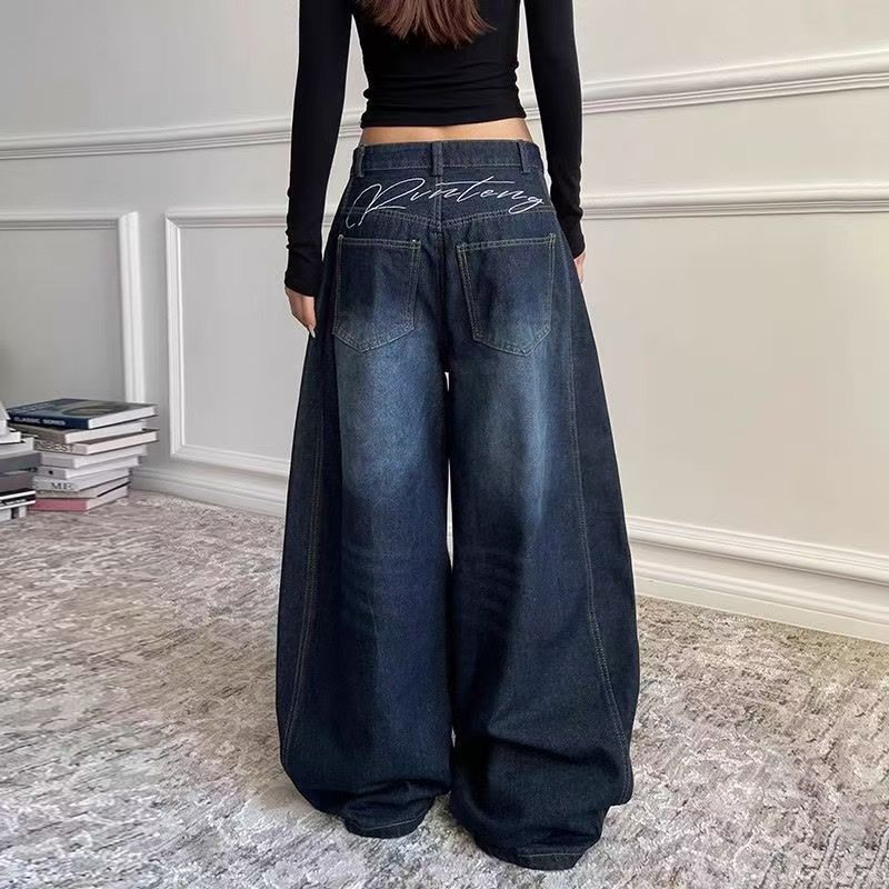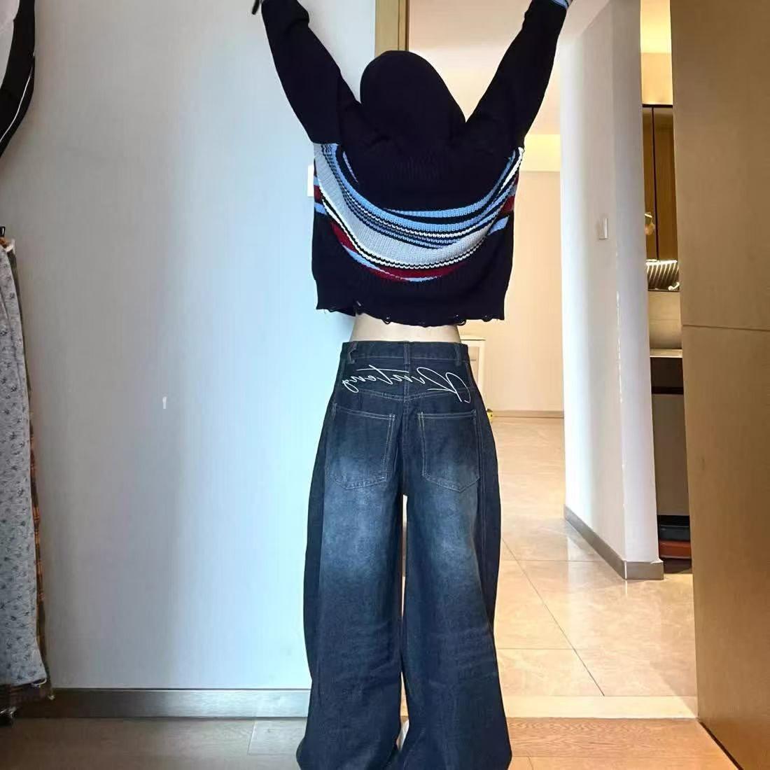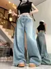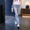 Pantalones rectos delgados drapeados cool de moda de primavera y verano Retro americano Nicho Estampados Cintura alta Pierna ancha Jeans para mujer