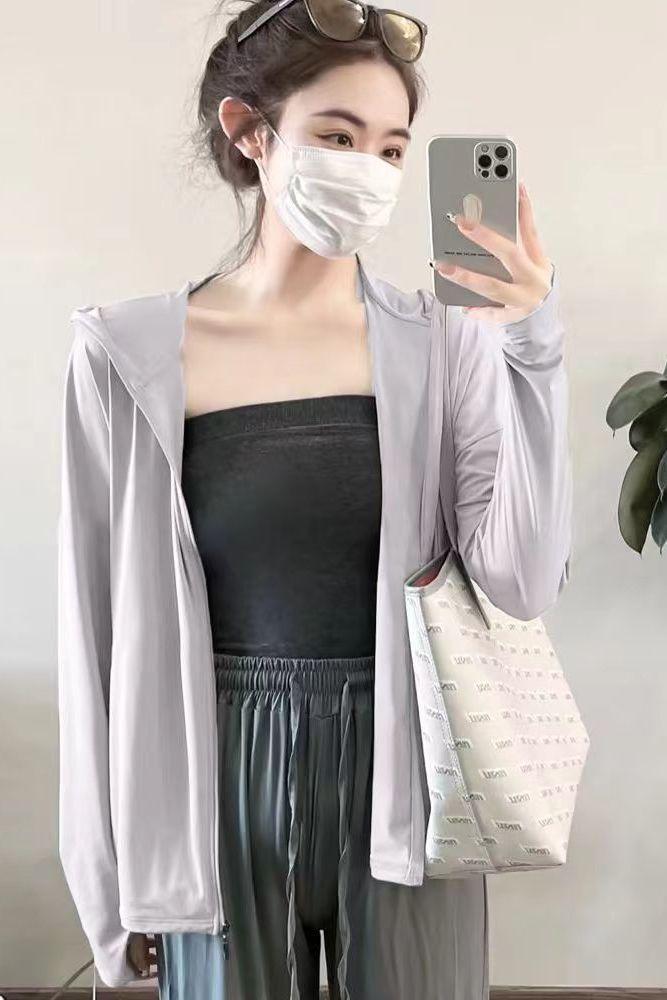 Cárdigan Versátil Fino Transpirable de Seda de Hielo Suelto Nuevo para Verano 2025 para Mujer Top Chaqueta Protección Solar