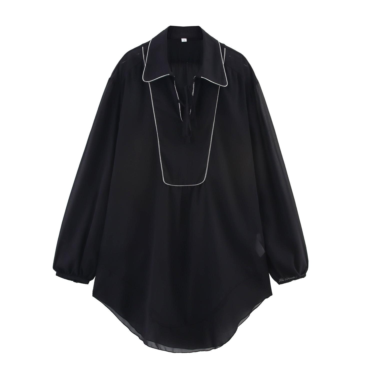 Aliexpress Venta al por Mayor Transfronteriza Ropa Europea y Americana Primavera 2025 Nuevo Estilo Camisa Larga con Diseño de Línea Brillante
